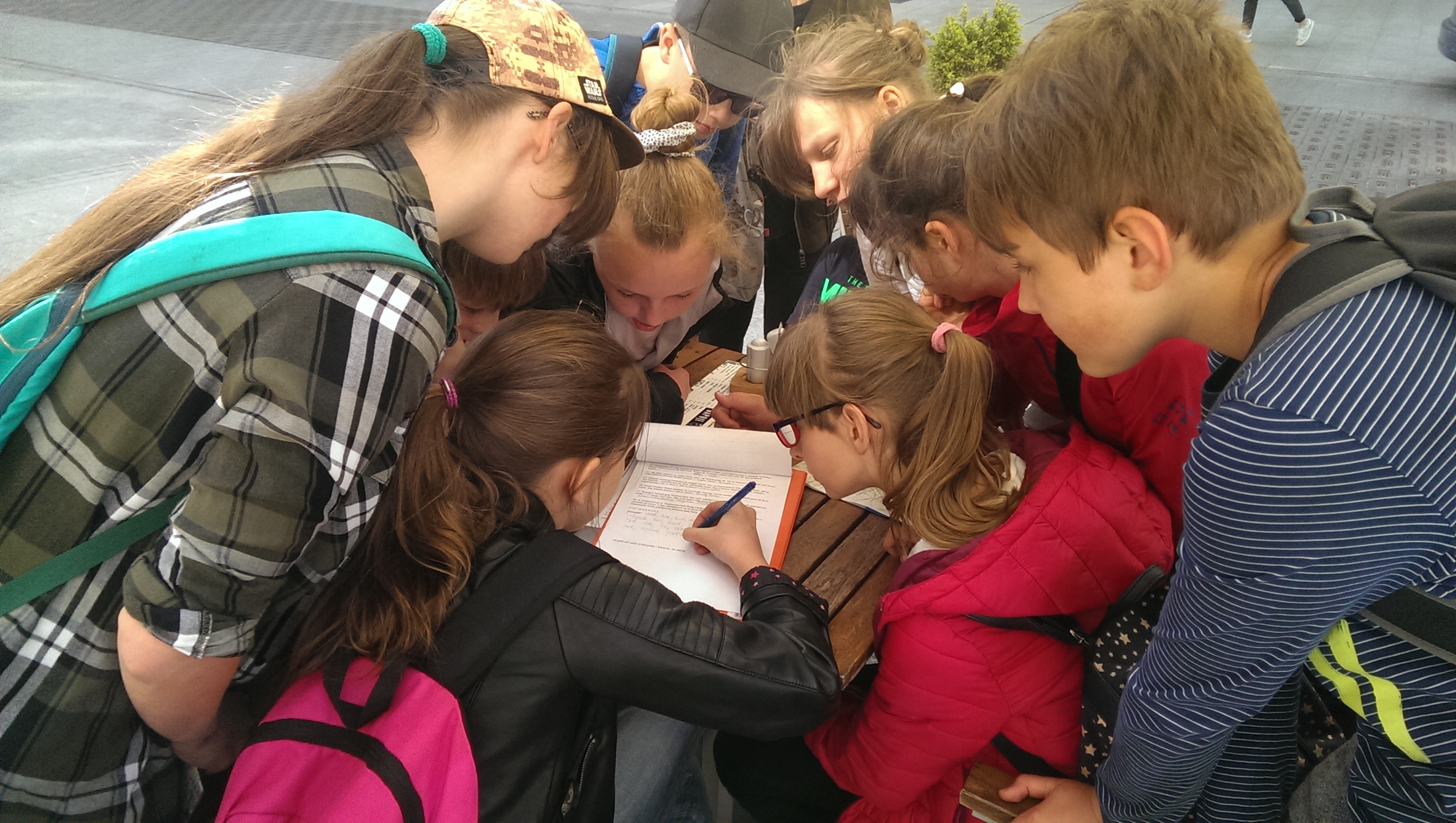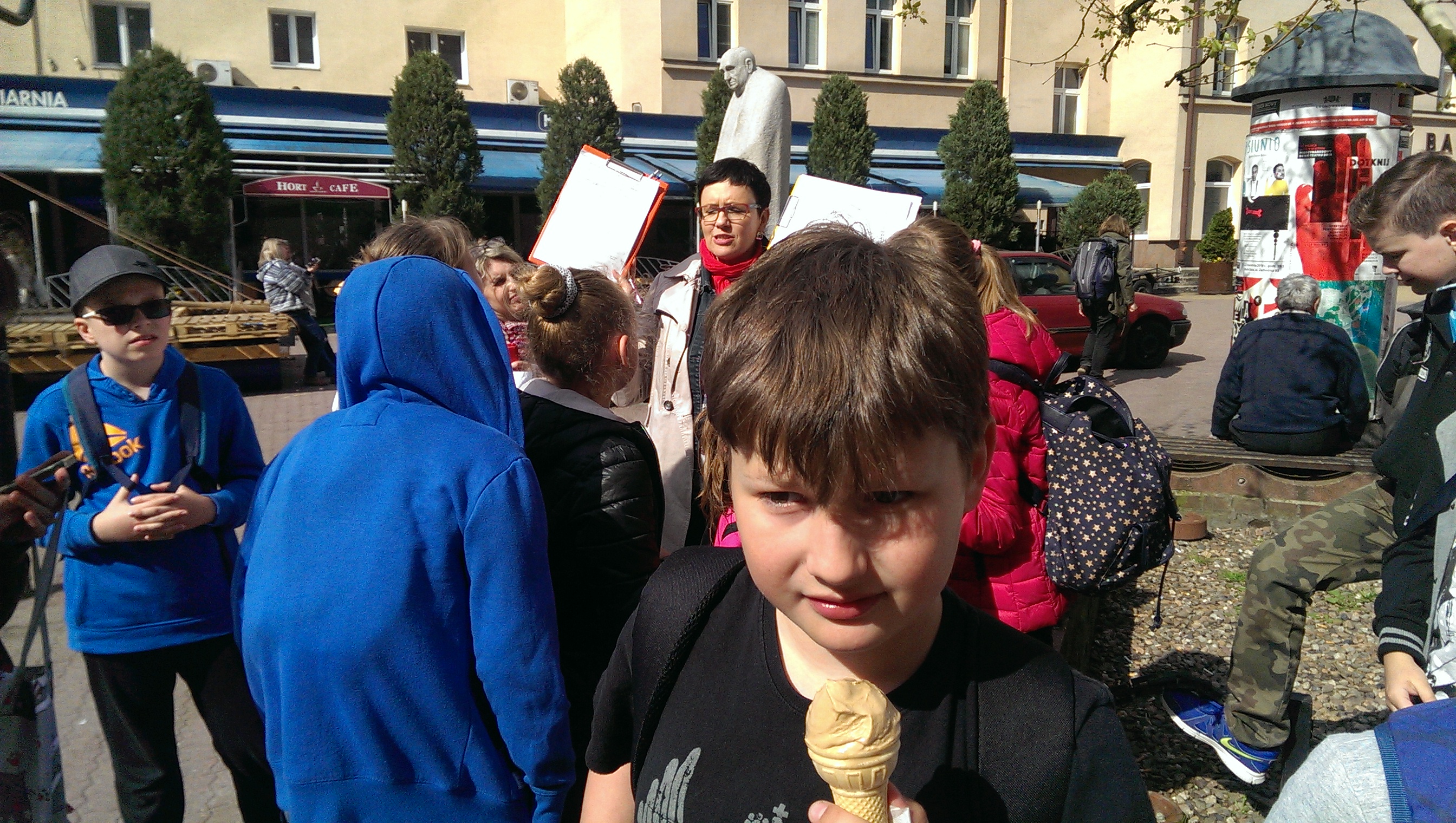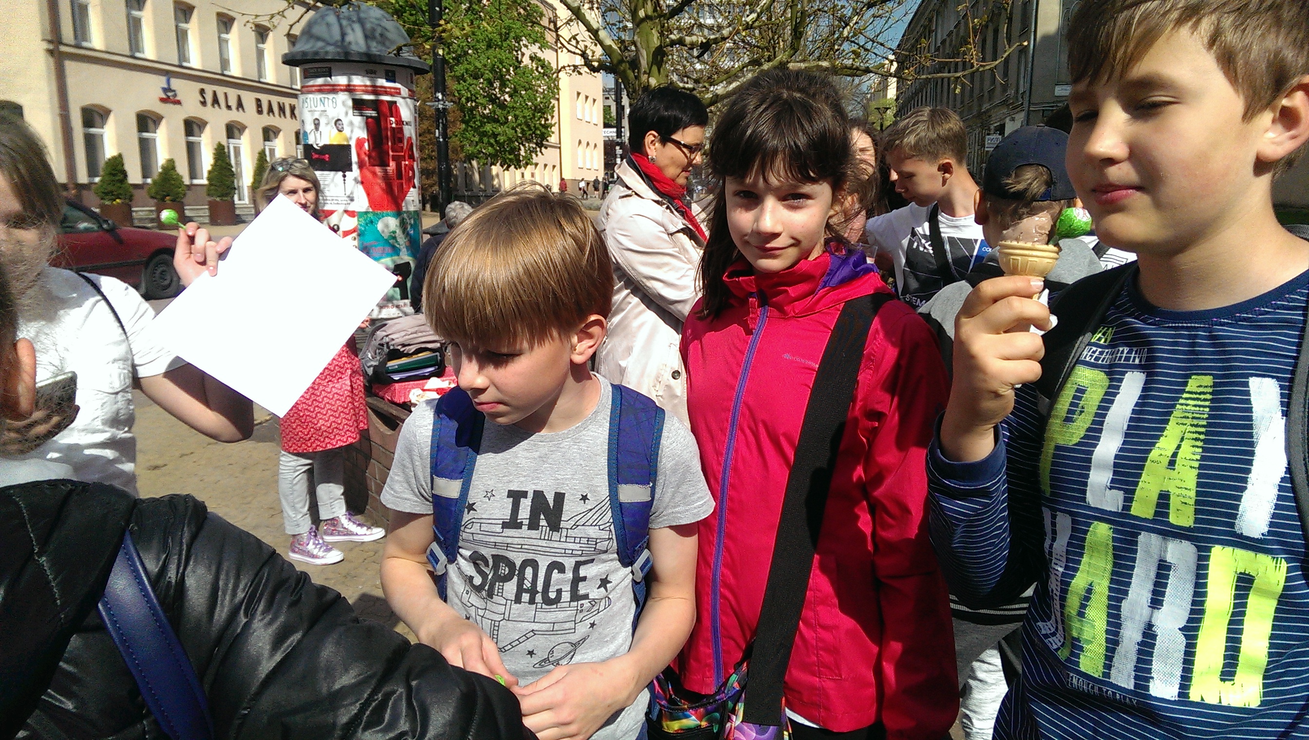 W piątek, 27 kwietnia, uczestnicy koła regionalnego z paniami: Bartczak i Kardzis, wzięli udział w grze miejskiej po ulicy Piotrkowskiej. Podzielono nas na dwie grupy, każda miała do rozwiązania prawie 30 zadań. Niektóre były proste, bo polegały np. na dotarciu do konkretnego miejsca i odczytaniu informacji. Niektóre zaś wymagały wiedzy matematycznej i logicznego myślenia. Było dużo emocji, zabawy, poznaliśmy wiele ciekawych miejsc w centrum Łodzi, a przede wszystkim spojrzeliśmy na nasze miasto zupełnie z innej perspektywy…