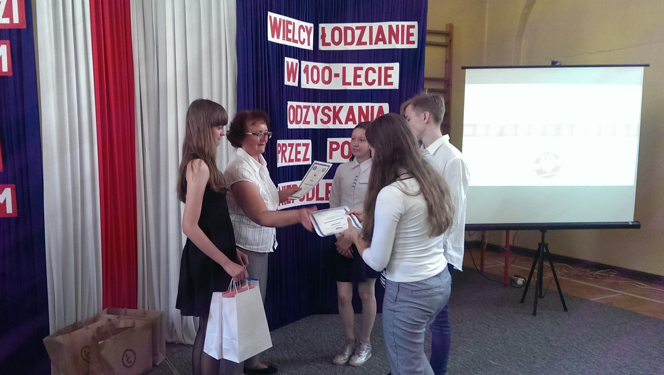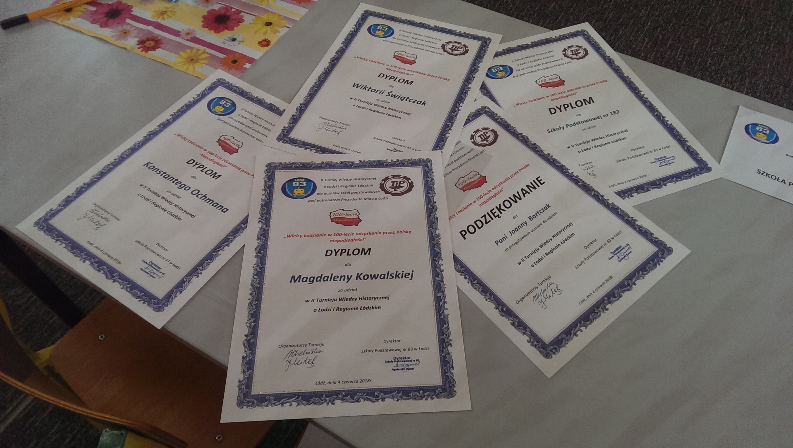 Trójka naszych uczniów z klasy VII B – Magda Kowalska, Wiktoria Świątczak i Kostek Ochman – reprezentowała naszą szkołę w II Turnieju Wiedzy Historycznej o Łodzi i Regionie Łódzkim. Przeszliśmy pomyślnie przez 2 etapy i ostatecznie znaleźliśmy się w finałowej szóstce. Uroczyste podsumowanie konkursu oraz wręczenie nagród odbyło się w poniedziałek, 4 czerwca, w Szkole Podstawowej nr 83. Opiekunką naszych uczestników była p. Joanna Bartczak.