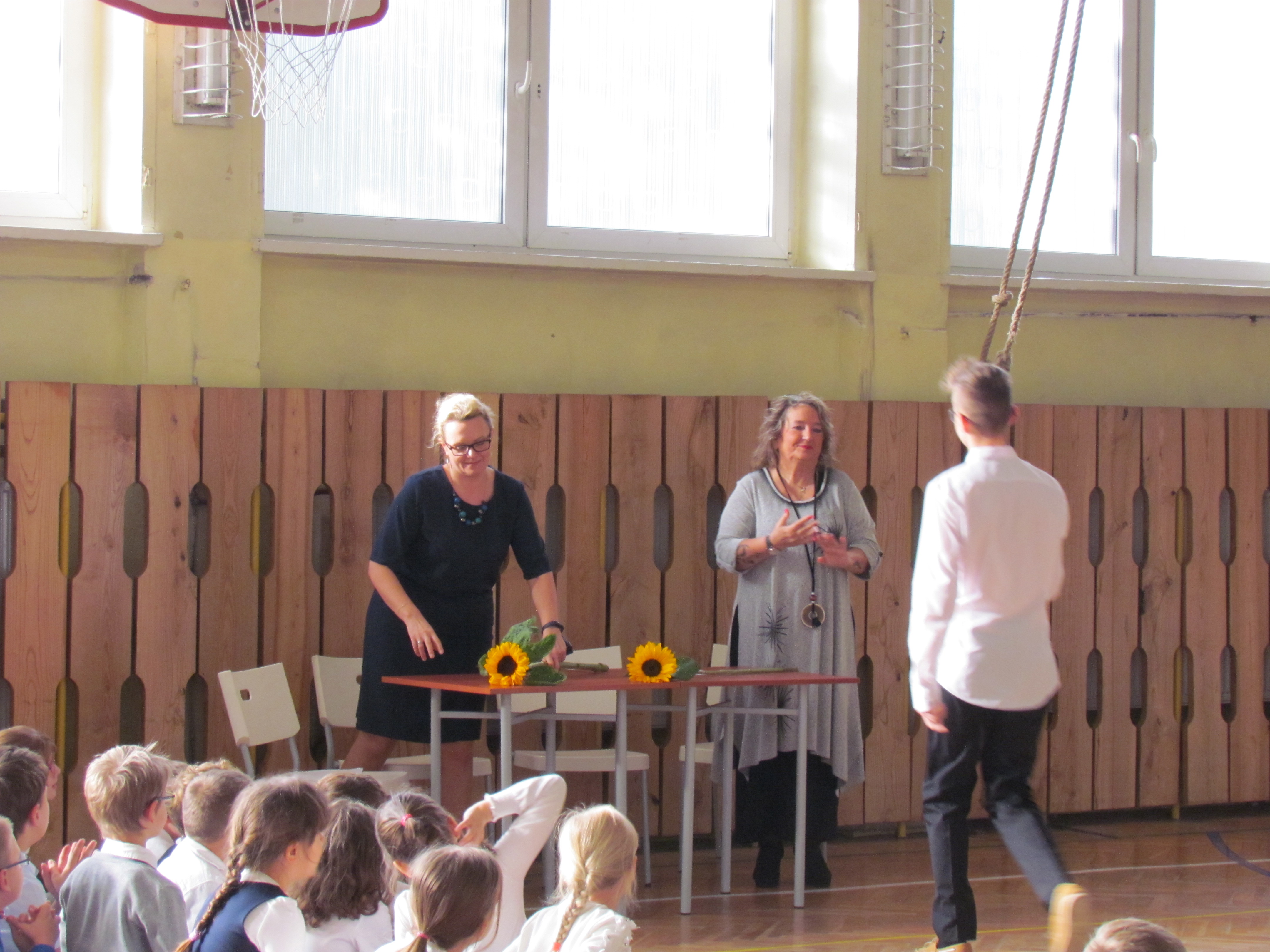 Uczniowie w strojach galowych z kwiatkami, laurkami i upominkami umilili dzień swoim nauczycielom.