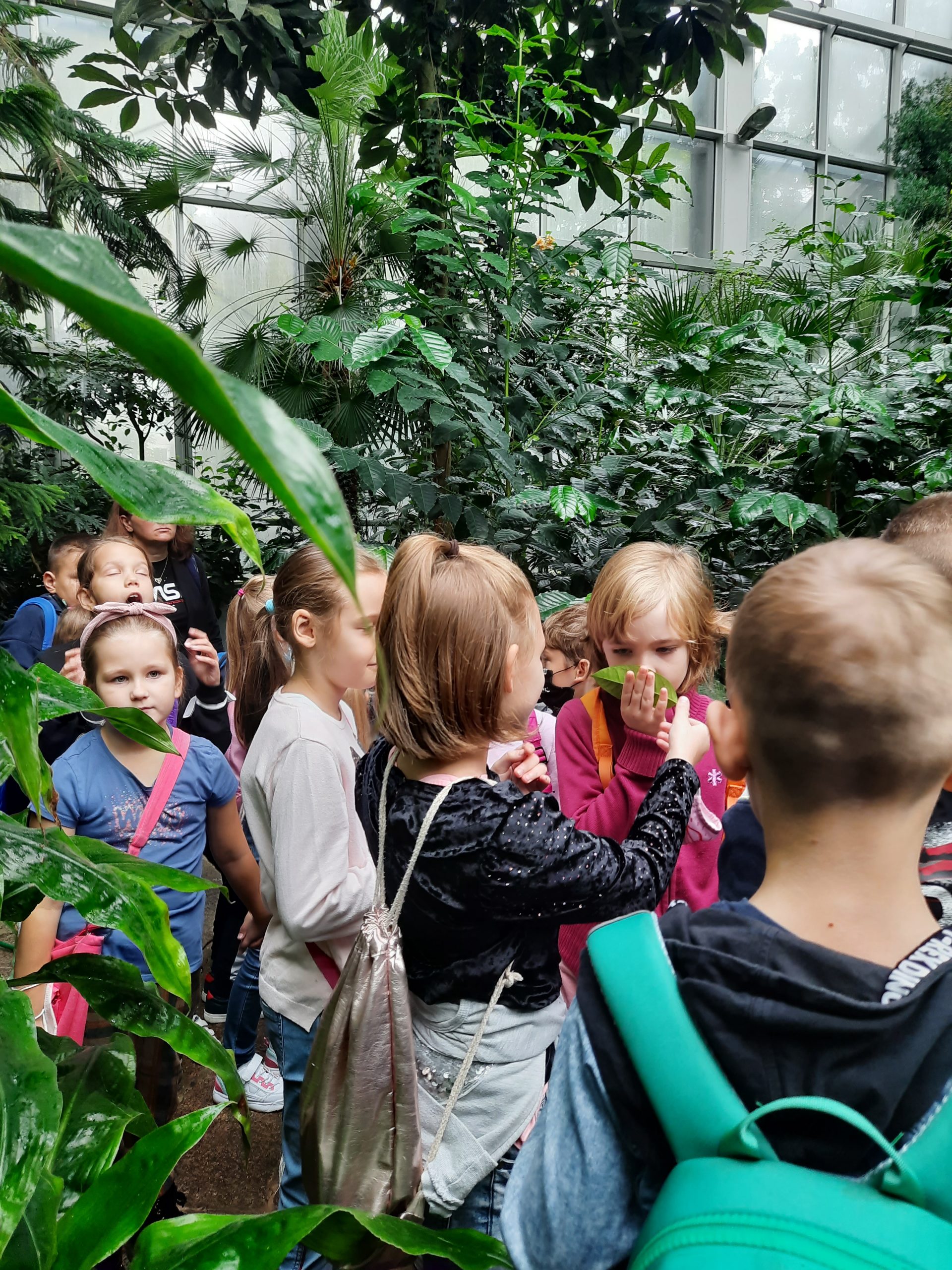 6 października 2021r. klasa IIc i IId odwiedziła Palmiarnię w Łodzi. Uczniowie podczas oglądania roślin rosnących w różnych strefach klimatycznych dowiedzieli się dużo interesujących ciekawostek, takich jak np. ile metrów ma najwyższa opuncja i palma znajdująca się w Palmiarni, ile jest odmian storczyków i gatunków ryb żyjących w różnych zakątkach świata oraz jak wyglądają i czym żywią się rośliny mięsożerne. Największą radość sprawiło odgadywanie nazw roślin za pomocą zmysłów. Do szkoły wróciliśmy pełni wrażeń.