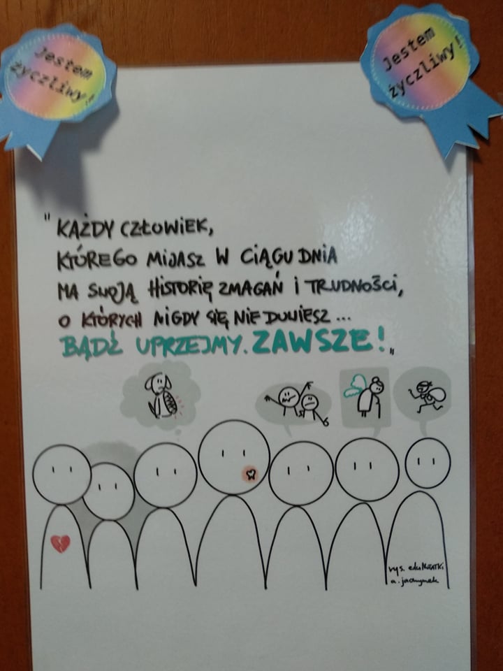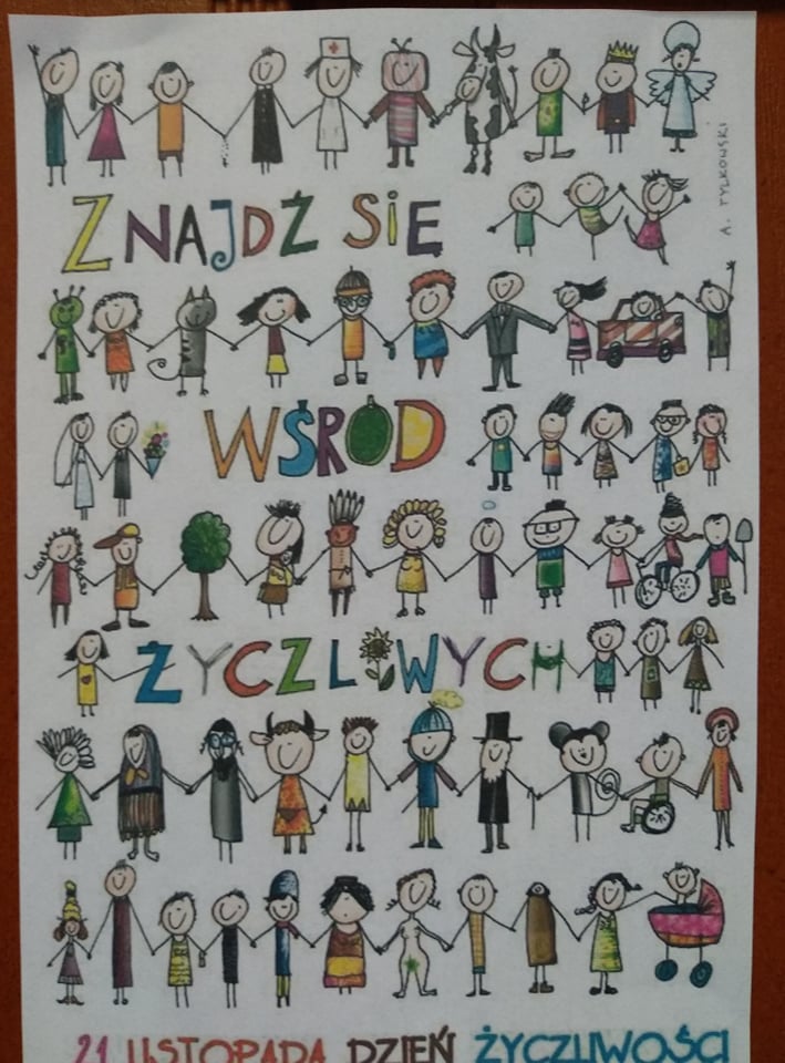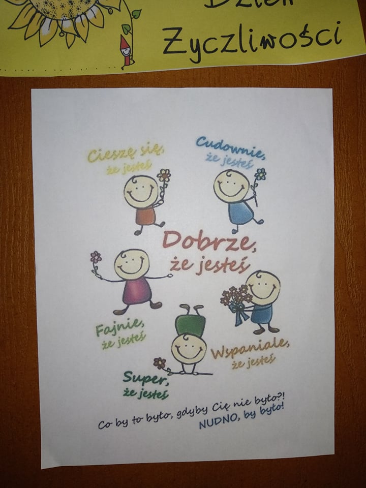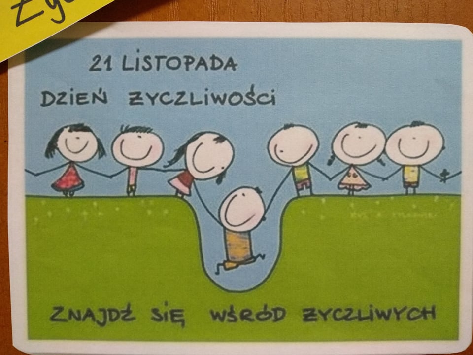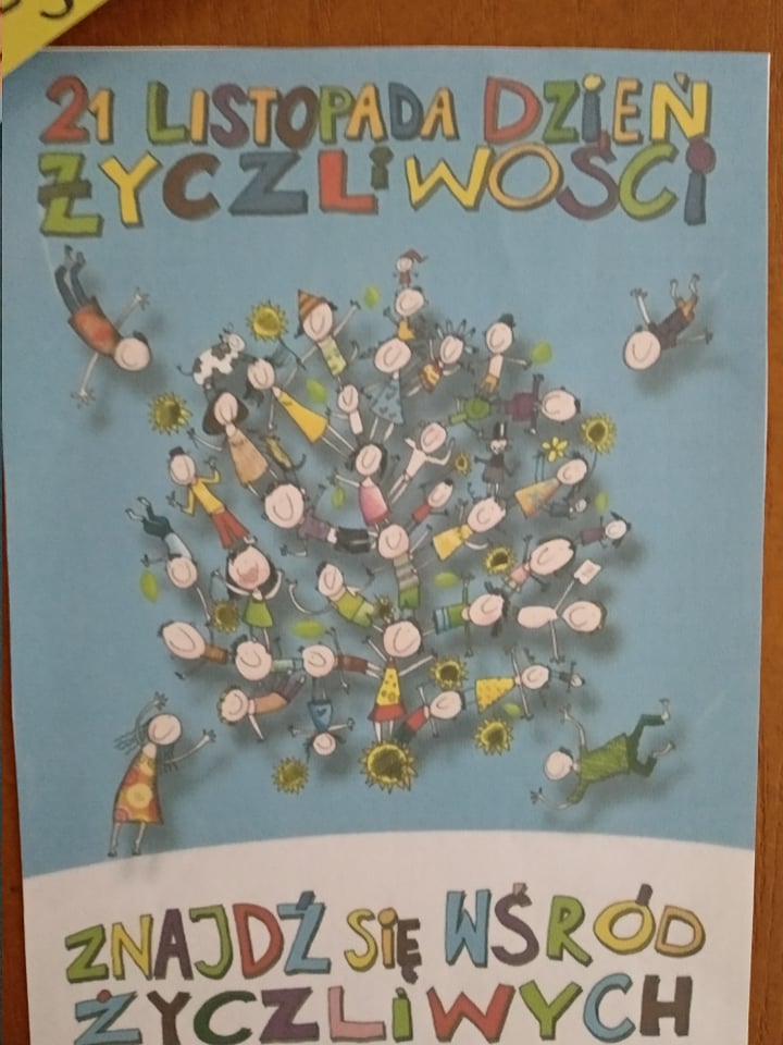 21 listopada to Dzień Życzliwości. Nasza szkoła również włączyła się w obchody tego święta. Na drzwiach sal lekcyjnych pojawiły się kartki ze słowami skierowanymi do naszych kolegów, koleżanek i nauczycieli przypominające nam o tym dniu, zachęcające do okazywania życzliwości.