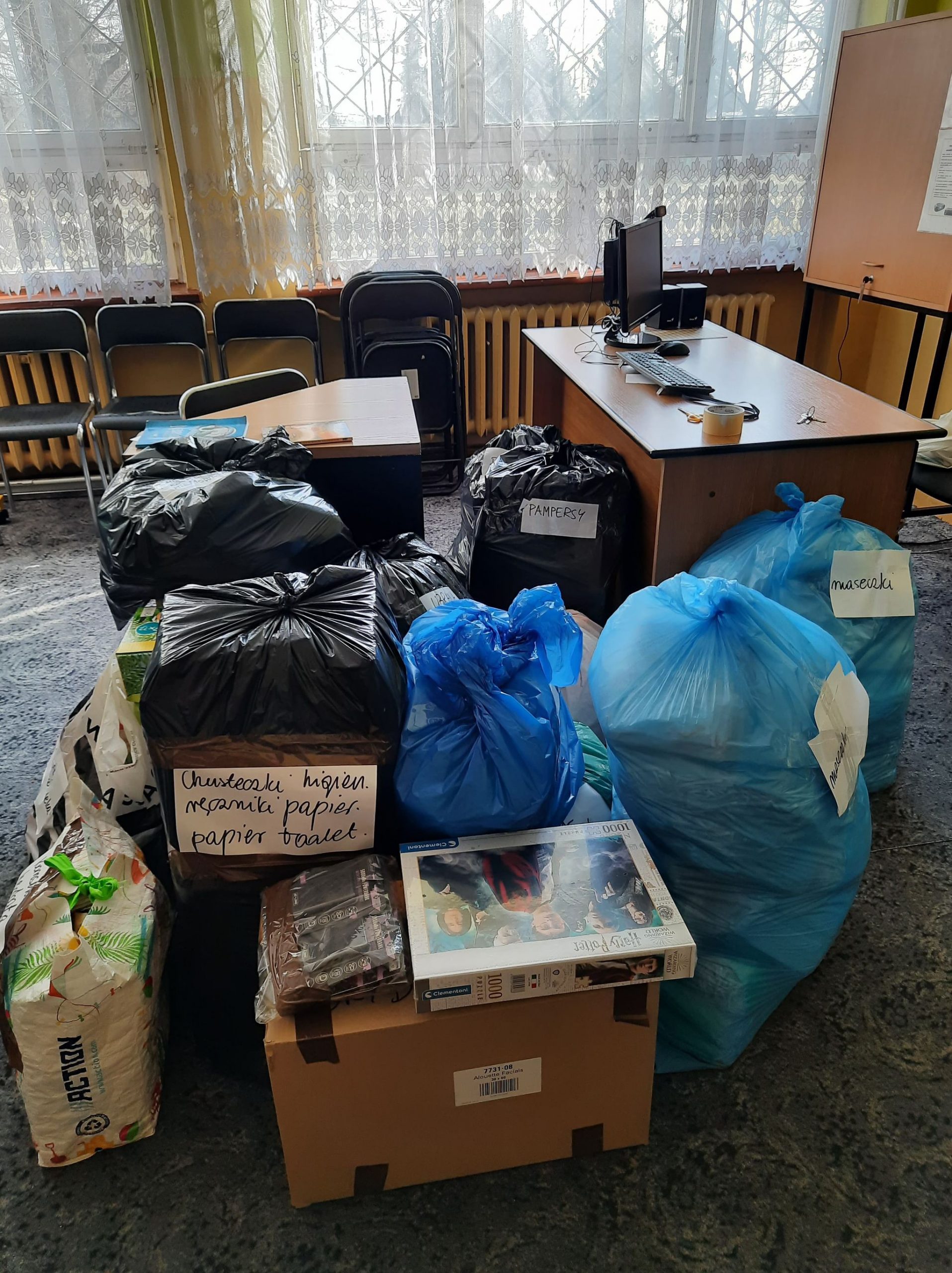 Na apel o pomoc dla uchodźców z Ukrainy bardzo szybko i z wielkim sercem odpowiedziało mnóstwo osób. DZIĘKUJEMY wszystkim rodzicom, uczniom, nauczycielom i pracownikom administracji i obsługi za ogromne zaangażowanie, przekazanie darów, spakowanie ich i dostarczenie do Zgierza, gdzie będzie utworzony tymczasowy dom dla Matki i Dziecka oraz skąd część zebranych darów jest na bieżąco wysyłana autokarami na Ukrainą.