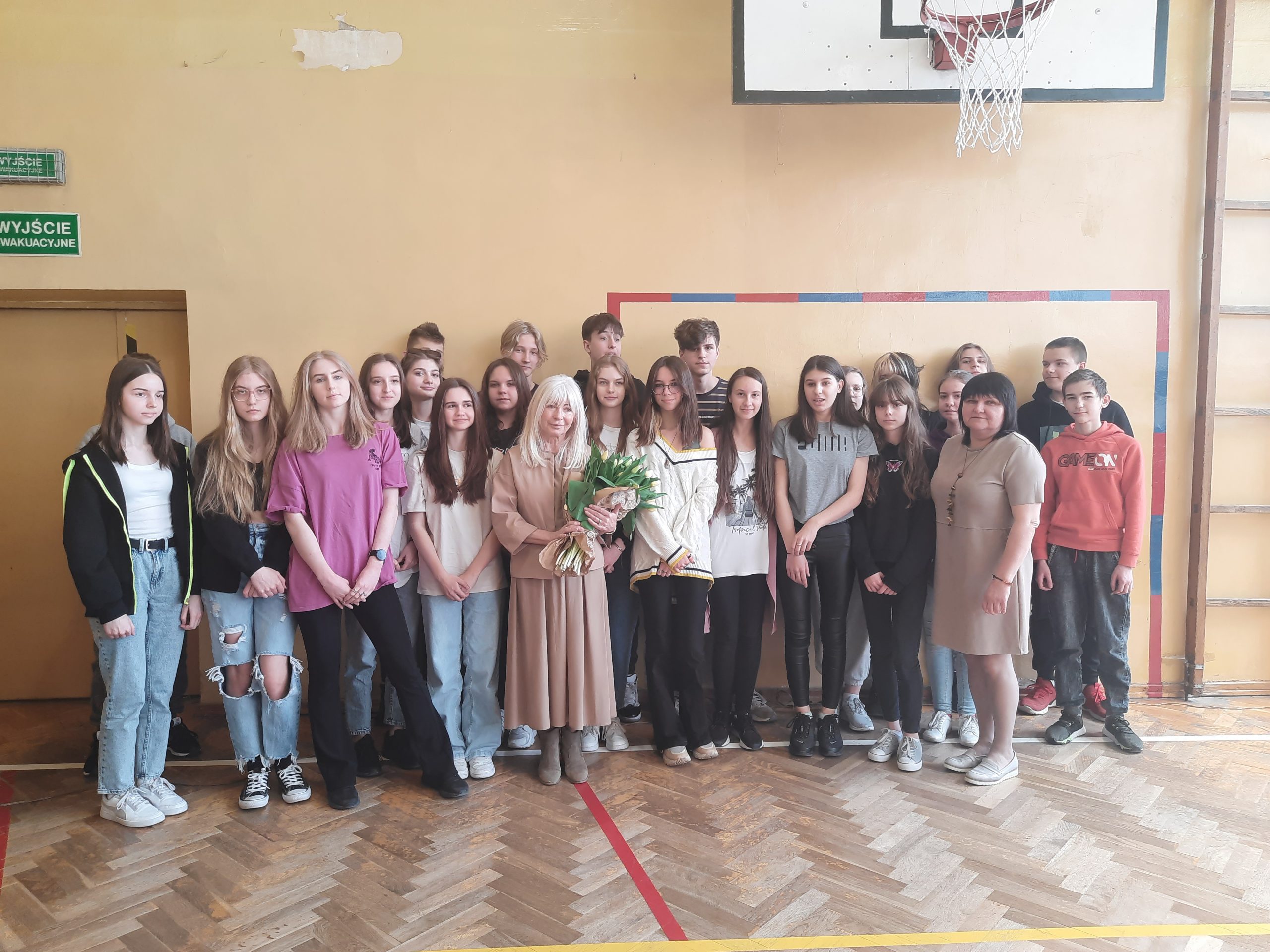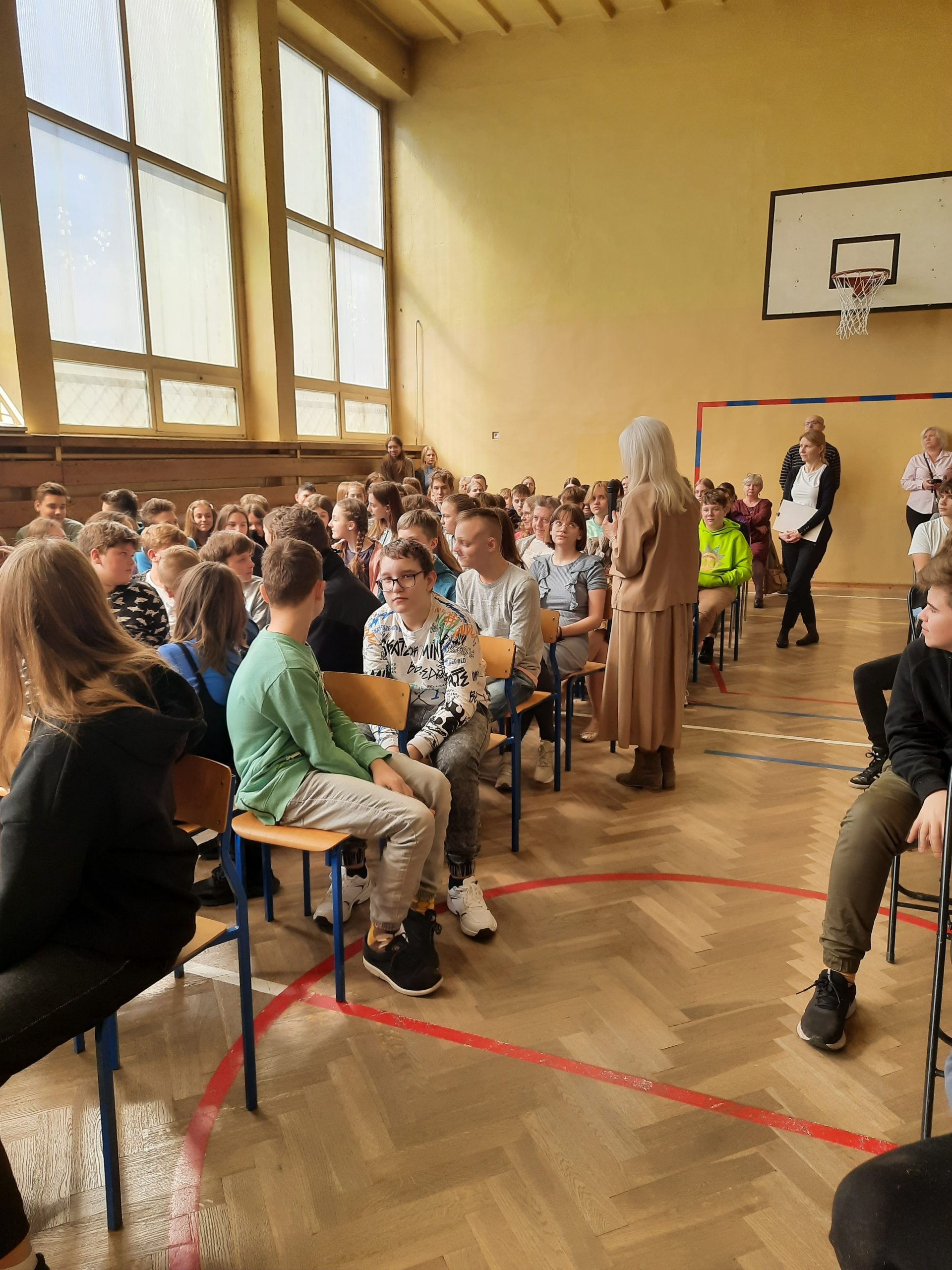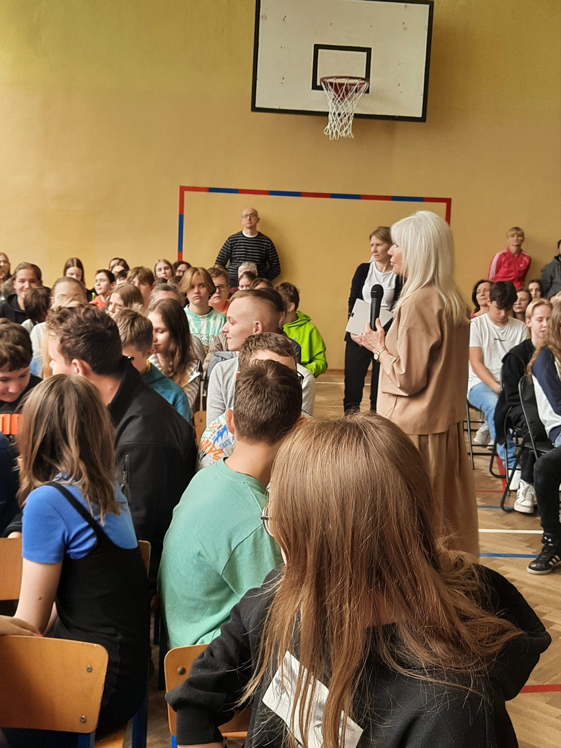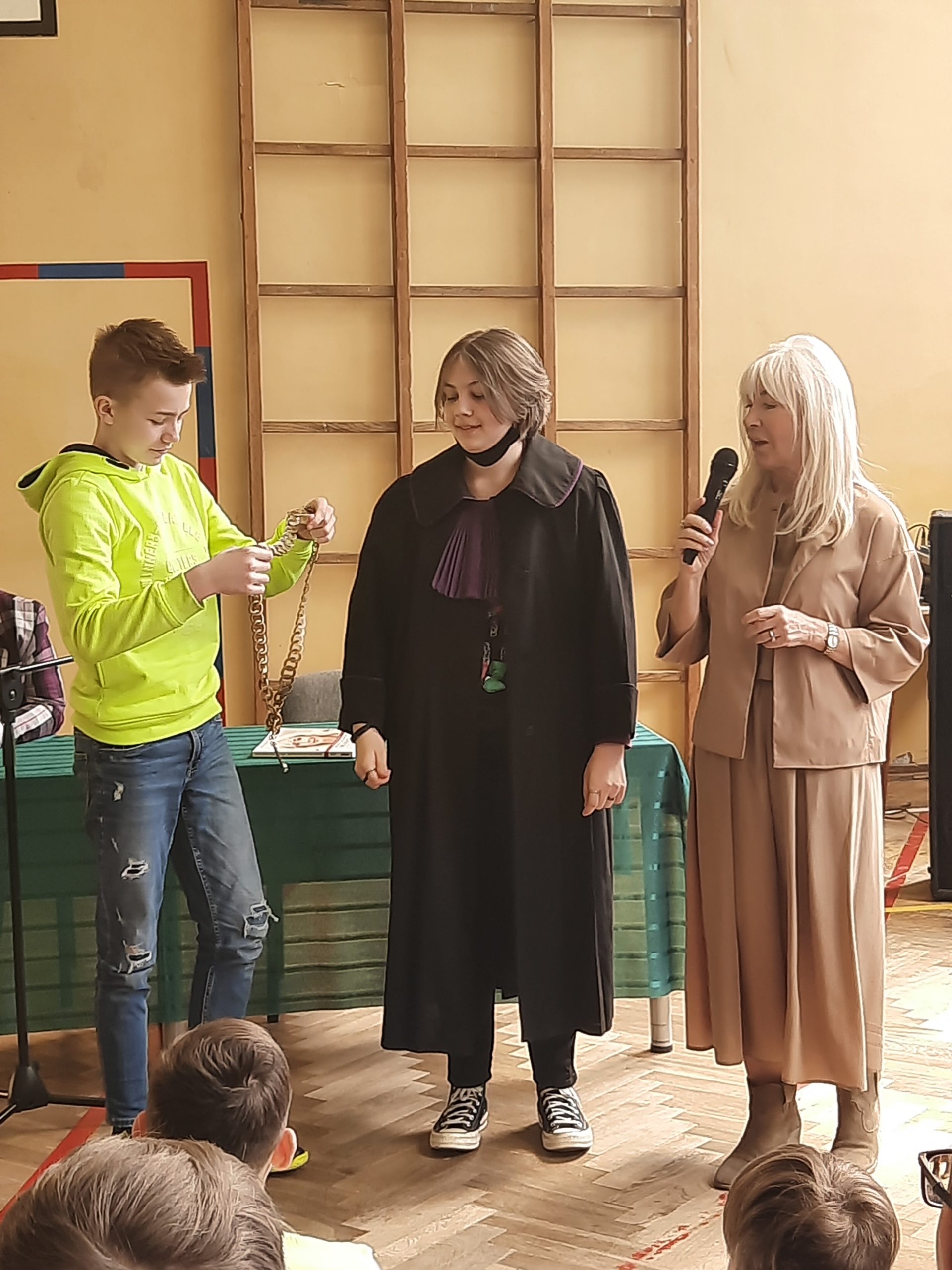 W dniu 13.04.2022r. w naszej szkole gościliśmy Sędzię Annę Marię Wesołowską. Podczas spotkania z uczniami z klas VIB, VII oraz VIII Pani Sędzia poruszyła ważne dla młodzieży tematy związane z odpowiedzialnością za czyny, w tym konsekwencje za niszczenie mienia, stosowanie przemocy psychicznej i fizycznej oraz  stosowanie używek. Na podstawie prawdziwych rozpraw zaczerpniętych z ławy sądowej słuchacze dowiedzieli się, jakie są środki wychowawcze, które sąd może zastosować wobec nieletniego. Dokładnie omówiono także elementy togi, którą zaprezentowano, a na zakończenie miła niespodzianka – każda klasa zrobiła sobie z naszym Gościem pamiątkowe zdjęcie.