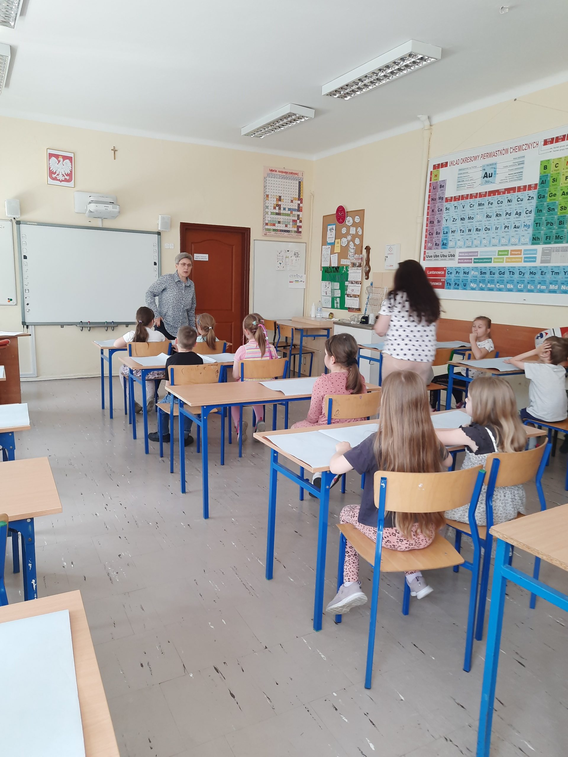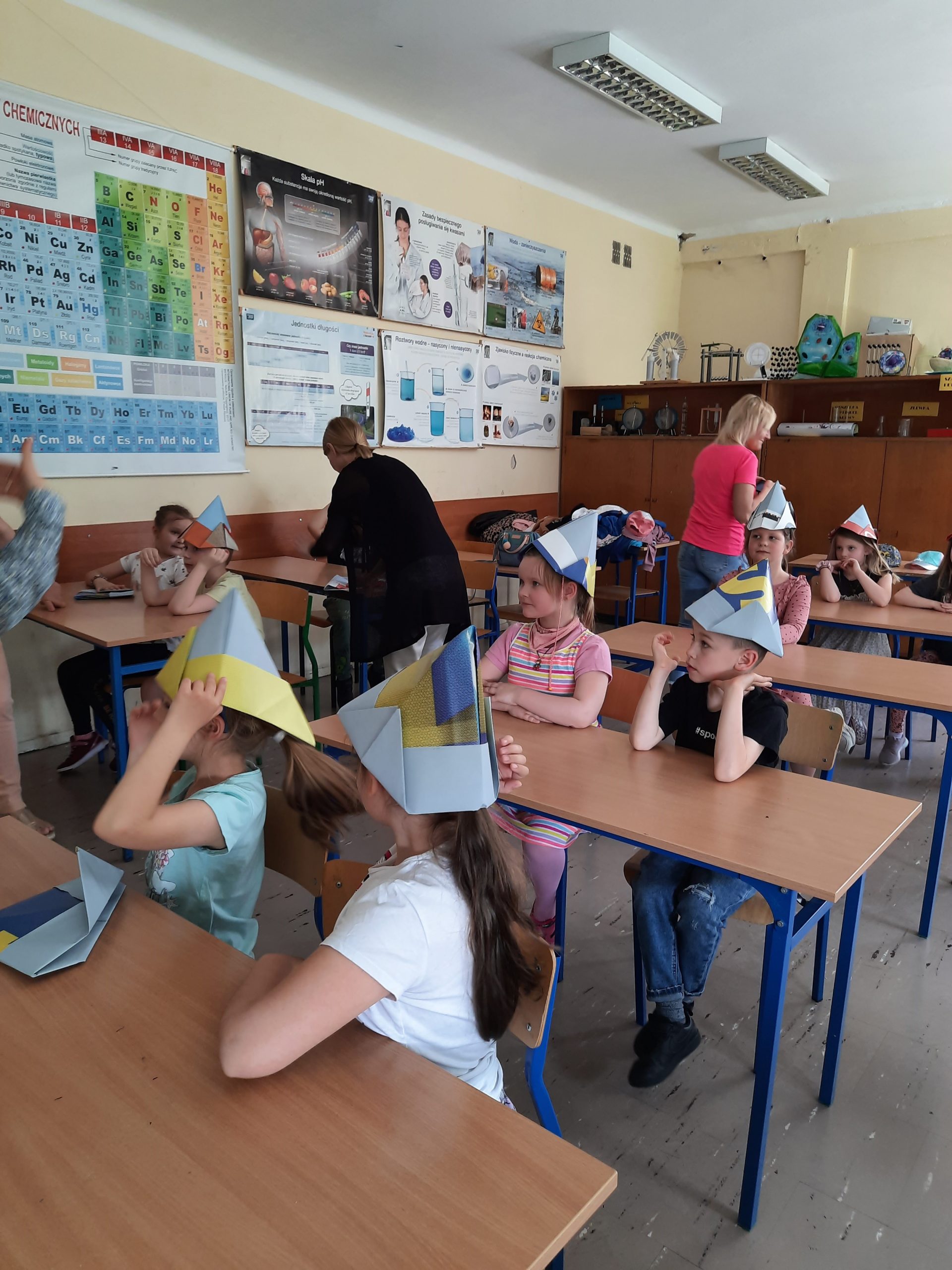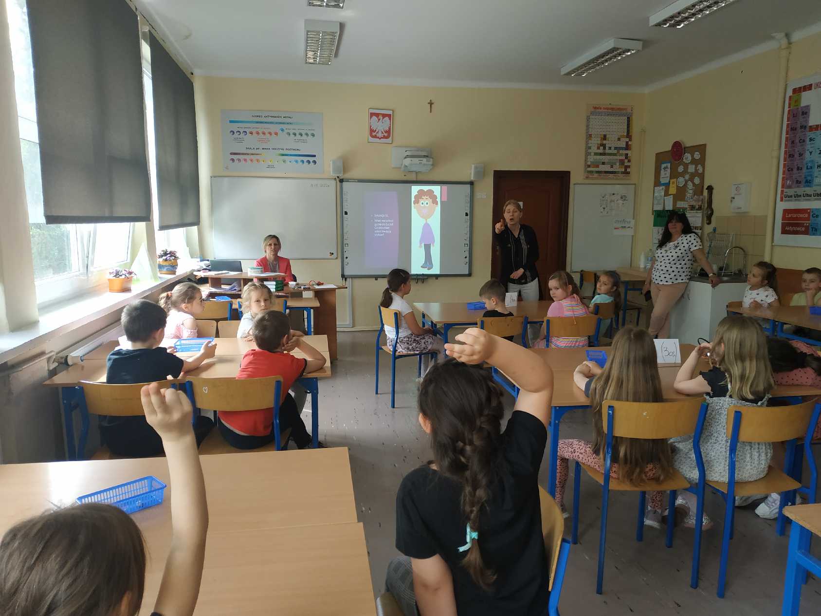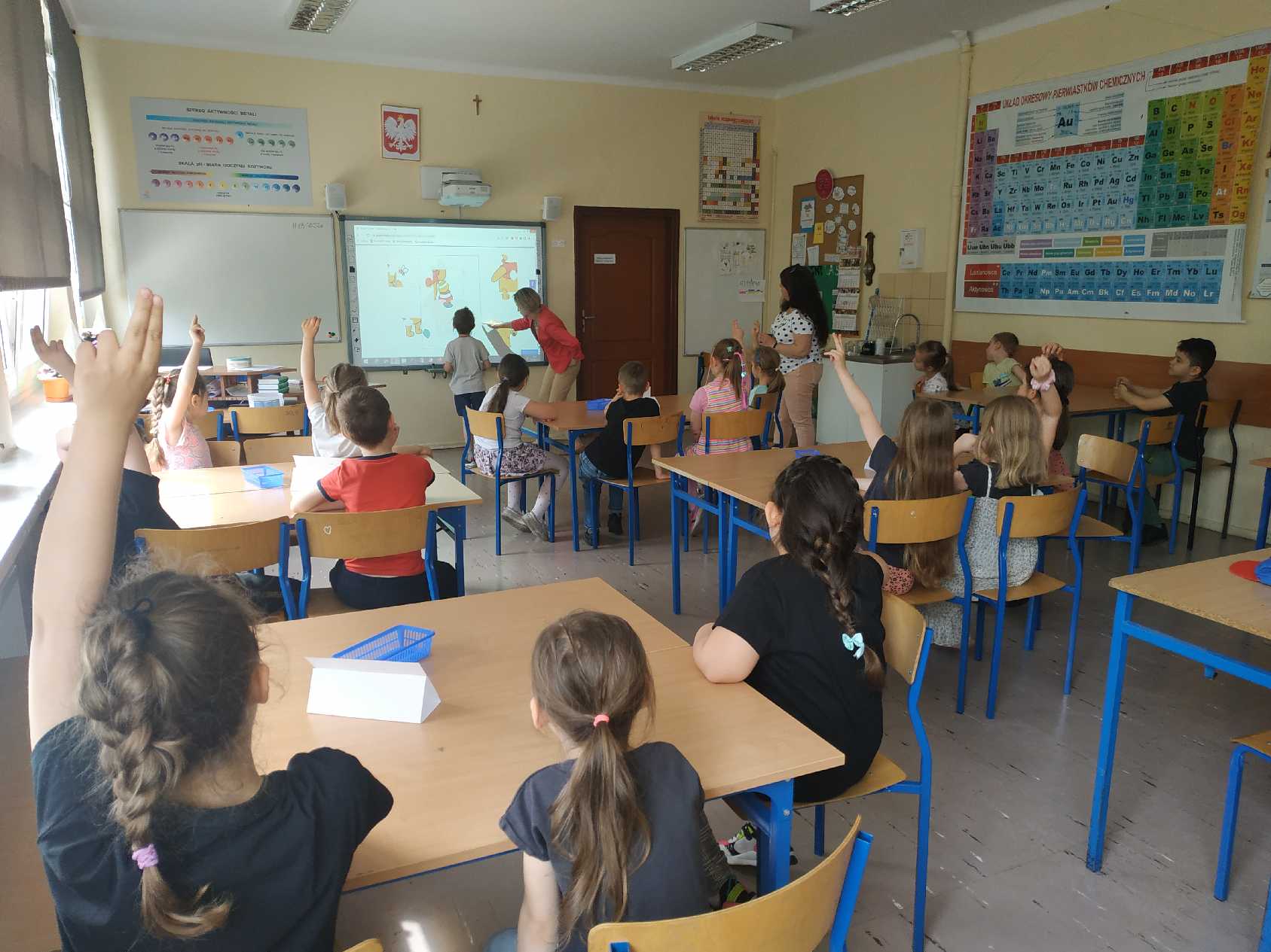 Kilka dni temu grupa dzieci z Przedszkola nr 115 odwiedziła naszą szkołę. Kandydaci na pierwszoklasistów w pierwszej kolejności obejrzeli przedstawienie o wiośnie i szkolnym życiu, przygotowane przez klasę 3D. Następnie zajrzeli na lekcję do klasy 2A, gdzie mogli zobaczyć, a potem zapytać jak wygląda nauka w naszej szkole. Kolejnym punktem wizyty gości był quiz o dobrym wychowaniu, podczas którego wyłoniono Mistrzów Savoi r Vivre, a także układanie puzzli na tablicy interaktywnej. Ostatnią atrakcją tego spotkania były krótkie zajęcia orgiami. Dzieciaki uważnie słuchając instrukcji p. Agnieszki, małymi rączkami dzielnie złożyły czapkę podróżnika, w której zwiedzili jeszcze pozostałe zakątki szkoły (salę gimnastyczną, salkę terapeutyczną, kącik malowania kreda po ścianie i inne.