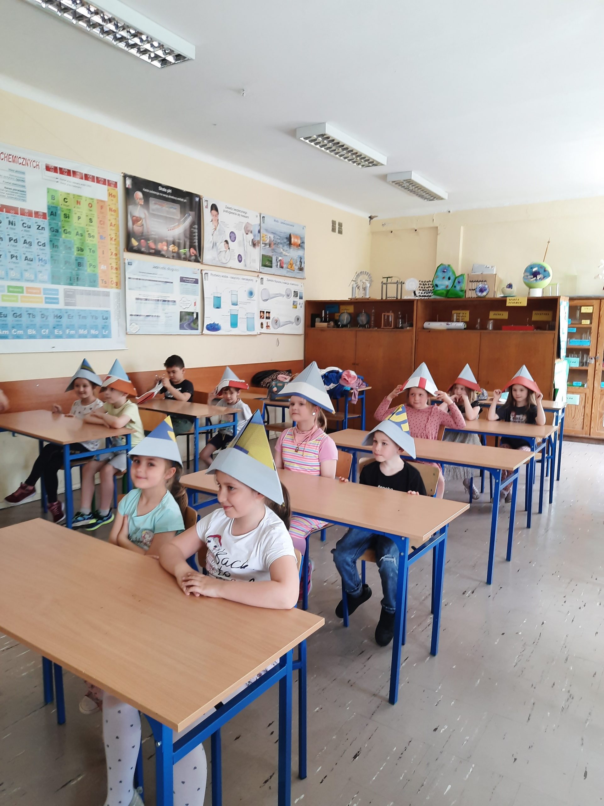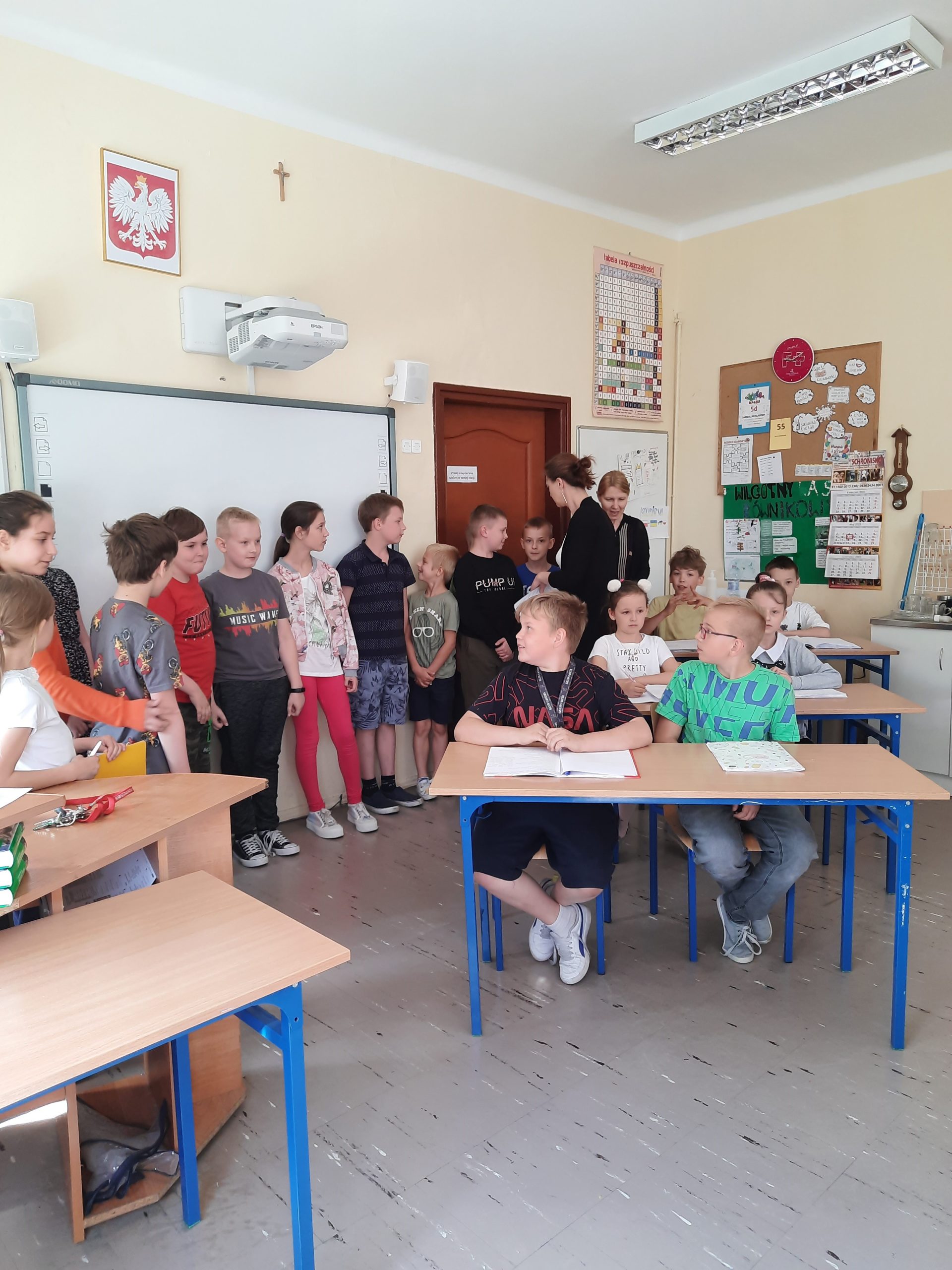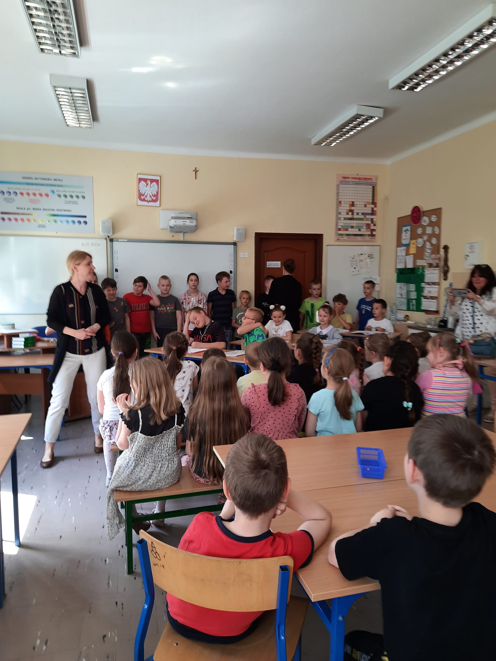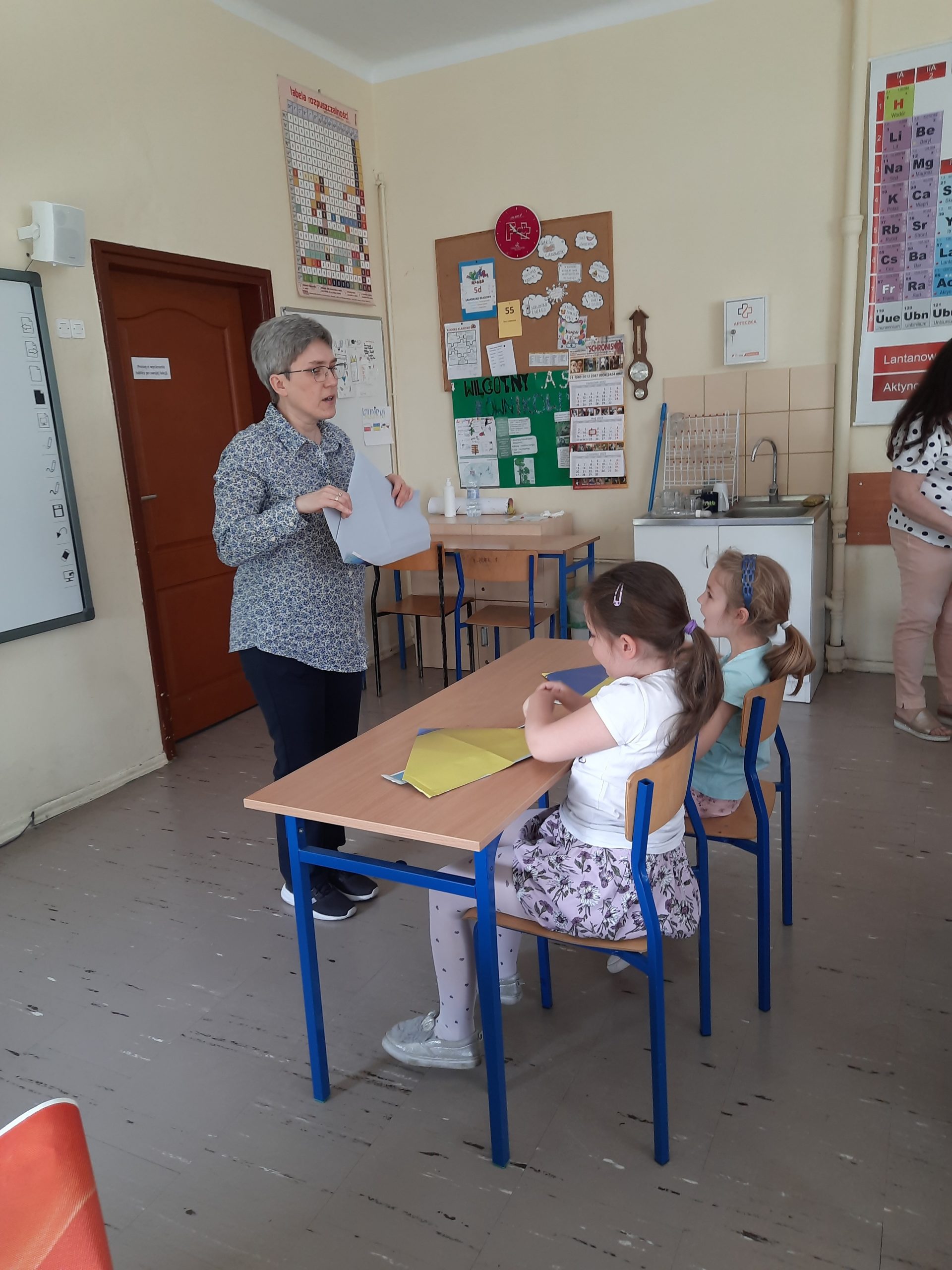 Kilka dni temu grupa dzieci z Przedszkola nr 115 odwiedziła naszą szkołę. Kandydaci na pierwszoklasistów w pierwszej kolejności obejrzeli przedstawienie o wiośnie i szkolnym życiu, przygotowane przez klasę 3D. Następnie zajrzeli na lekcję do klasy 2A, gdzie mogli zobaczyć, a potem zapytać jak wygląda nauka w naszej szkole. Kolejnym punktem wizyty gości był quiz o dobrym wychowaniu, podczas którego wyłoniono Mistrzów Savoi r Vivre, a także układanie puzzli na tablicy interaktywnej. Ostatnią atrakcją tego spotkania były krótkie zajęcia orgiami. Dzieciaki uważnie słuchając instrukcji p. Agnieszki, małymi rączkami dzielnie złożyły czapkę podróżnika, w której zwiedzili jeszcze pozostałe zakątki szkoły (salę gimnastyczną, salkę terapeutyczną, kącik malowania kreda po ścianie i inne.