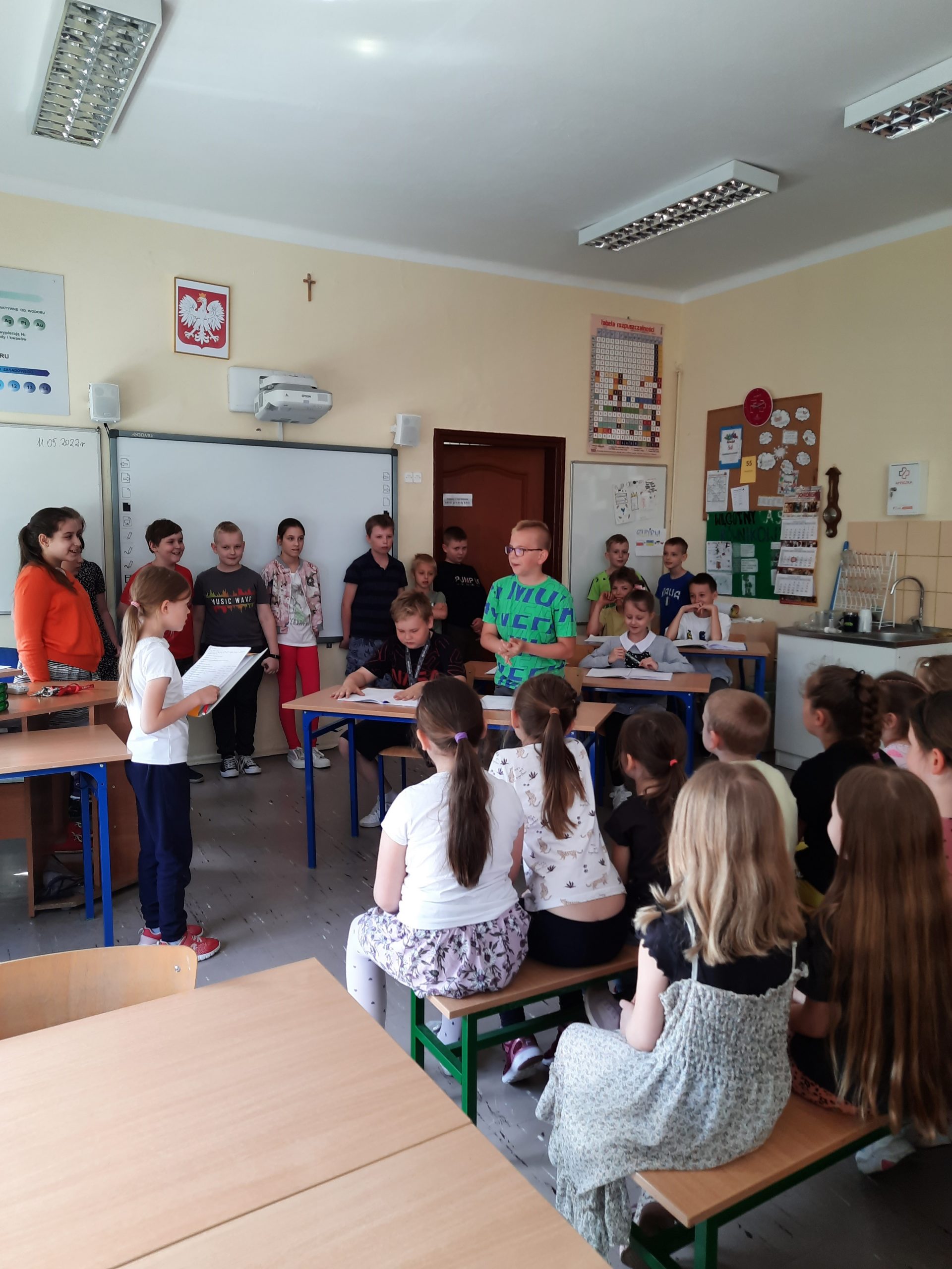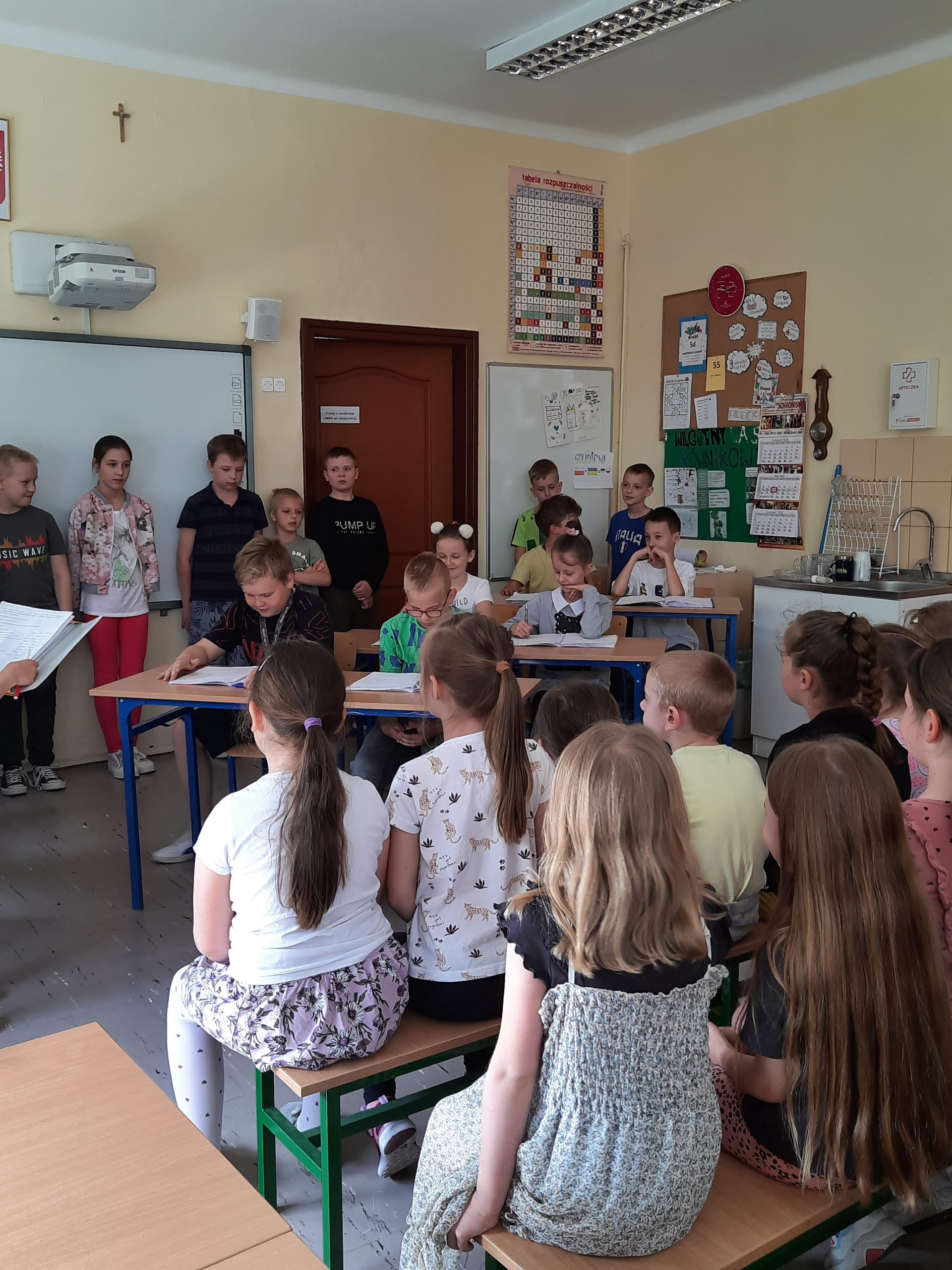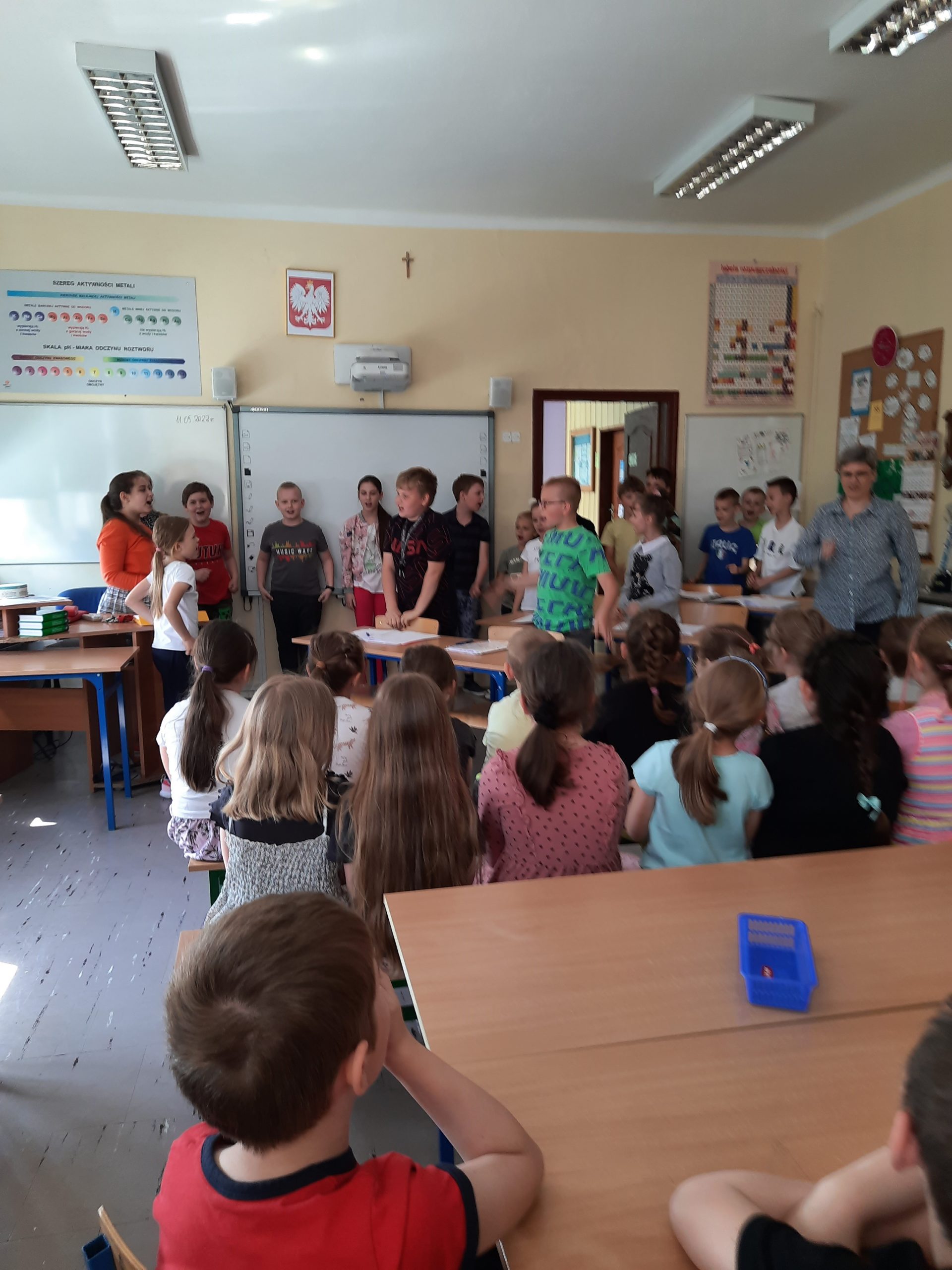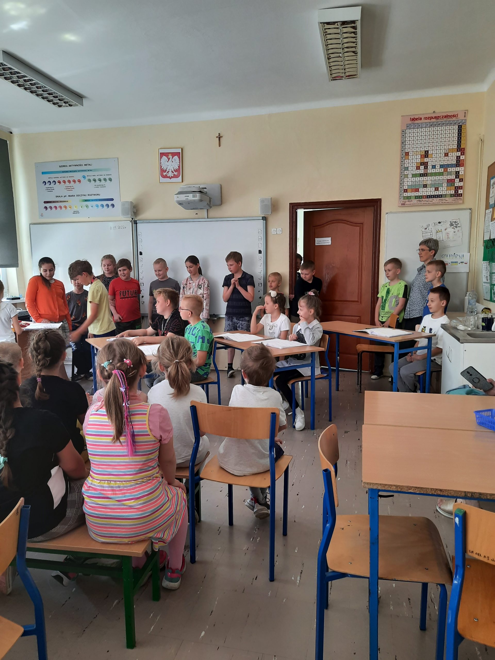 Kilka dni temu grupa dzieci z Przedszkola nr 115 odwiedziła naszą szkołę. Kandydaci na pierwszoklasistów w pierwszej kolejności obejrzeli przedstawienie o wiośnie i szkolnym życiu, przygotowane przez klasę 3D. Następnie zajrzeli na lekcję do klasy 2A, gdzie mogli zobaczyć, a potem zapytać jak wygląda nauka w naszej szkole. Kolejnym punktem wizyty gości był quiz o dobrym wychowaniu, podczas którego wyłoniono Mistrzów Savoi r Vivre, a także układanie puzzli na tablicy interaktywnej. Ostatnią atrakcją tego spotkania były krótkie zajęcia orgiami. Dzieciaki uważnie słuchając instrukcji p. Agnieszki, małymi rączkami dzielnie złożyły czapkę podróżnika, w której zwiedzili jeszcze pozostałe zakątki szkoły (salę gimnastyczną, salkę terapeutyczną, kącik malowania kreda po ścianie i inne.