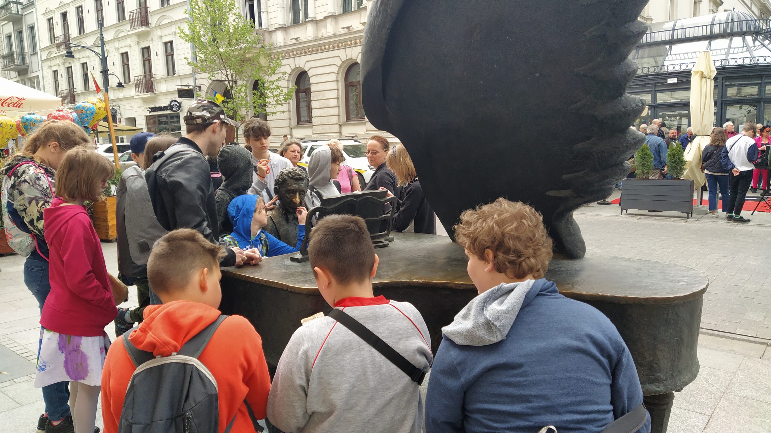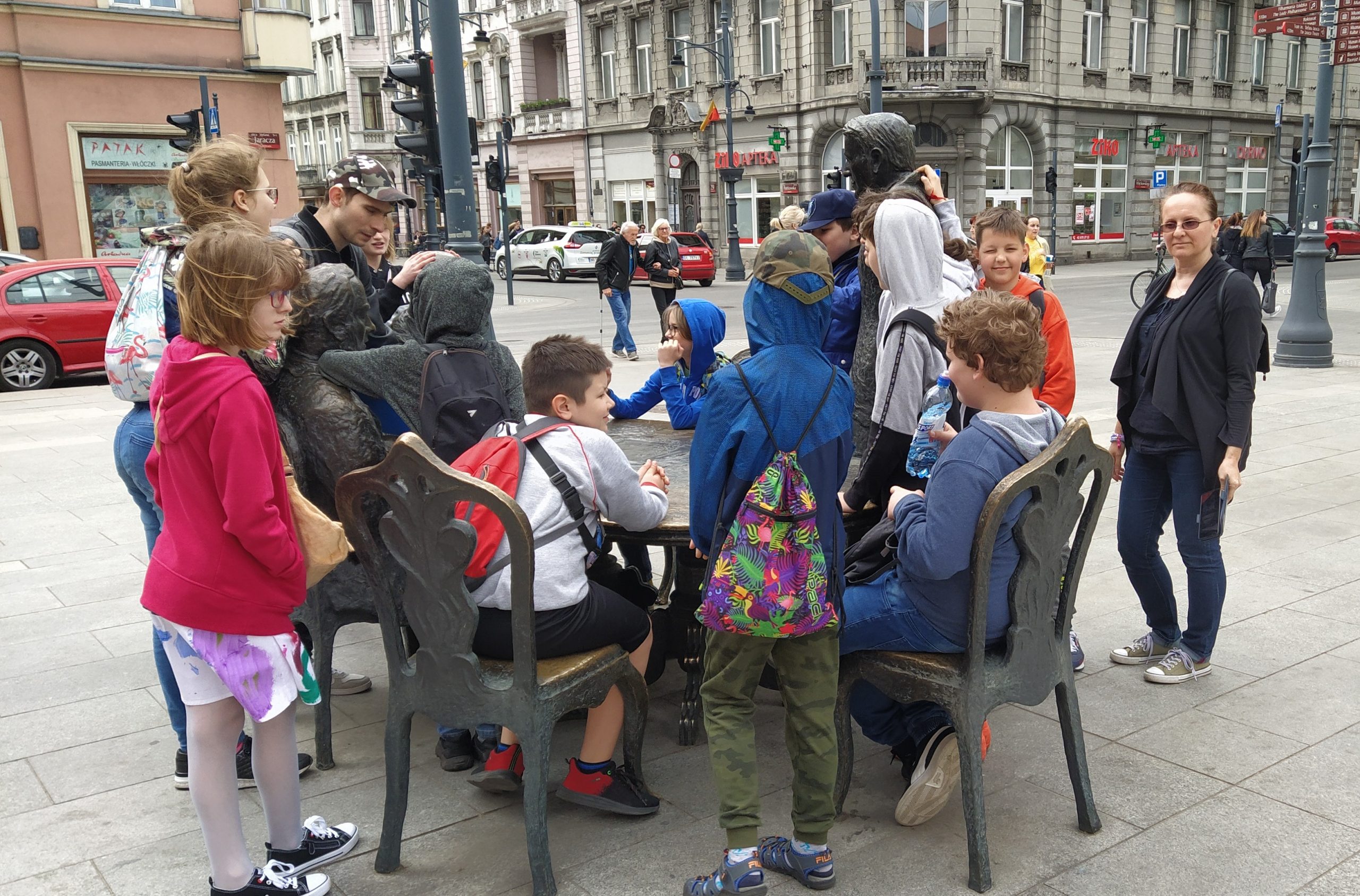 W sobotę, 14 maja, spacerem z przewodnikiem po ulicy Piotrkowskiej, Regionalni zakończyli w tym roku szkolnym zajęcia koła. Towarzyszyła nam piękna pogoda i dobre humory, aczkolwiek Czwartoklasiści nie przywykli jeszcze do maszerowania i trochę marudzili Mamy jednak nadzieję, że warto było przejść te parę kilometrów, bo zobaczyliśmy naprawdę wiele ciekawych i nietypowych miejsc. Pan przewodnik pokazał nam np. kilka pięknych, odrestaurowanych w ostatnich latach podwórek, zwrócił uwagę na ozdoby kamienic, słynne pomniki. Opowiedział nam też wiele historii o najsłynniejszej łódzkiej ulicy.