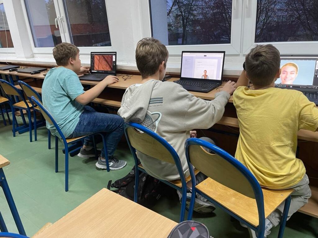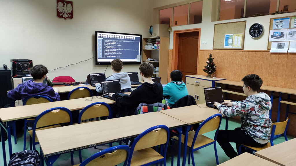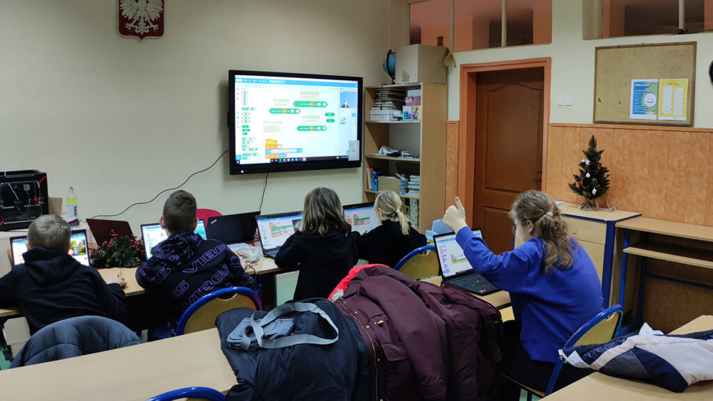 Zajęcia z koła informatycznego z klasami 6-7 z panią Jagiełą-Sochacką Aleksandrą. Заняття з ІТ-гуртка з 6-7 класами з пані Jagiełą-Sochacką Aleksandrą.