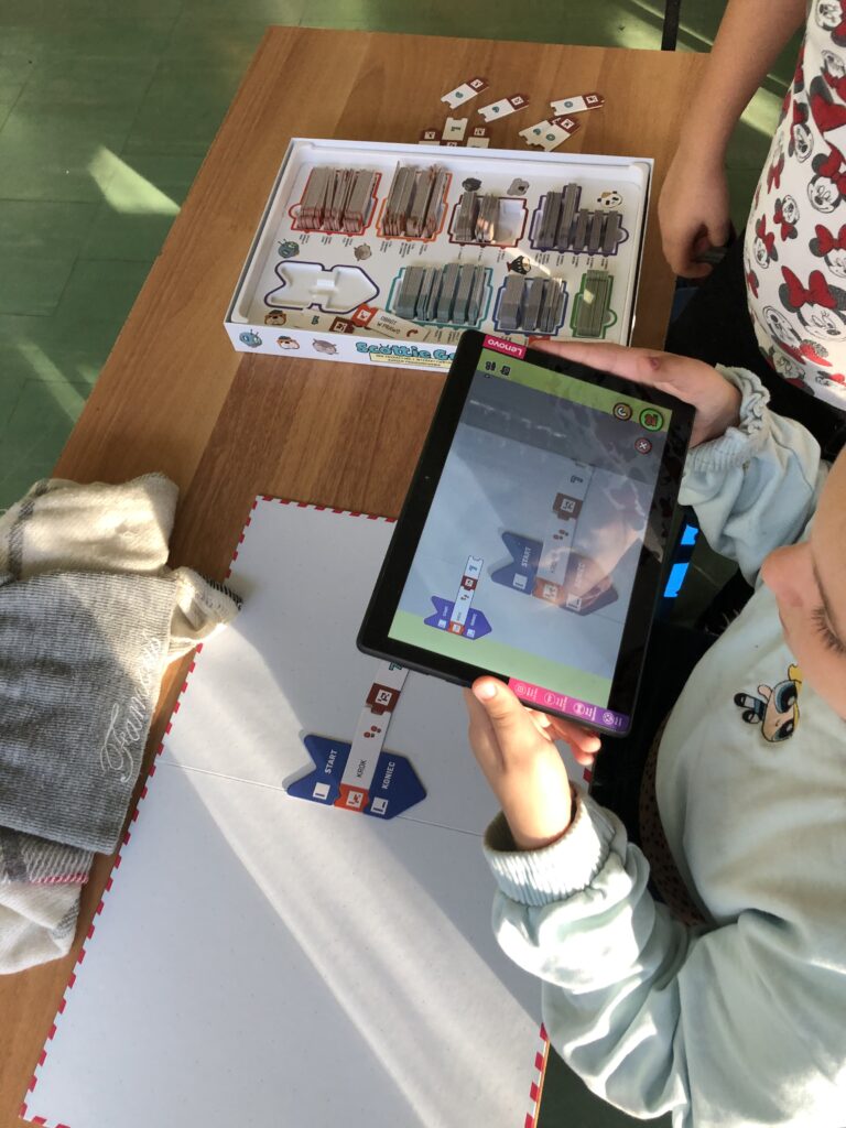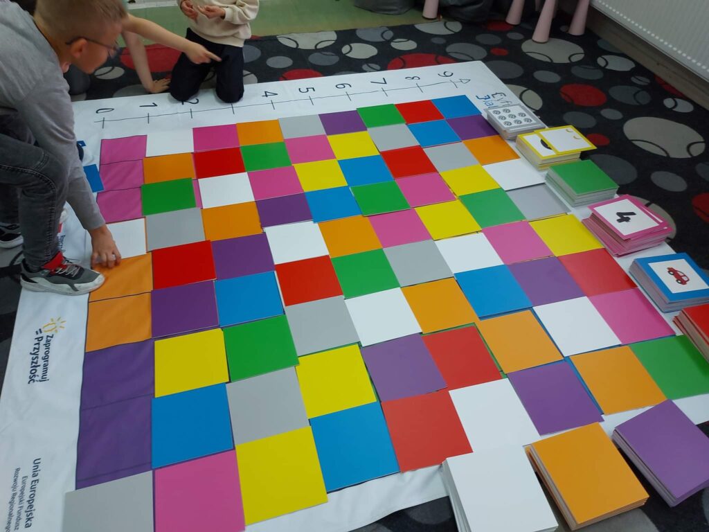 Dzieci pracują z grą edukacyjną do programowania i tabletem.Dzieci pracują z grą edukacyjną do programowania i tabletem.Uczniowie pracują z matą do programowania.