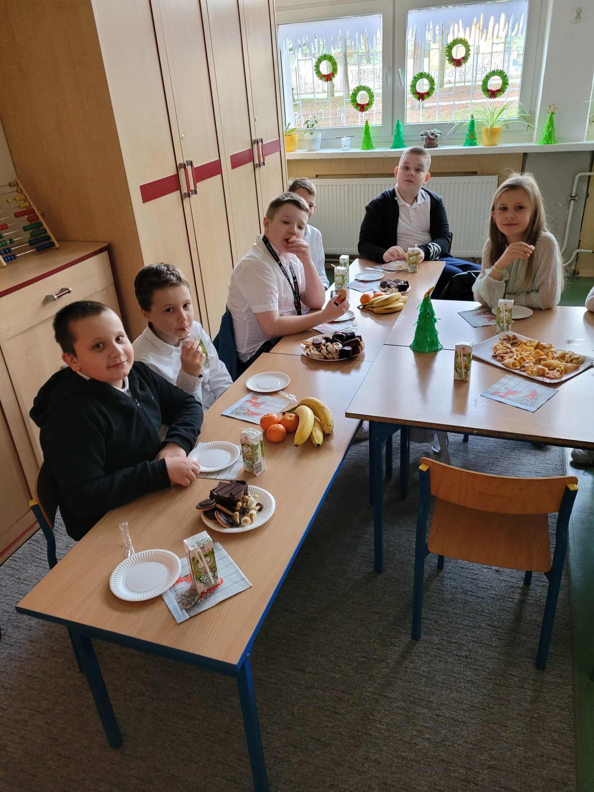 Tego dnia cała klasa zasiadła przy wspólnym stole. W udekorowanej świątecznie sali uczniowie wraz z nauczycielami i przedstawicielami rodziców złożyli sobie życzenia. Był poczęstunek składający się z upieczonych przez rodziców ciast oraz wspólne kolędowanie.