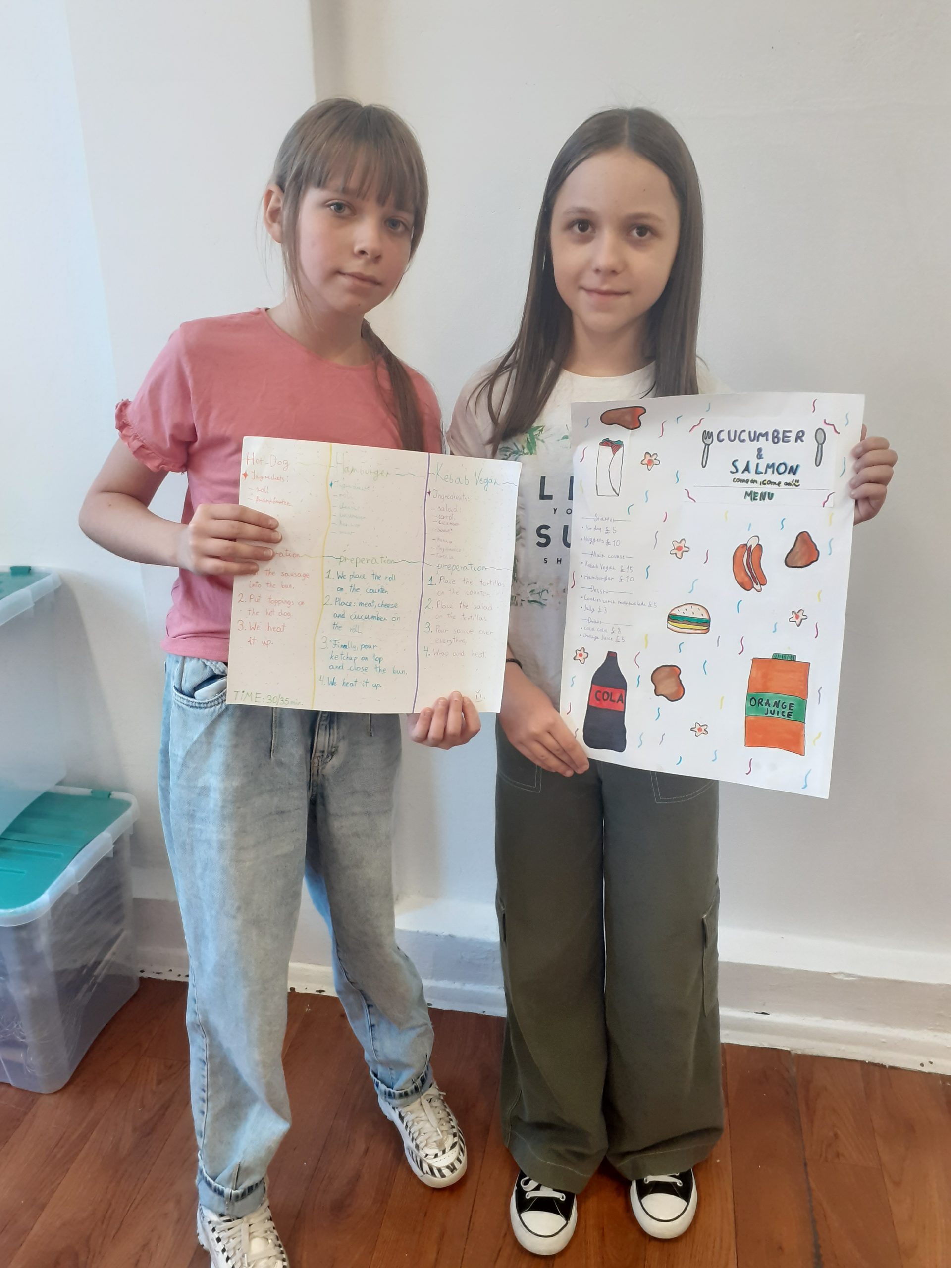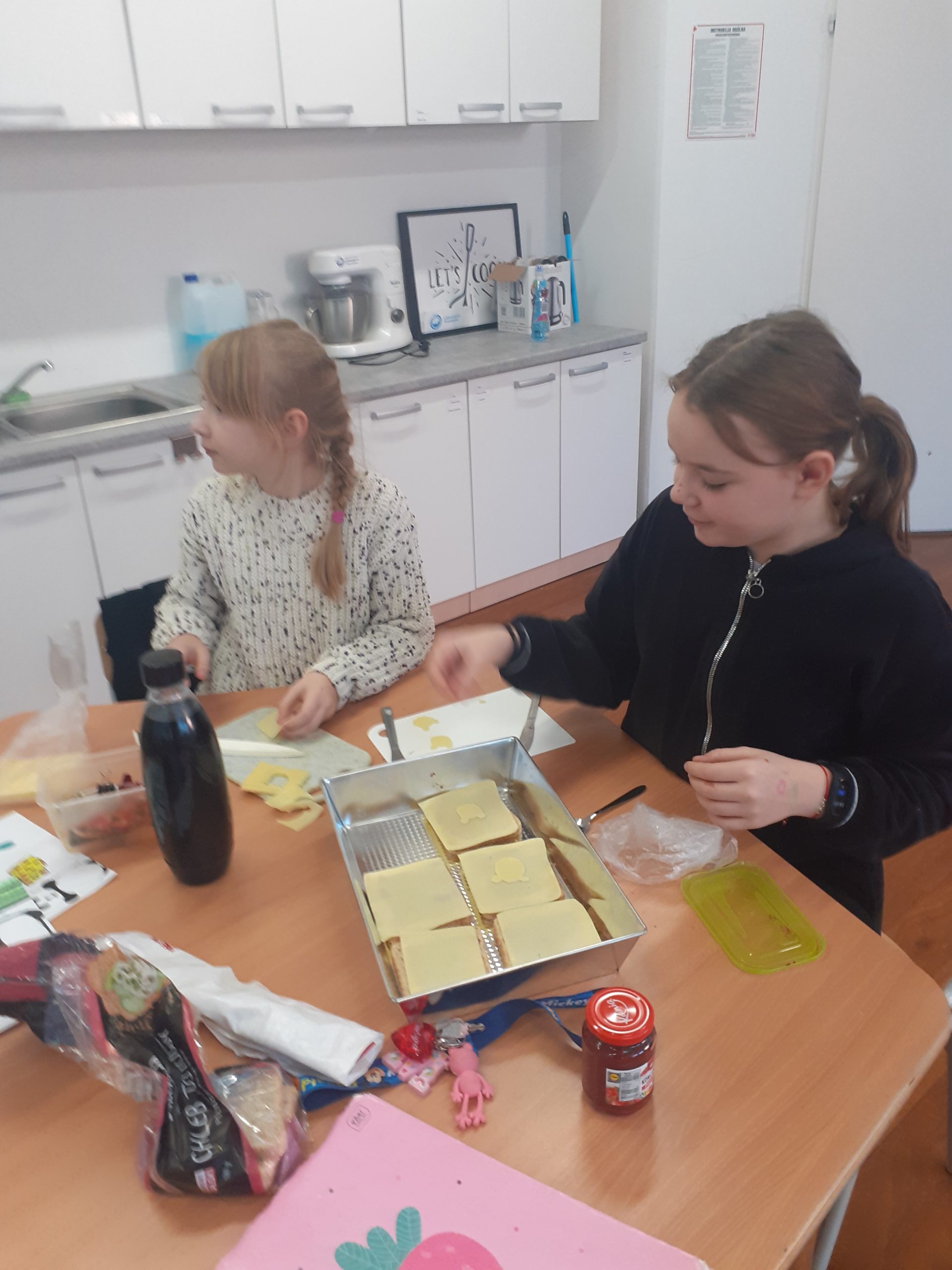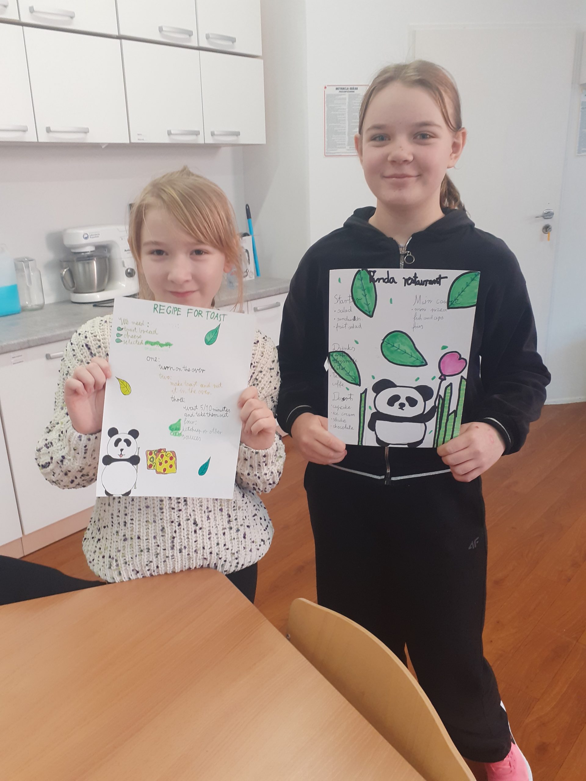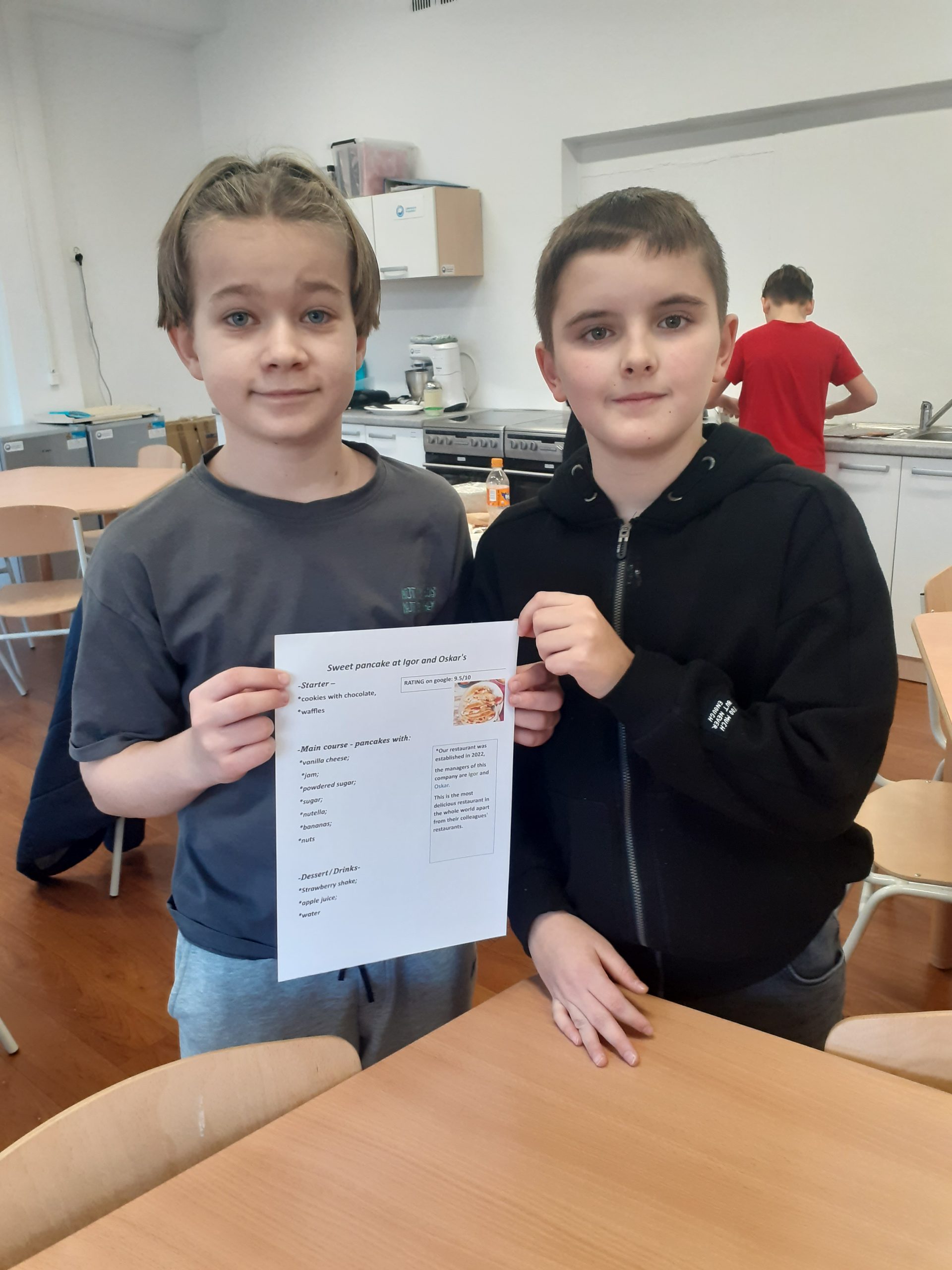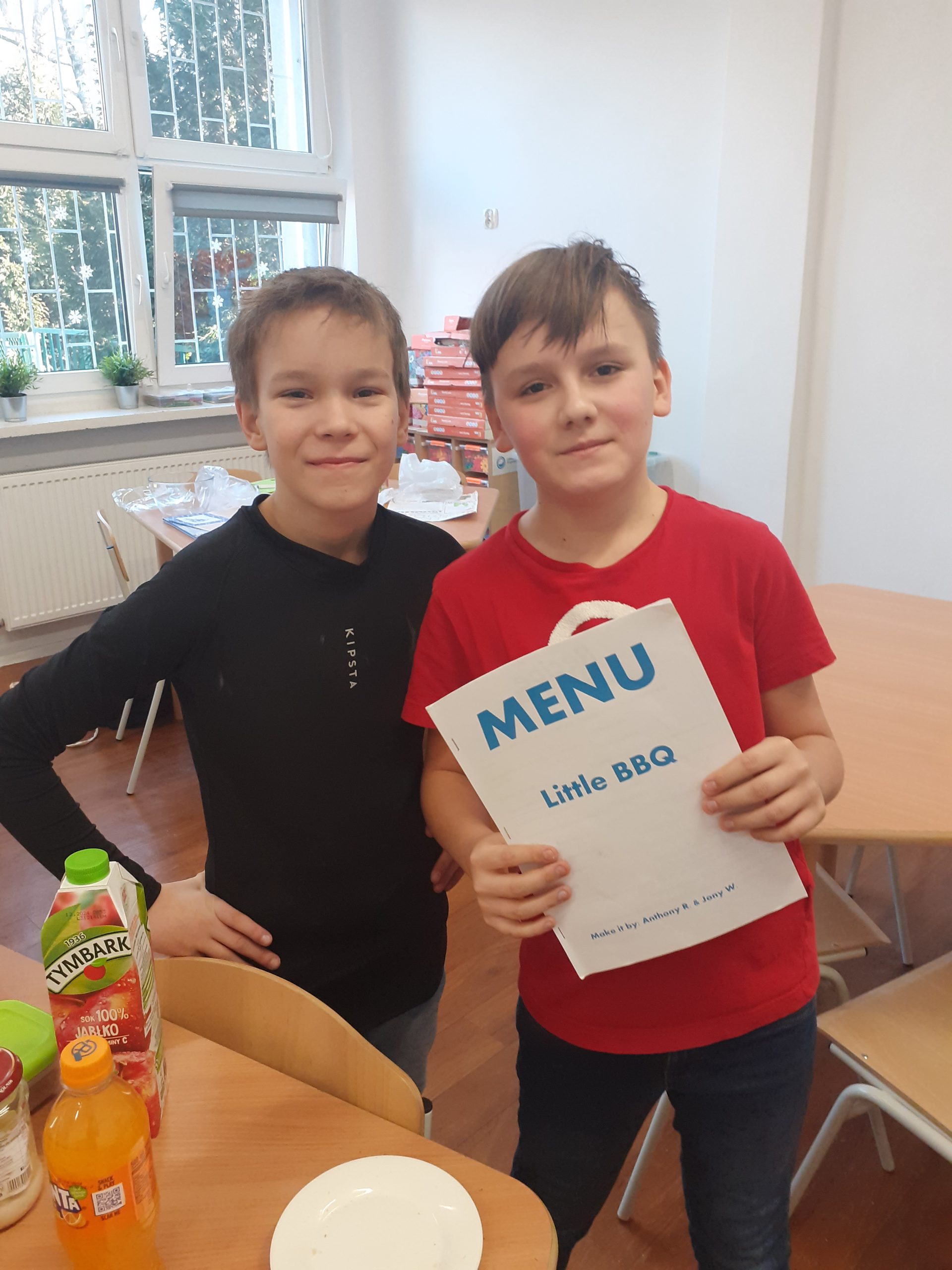 Учні 5а та 5б класів на уроках англійської мови під керівництвом пані Магдалени Шимчак виконували кулінарні проекти. Вони полягали у підготовці плакатів англійською мовою з меню та рецептами обраних страв. Потім учні презентували свої проекти в парах та розігрували сцени замовлення їжі в ресторані. Останнім етапом було приготування смачних страв з використанням кухонного обладнання в Куччіково. Учні проявили свою винахідливість та запропонували різноманітні страви, десерти та напої. Подавали гарячі страви, такі як млинці з різними начинками, піца, гамбургери, тости або хліб в яйцях. Крім гарячих страв, готували салати (грецькі та фруктові), а також десерти, соки та молочні коктейлі. Дегустація приготованих ласощів принесла багато радості всім бажаючим.
