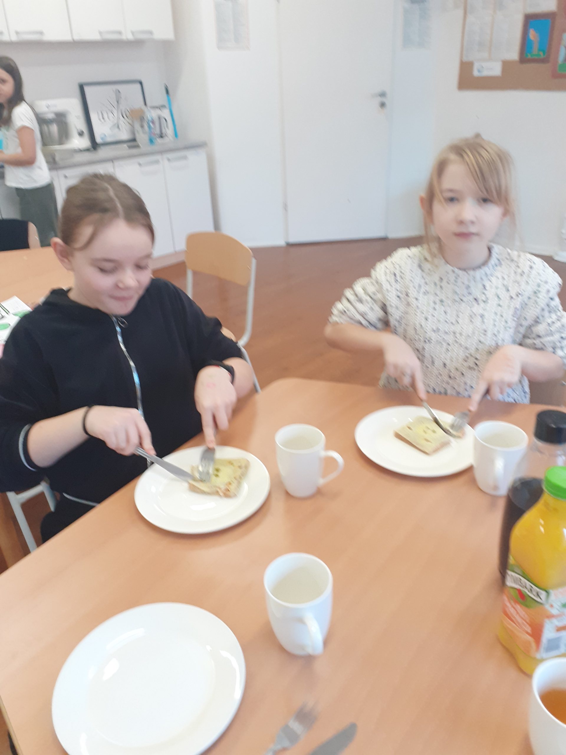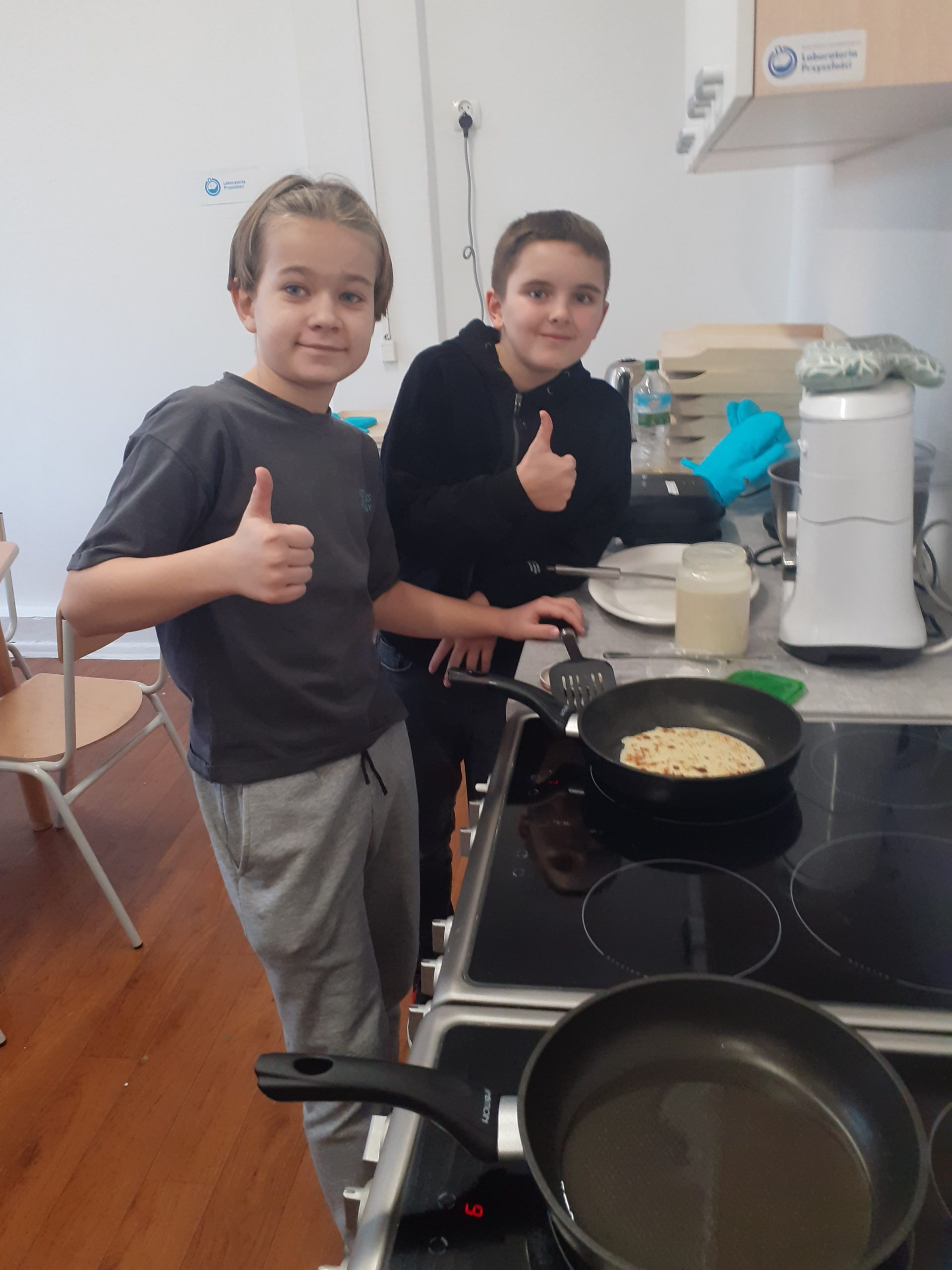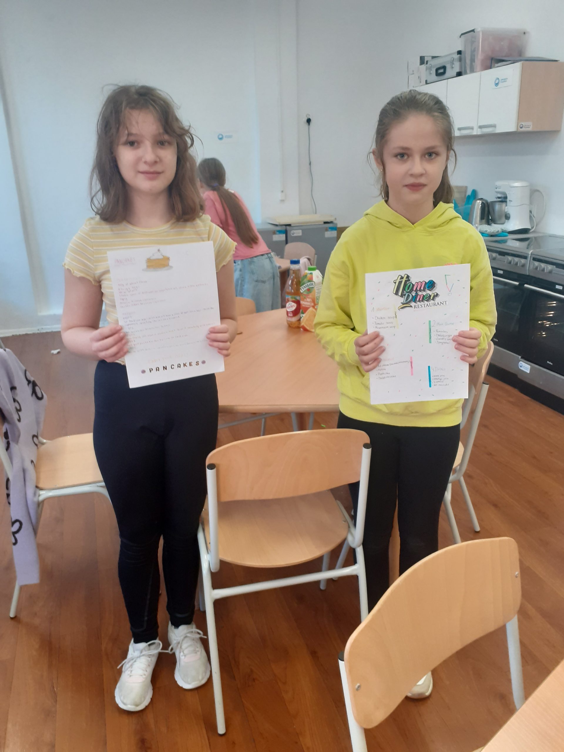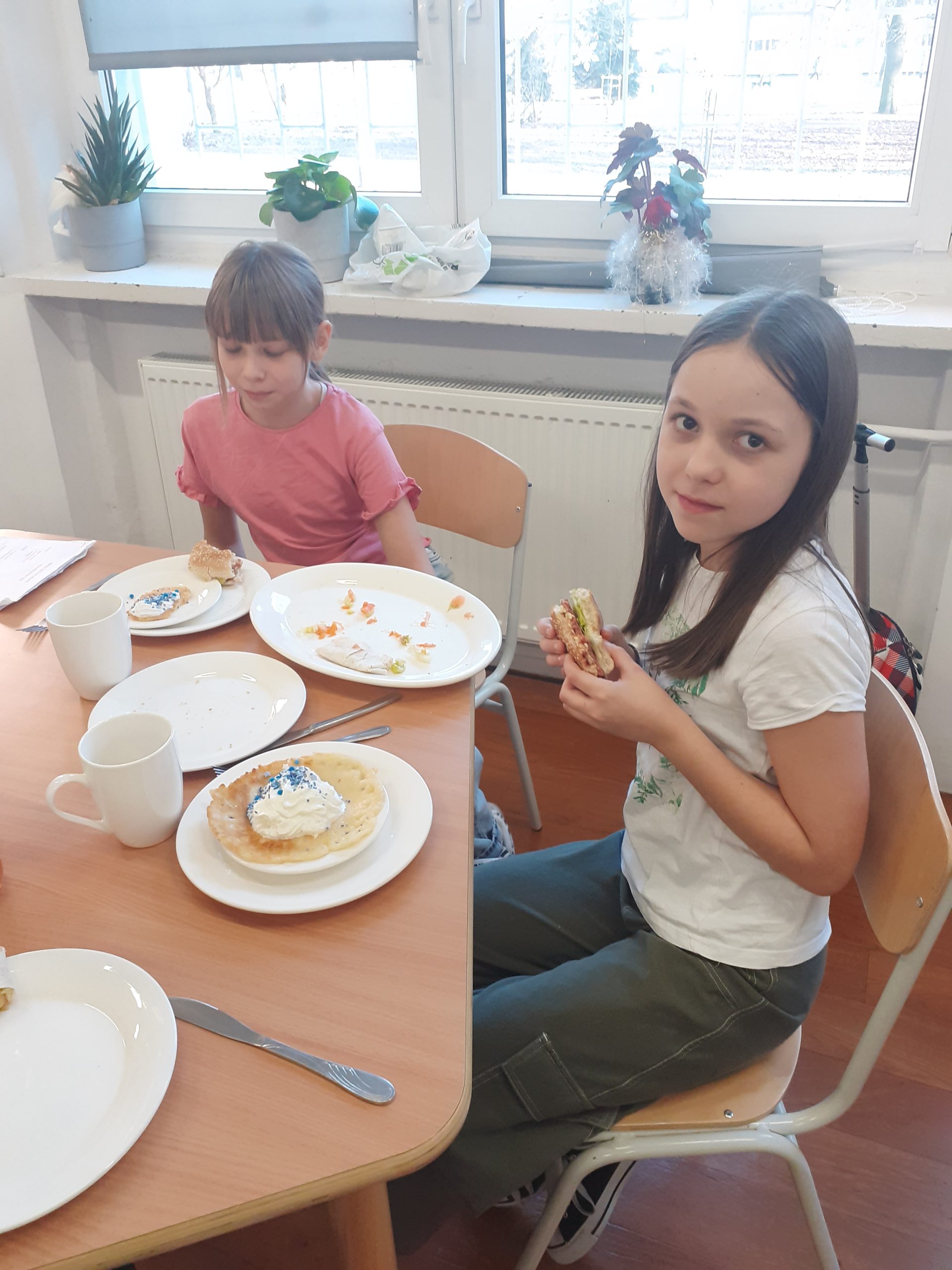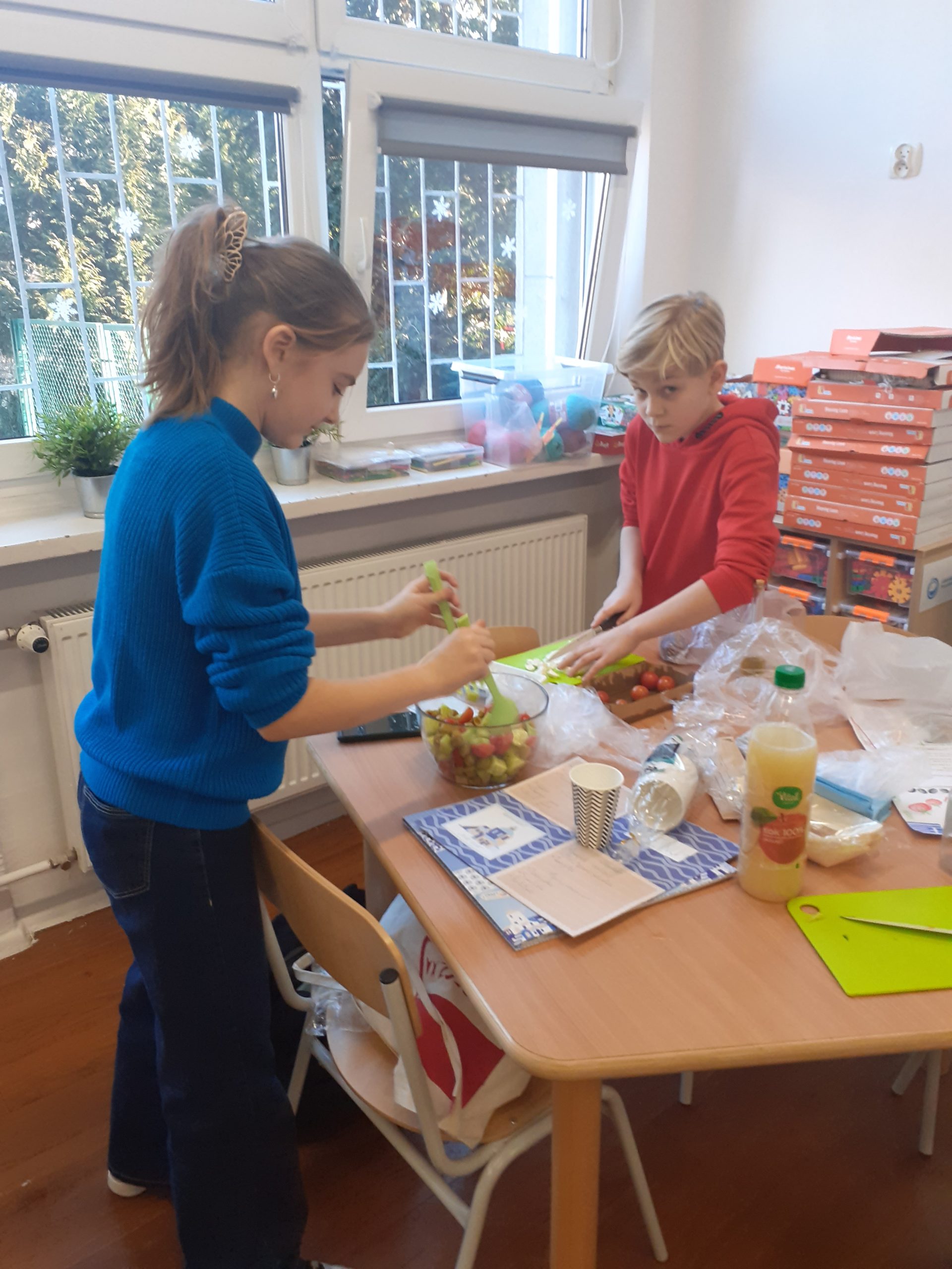 Учні 5а та 5б класів на уроках англійської мови під керівництвом пані Магдалени Шимчак виконували кулінарні проекти. Вони полягали у підготовці плакатів англійською мовою з меню та рецептами обраних страв. Потім учні презентували свої проекти в парах та розігрували сцени замовлення їжі в ресторані. Останнім етапом було приготування смачних страв з використанням кухонного обладнання в Куччіково. Учні проявили свою винахідливість та запропонували різноманітні страви, десерти та напої. Подавали гарячі страви, такі як млинці з різними начинками, піца, гамбургери, тости або хліб в яйцях. Крім гарячих страв, готували салати (грецькі та фруктові), а також десерти, соки та молочні коктейлі. Дегустація приготованих ласощів принесла багато радості всім бажаючим.