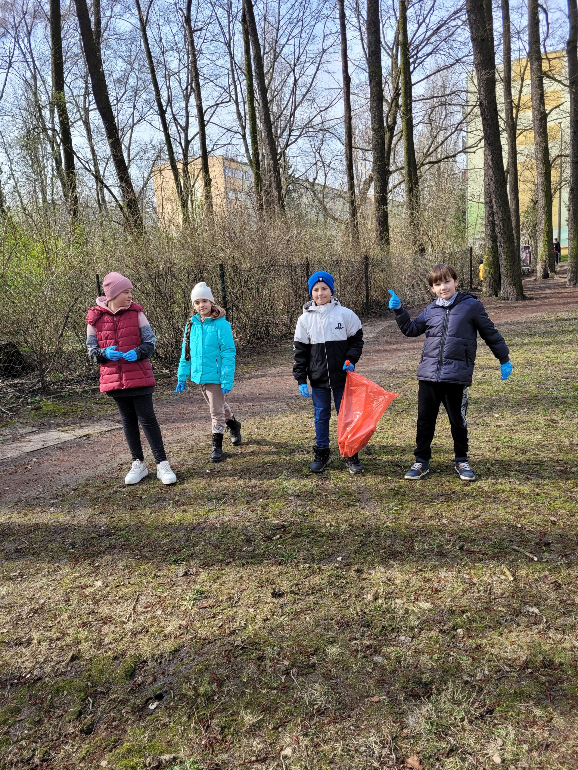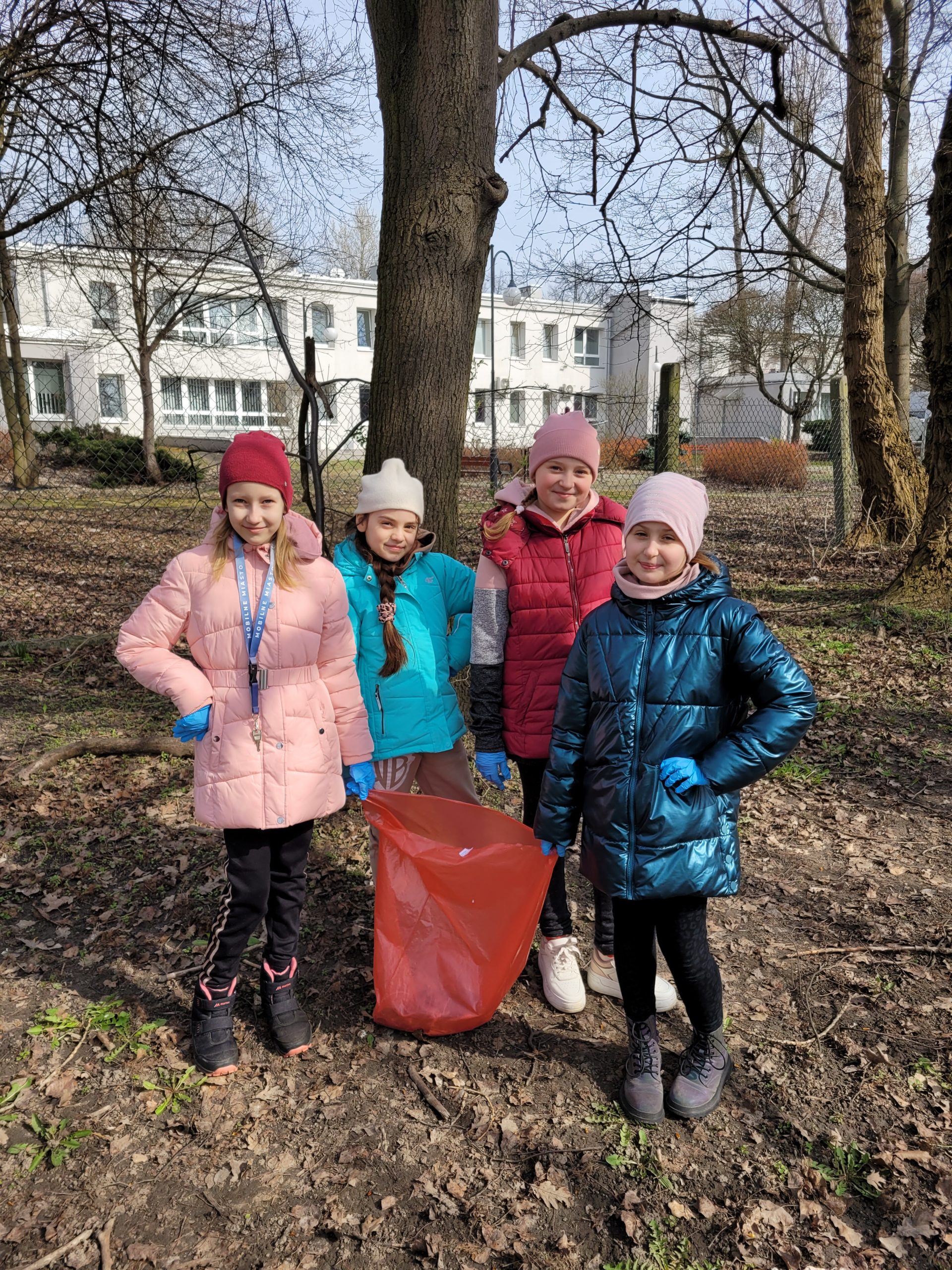 Zaraz 25 marca, uczniowie z klasy 5d razem z wychowawcą z wielkim zaangażowaniem podjęli się również akcji sprzątania. Sprzątali boisko na terenie szkoły. Spacerując wzdłuż szkolnego ogrodzenia widzieliśmy przerzucone na terenie przy budynku śmieci różnego rodzaju od butelek szklanych, butelek plastikowych, puszek, podrzuconych worków ze ściętą skoszoną trawą po elektrośmieci czy wyrzucone krzesło biurowe. Dwa wielkie worki udało nam się zebrać.