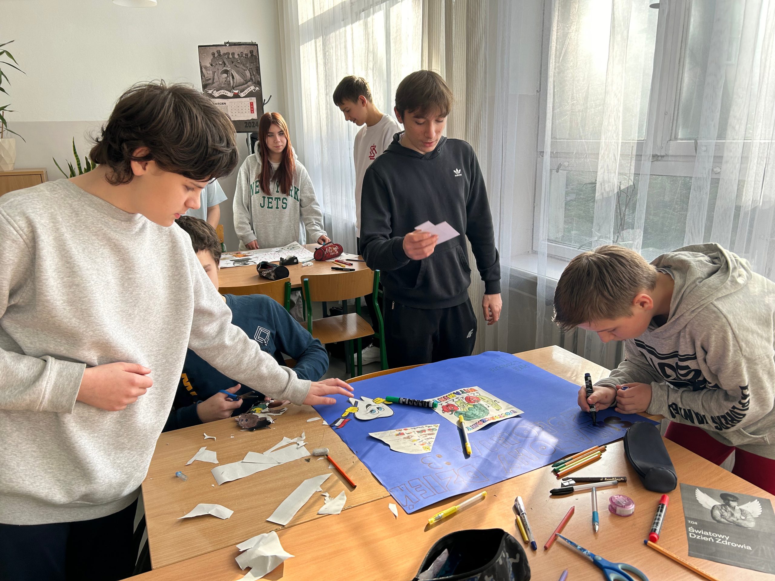 В рамках уроків WOS восьмикласники підготували плакати, пов’язані з темою здоров’я. Молодь зосередилася насамперед на спорті та правильному харчуванні, а також на гігієні порожнини рота. Тоді ми обговорили здоровий спосіб життя. Чи варто піклуватися про себе в такому юному віці? Що робити, щоб було більше енергії? Чому і як ми повинні дбати про нашу планету?