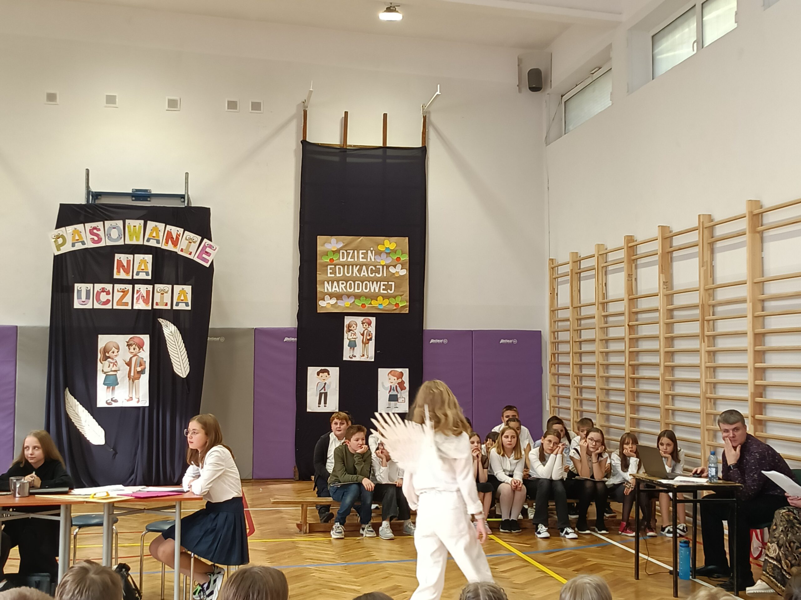 W dniu 15 października odbył się apel z okazji Dnia Edukacji Narodowej. Uroczystość przygotowała klasa V c pod opieką wychowawczyni Pani Małgorzaty Jastrzębskiej, z pomocą merytoryczną Pani Ewy Pełki. Przedstawienie przez uczniów umiliło nam cały dzień. Przedstawili oni w żartobliwy sposób relacje z przerwy z pokoju nauczycielskiego, pokazali style uczniów oraz nauczyciel oraz sposoby przyswajania wiedzy przez uczniów.