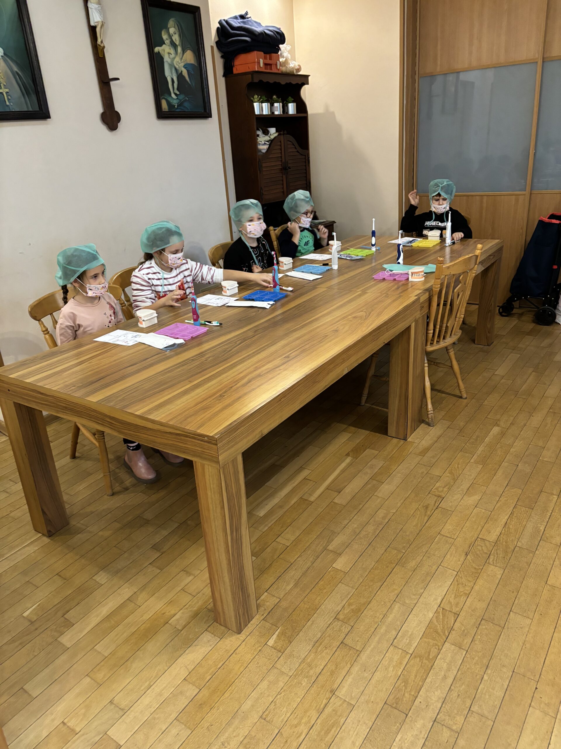 Na koniec warsztatów Dzieci otrzymały pamiątkowe Dyplomy za udział w warsztatach. Oraz zestawy kilku narzędzi dentystycznych do zabawy w domu. Takie warsztaty są doskonałe, aby Uczniowie przekonali się, że właściwe dbanie o zęby już od najmłodszych lat jest ważne. Tak jak częste badanie w gabinecie stomatologicznym swojego stan uzębienia.