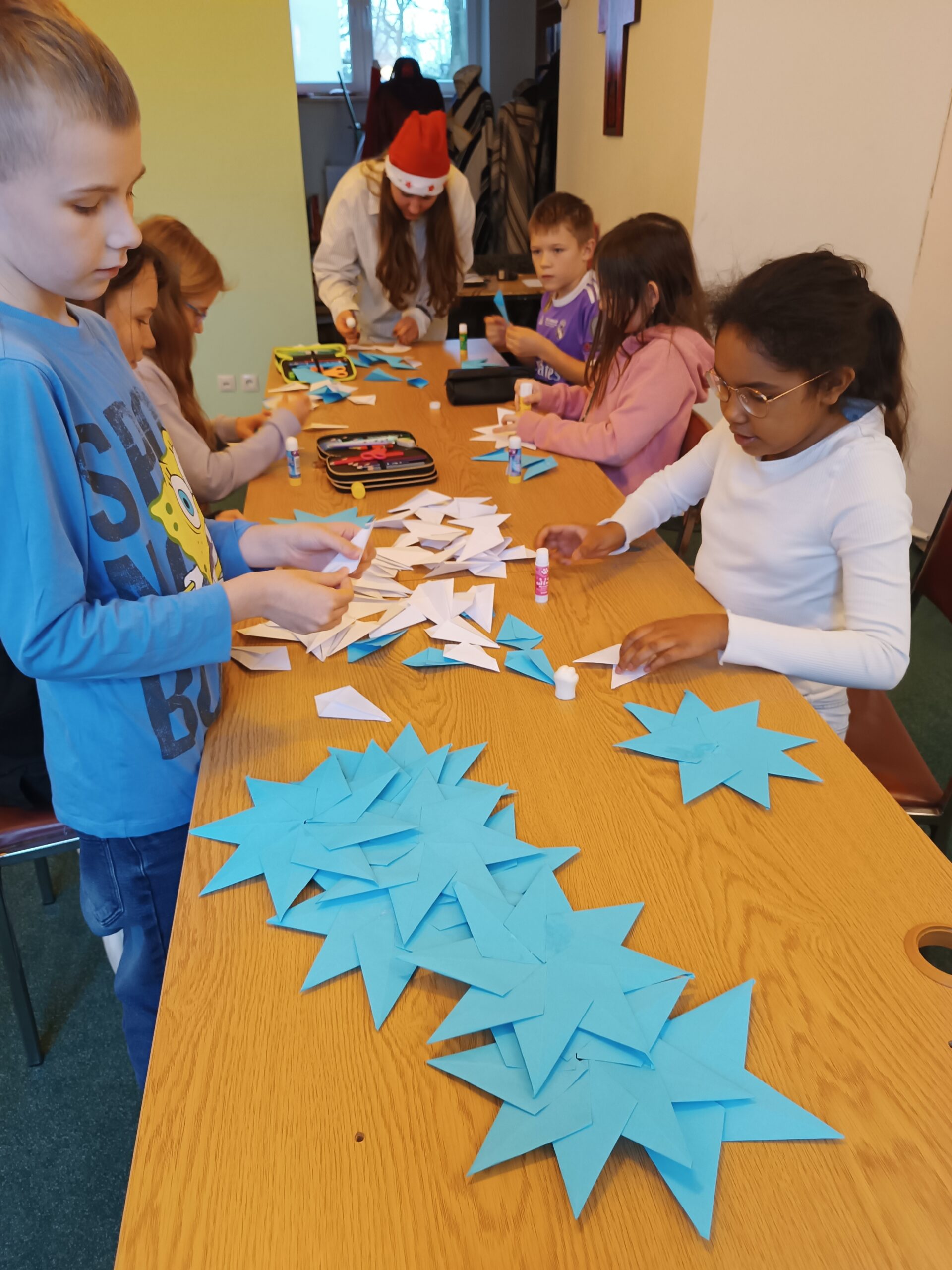 9 grudnia 2024 r. w budynku A i na plebanii odbył się kolejny Festiwal Origami. W tym roku odbył się on pod hasłem „Świeć gwiazdeczko mała świeć”. Dzieci z klas 1- 3 wspólnie wykonały papierowe składanki, z których powstały gwiazdy. Młodszym kolegom pomagali wolontariusze z klasy 7a i 8a, jako młodzi adepci sztuki origami. Efekt pracy uczniów można podziwiać na drzwiach i w holu przy jadalni.
