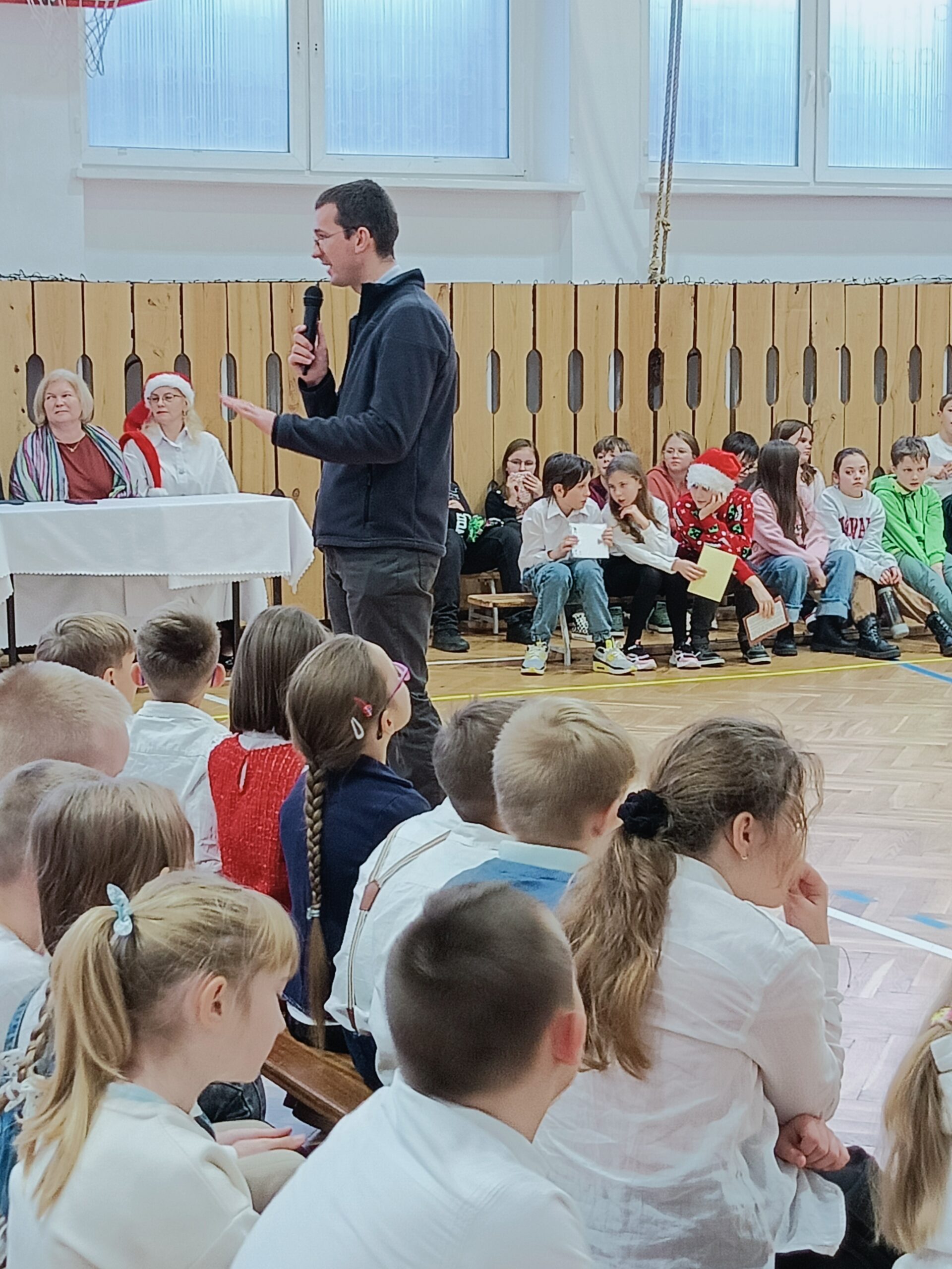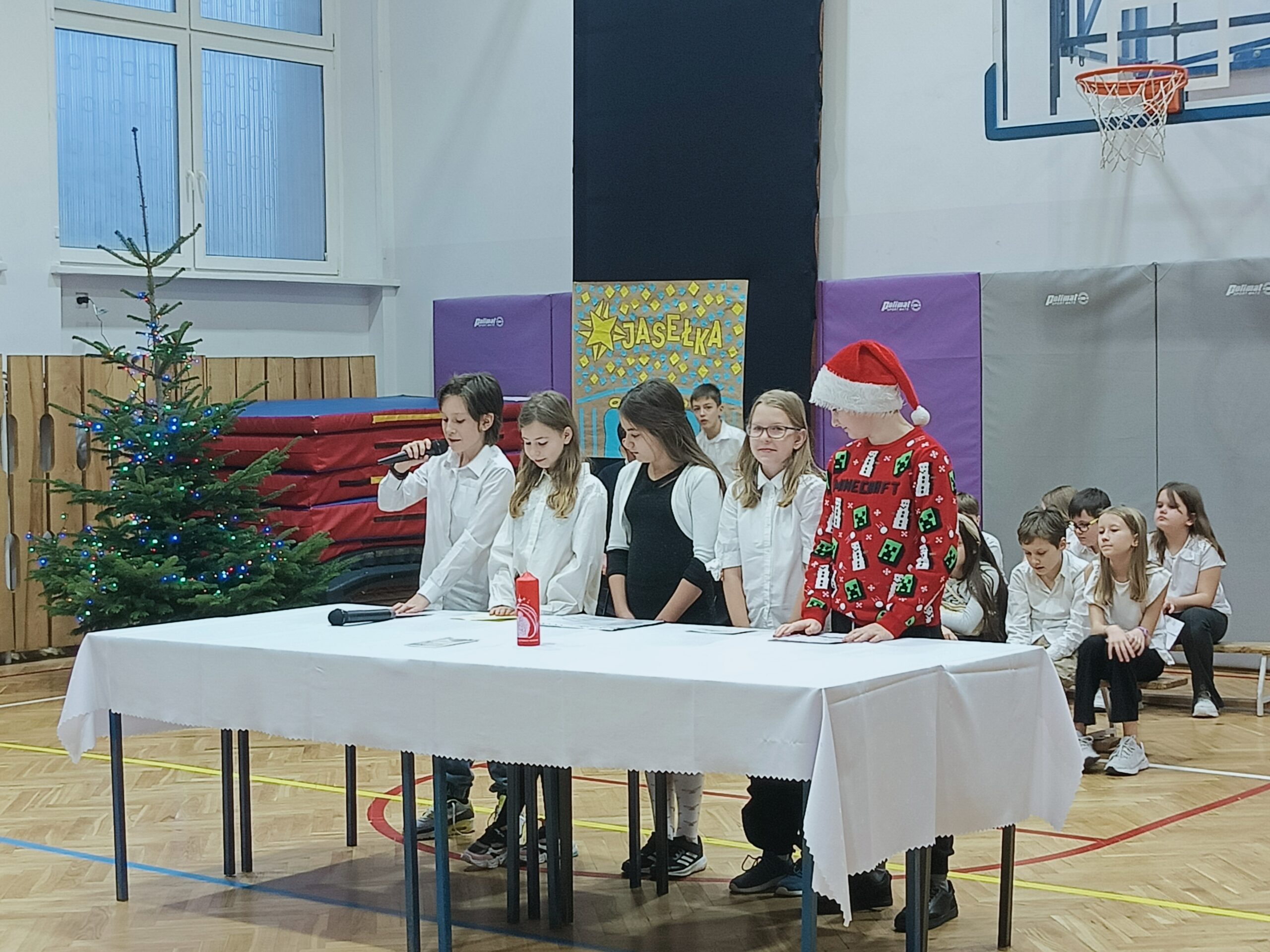 Przedstawiane tradycje były oplatane piosenkami świątecznymi i kolędami, w wykonaniu szkolnego chóru, pod opieką pana Pawła Mogińskiego.
