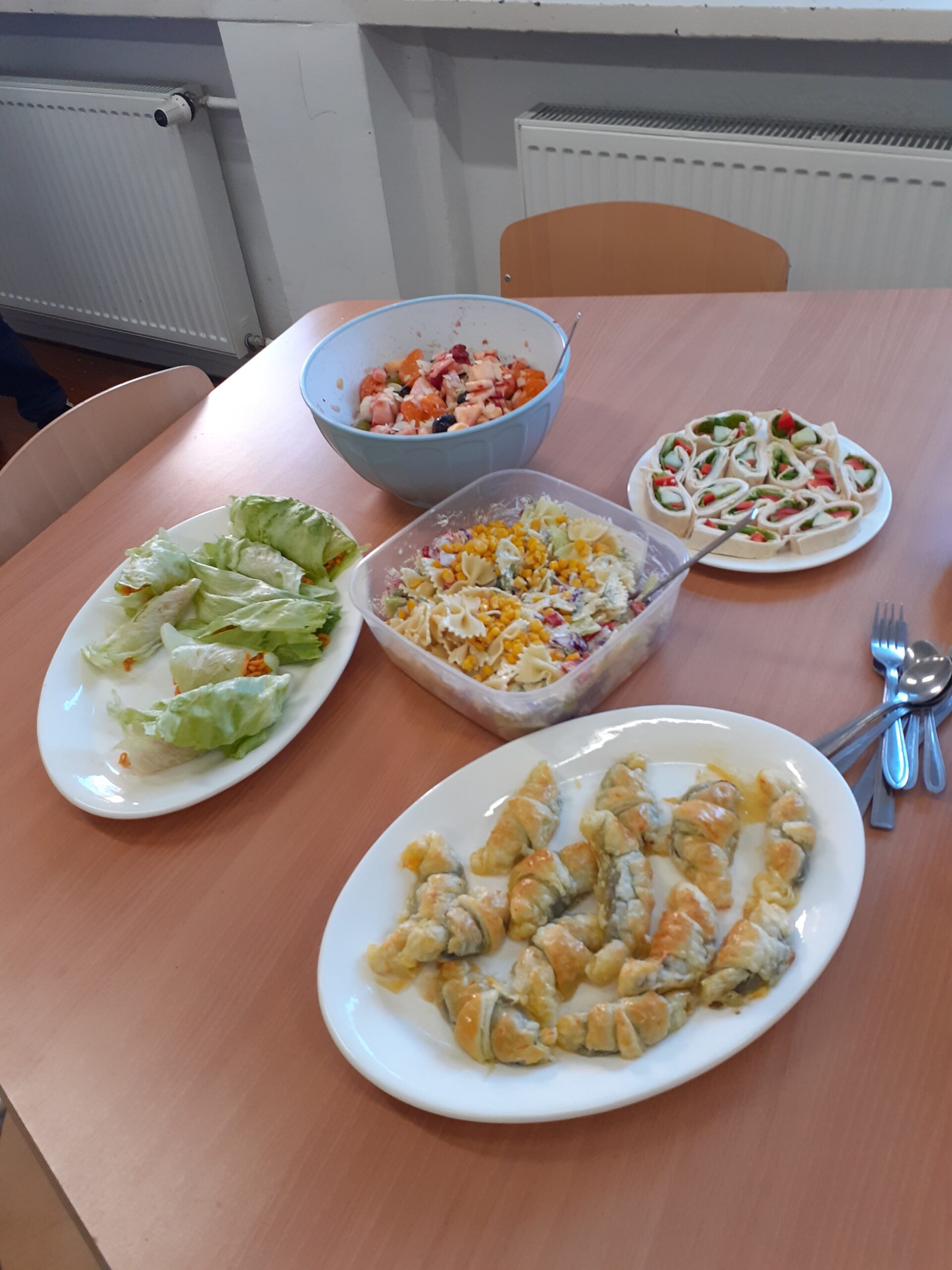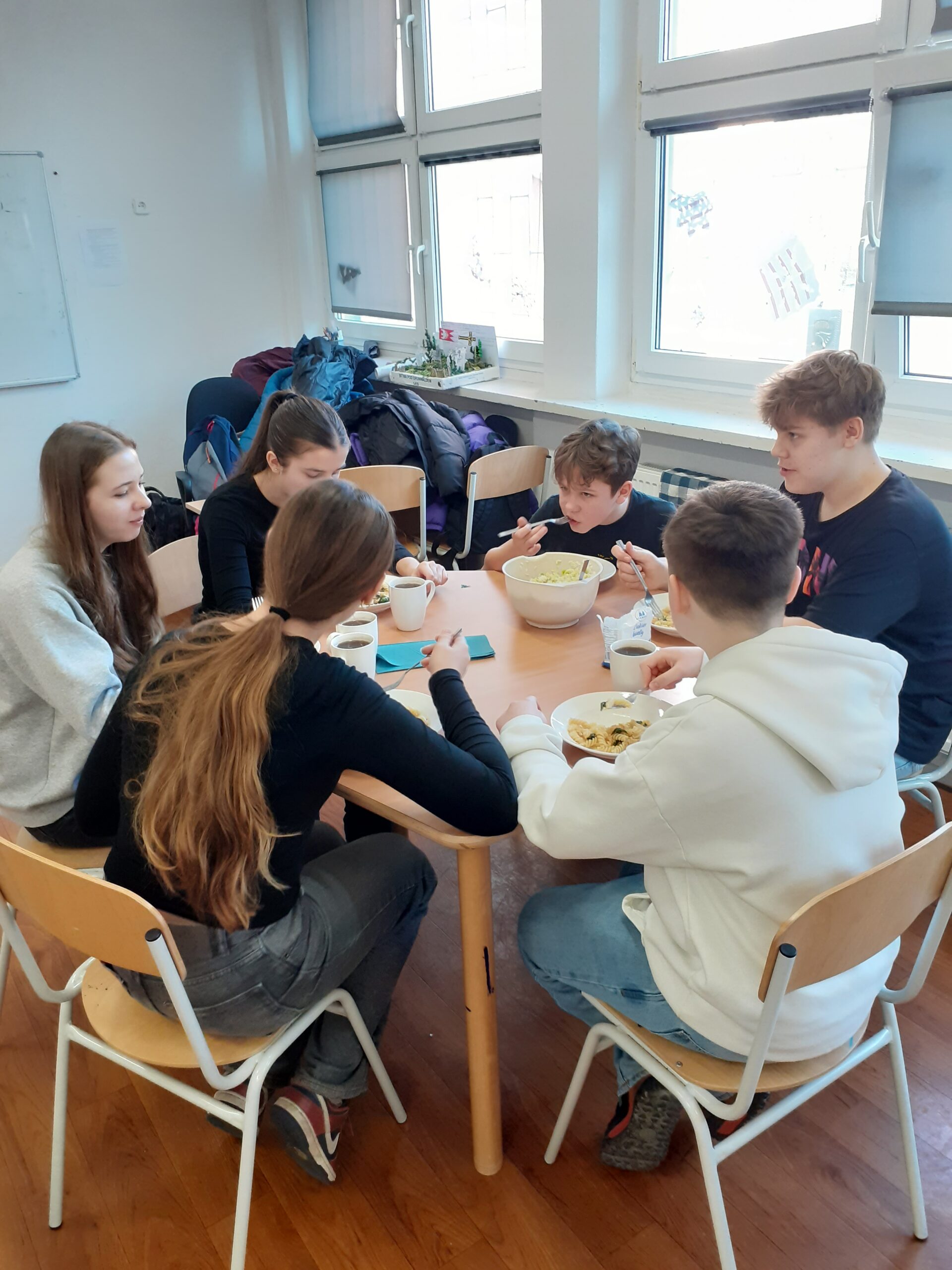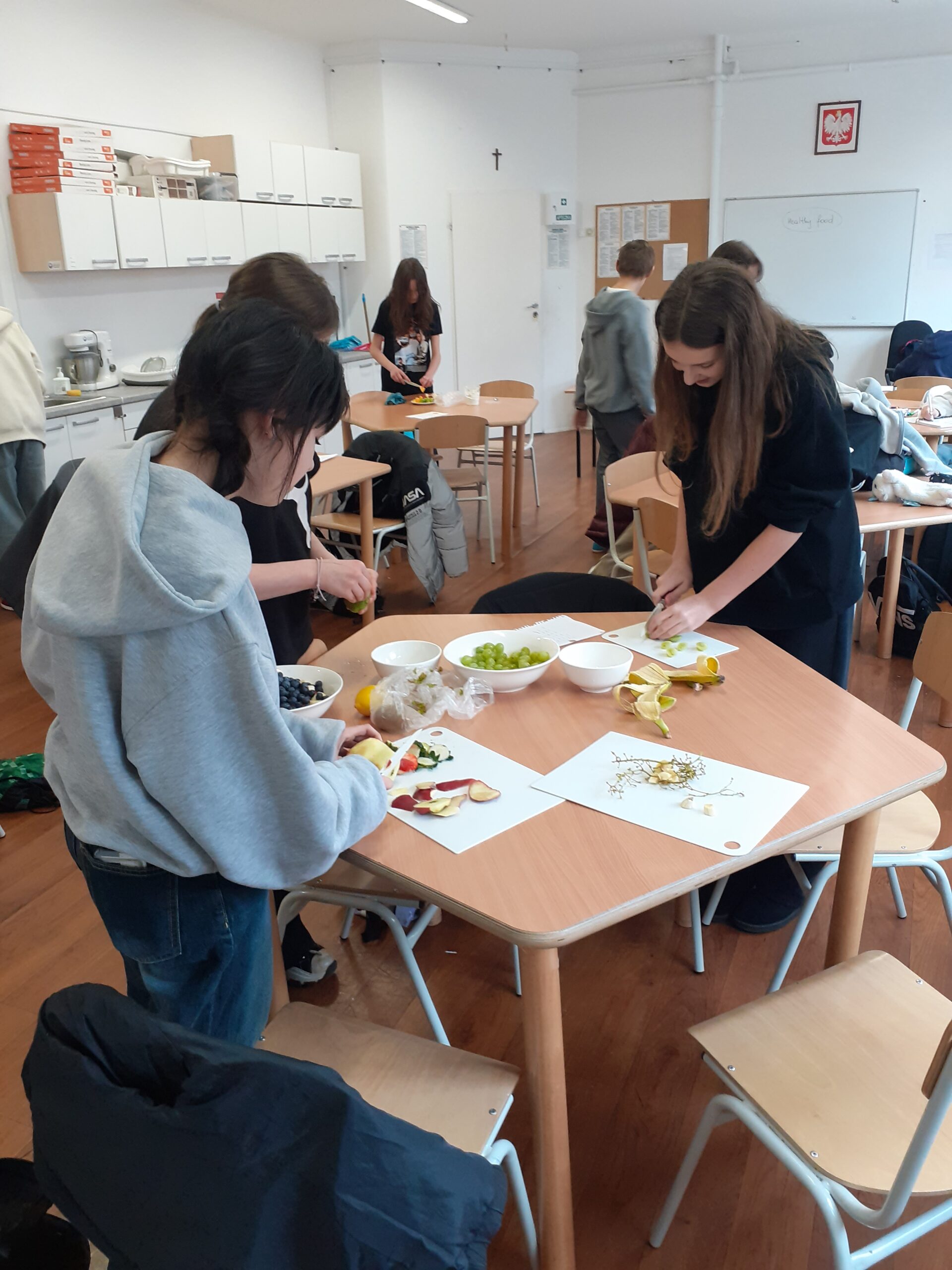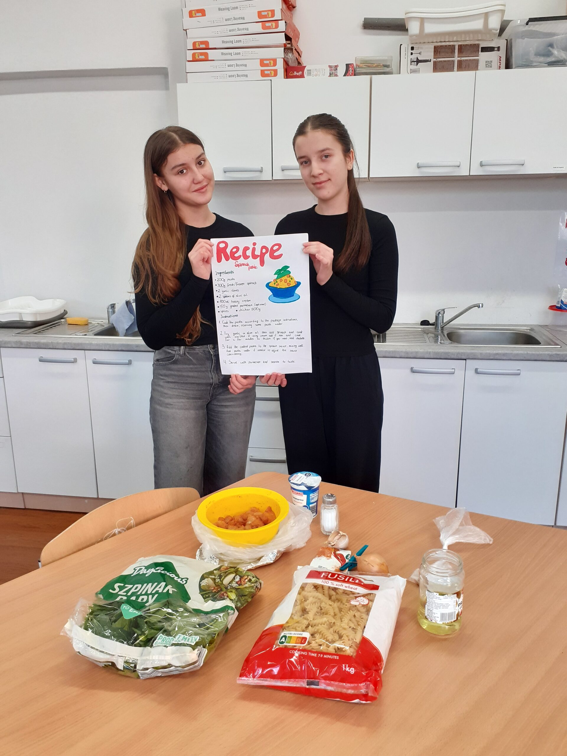 Po raz kolejny uczniowie klasy 8b, 6c, 6a i 6b mieli okazję zaprezentować swoje projekty kulinarne w języku angielskim. Polegały one na opracowaniu plakatów z przepisami na zdrowe i smaczne potrawy. Na początku uczniowie przedstawili listę składników potrzebnych do przyrządzenia dań. Były wśród nich świeże warzywa i owoce, które są podstawą zdrowego odżywiania. Uczniowie przygotowali zarówno ciepłe dania w postaci makaronu ze szpinakiem, naleśników, tostów czy omletów warzywnych. Nie zabrakło także zdrowych sałatek warzywnych i owocowych oraz smacznych deserów. W czasie oczekiwania na degustację dań, pozostali uczniowie układali z puzzli napisy lub opracowywali słowniczki obrazkowe w języku angielskim. Były on tematycznie związane z lekcją o zdrowej żywności. Na koniec uczniowie zaprezentowali przygotowane potrawy i zaprosili wszystkich do ich degustacji.