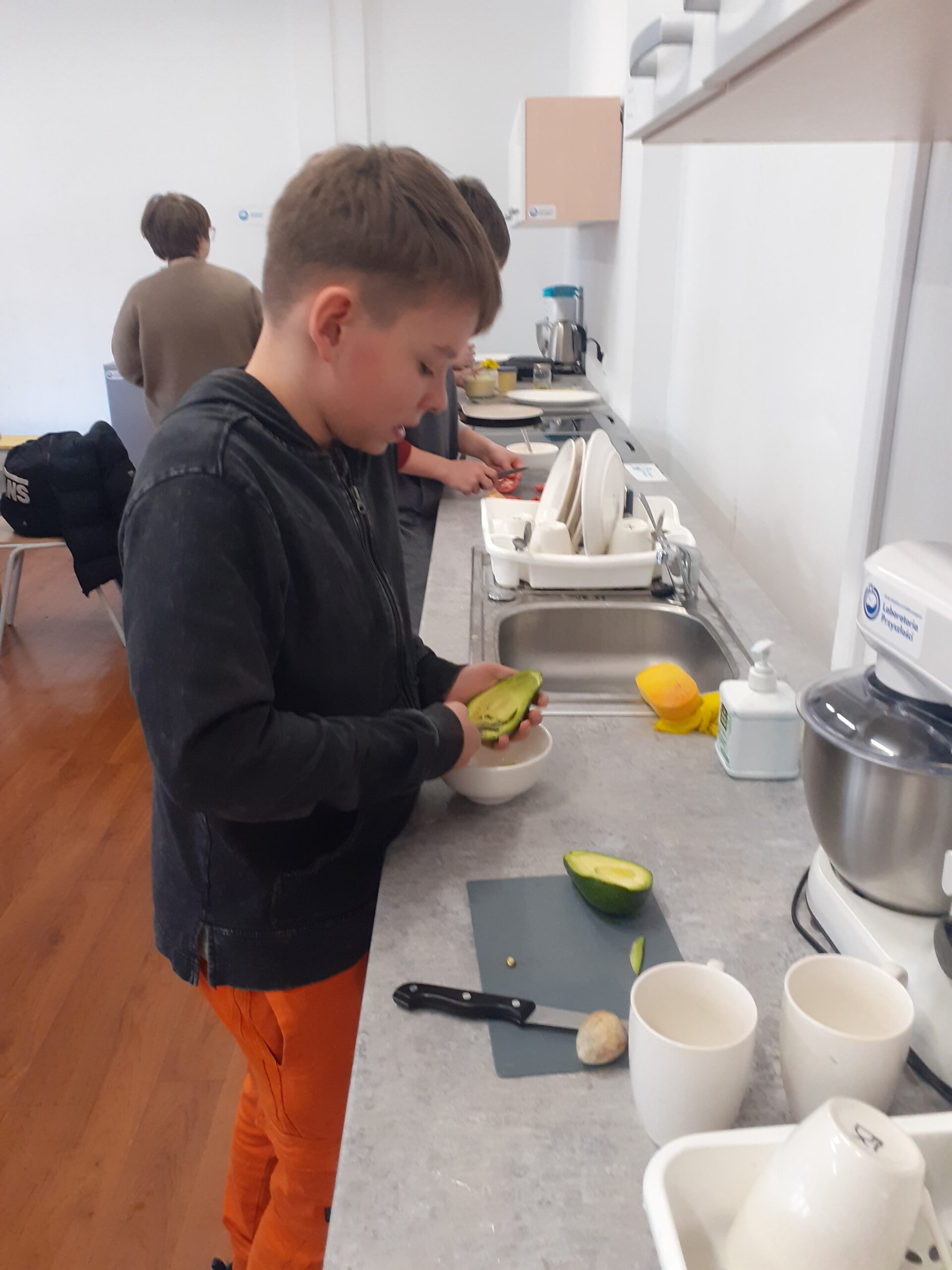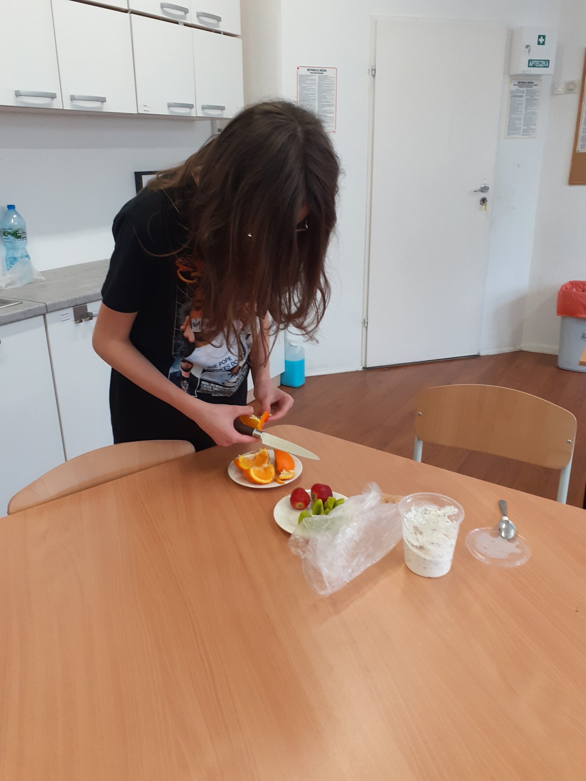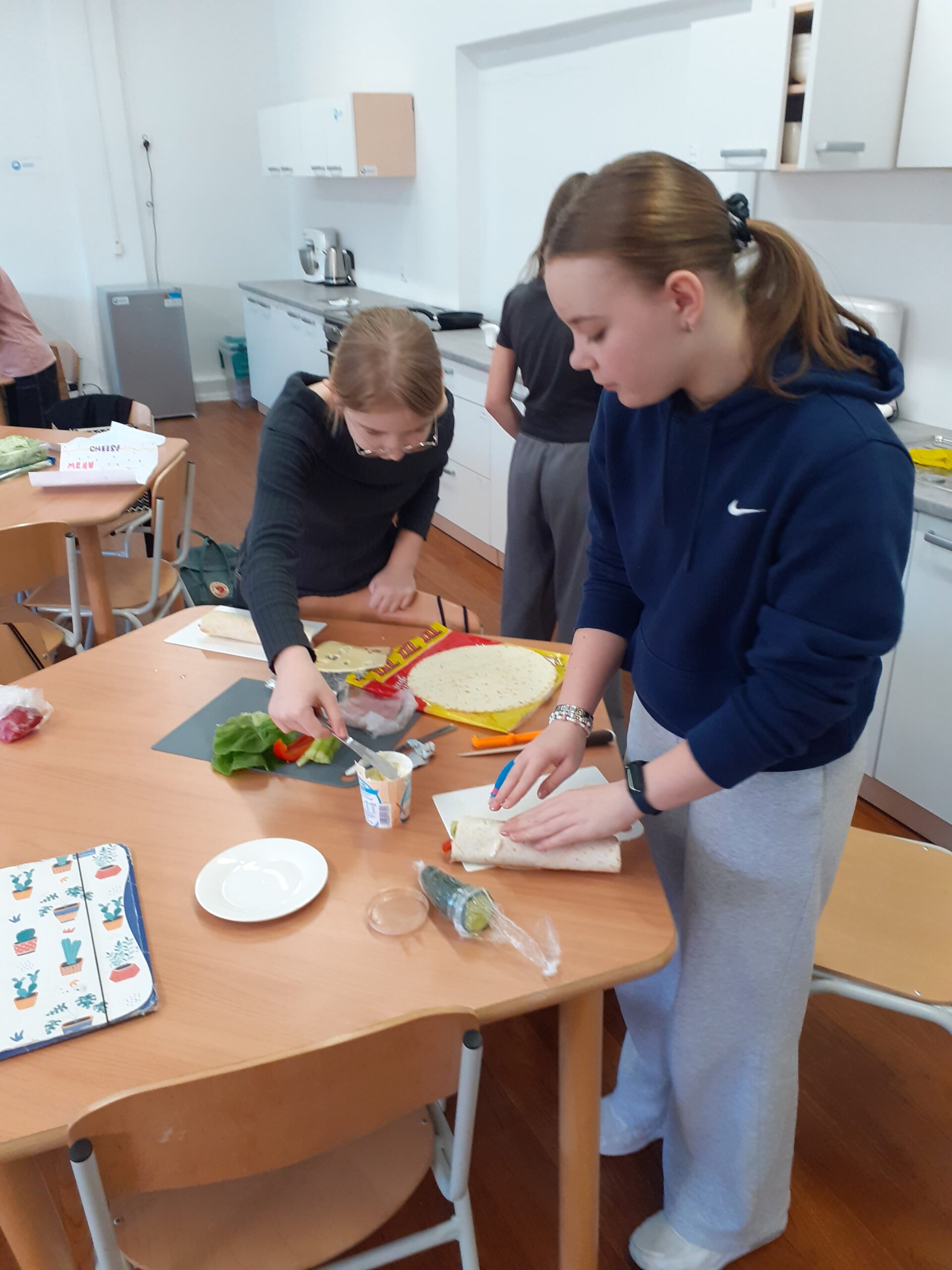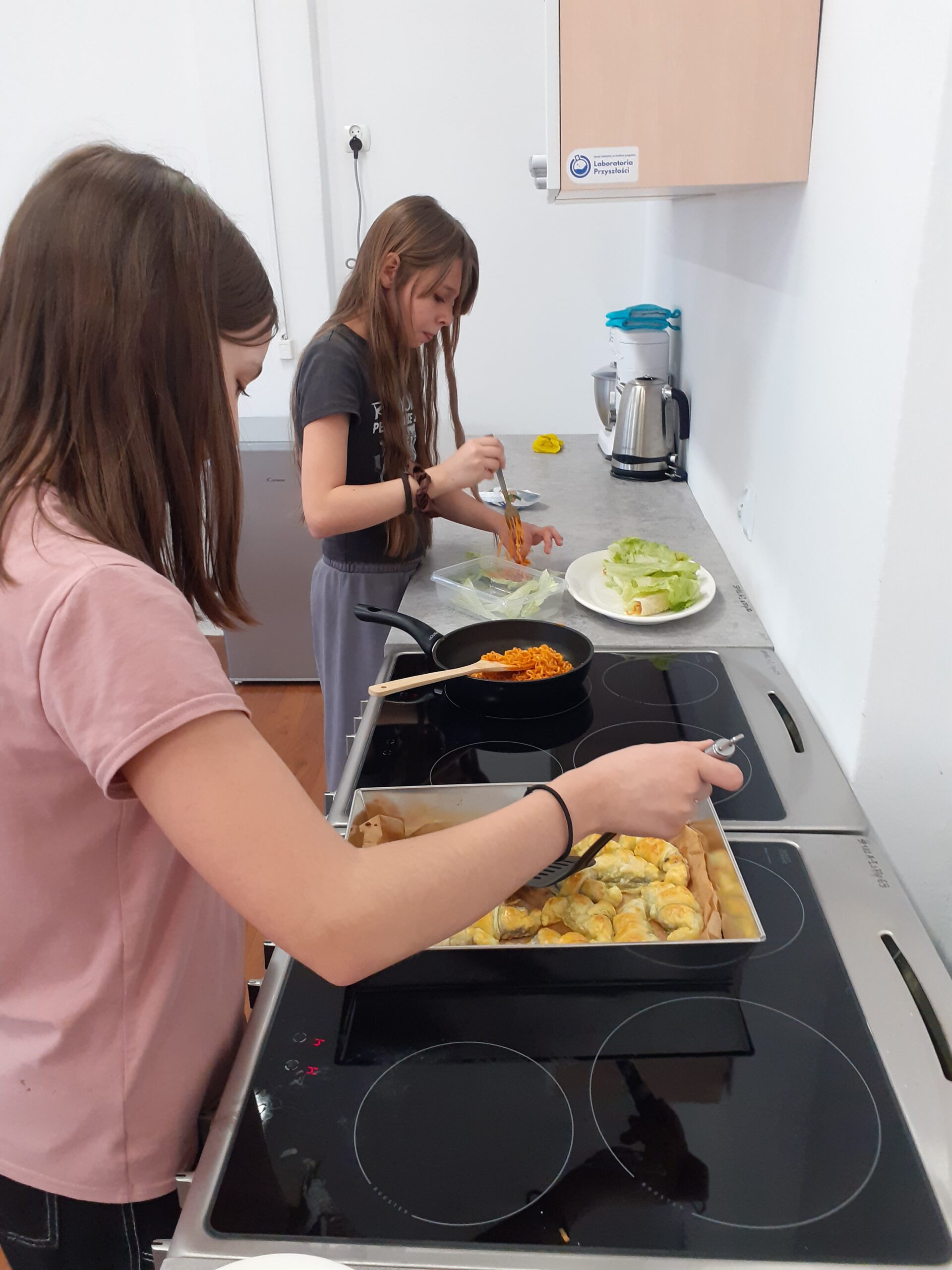 Po raz kolejny uczniowie klasy 8b, 6c, 6a i 6b mieli okazję zaprezentować swoje projekty kulinarne w języku angielskim. Polegały one na opracowaniu plakatów z przepisami na zdrowe i smaczne potrawy. Na początku uczniowie przedstawili listę składników potrzebnych do przyrządzenia dań. Były wśród nich świeże warzywa i owoce, które są podstawą zdrowego odżywiania. Uczniowie przygotowali zarówno ciepłe dania w postaci makaronu ze szpinakiem, naleśników, tostów czy omletów warzywnych. Nie zabrakło także zdrowych sałatek warzywnych i owocowych oraz smacznych deserów. W czasie oczekiwania na degustację dań, pozostali uczniowie układali z puzzli napisy lub opracowywali słowniczki obrazkowe w języku angielskim. Były on tematycznie związane z lekcją o zdrowej żywności. Na koniec uczniowie zaprezentowali przygotowane potrawy i zaprosili wszystkich do ich degustacji.