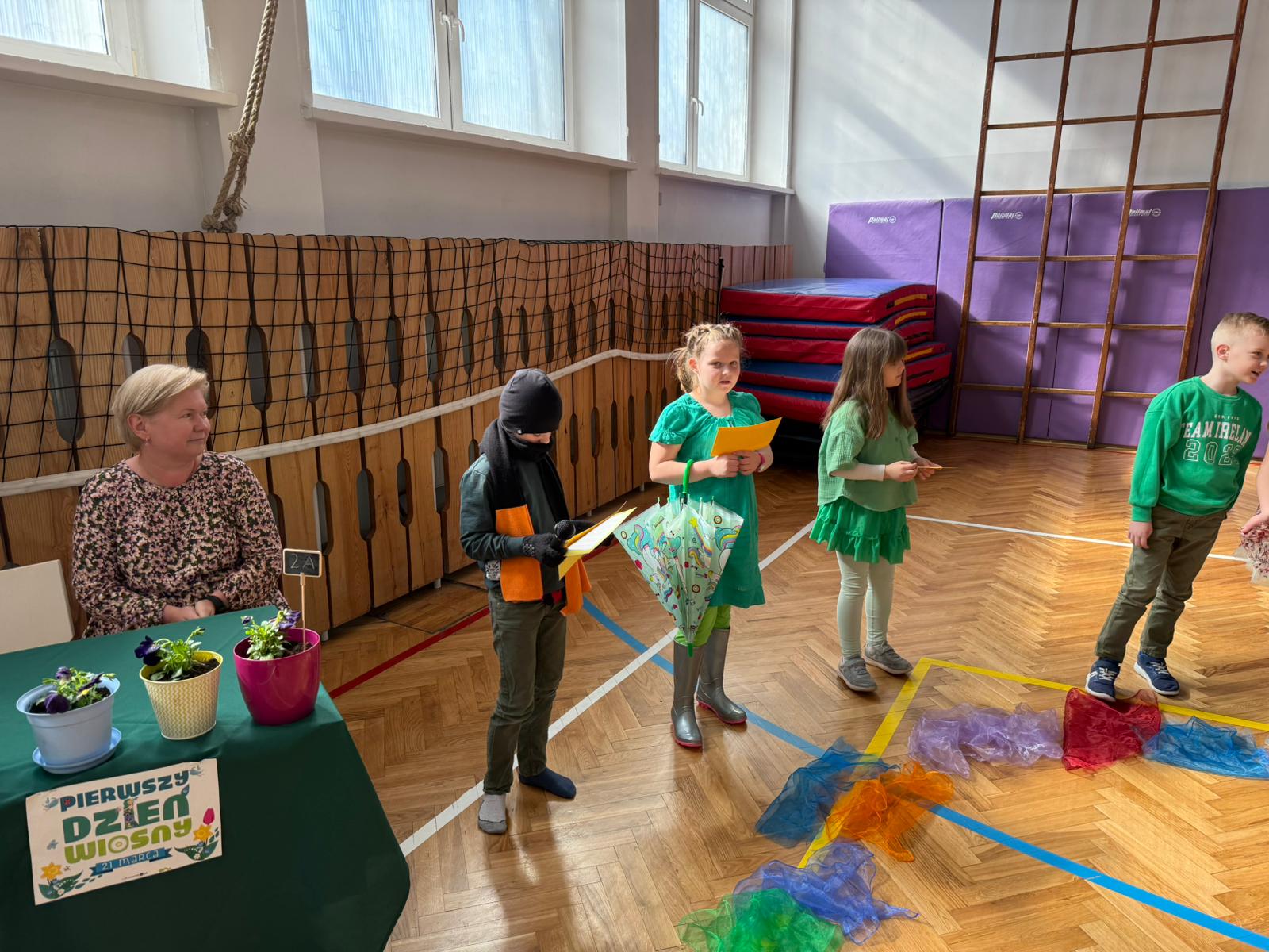 21 marca klasa 2a przygotowała krótki apel na powitanie wiosny. Uczniowie wszystkich klas specjalnie na ten dzień ubrali się za zielono. Przewodniczący z każdej klasy dostarczyli na występ, natomiast wcześniej przygotowane w klasach Marzanny. Aby pożegnać zimę i powitać wiosnę 2a zaśpiewała wesołe piosenki: „W marcu jak w garncu ” oraz ” Idzie wiosna”. Dzieci recytowały wiersze, a na koniec zaśpiewały wiosenną piosenkę i zatańczyły do niej wesołą choreografię z chustkami. Na apelu wspomagała wokalnie 2a, starsza koleżanka- Tosia z klasy 5a.