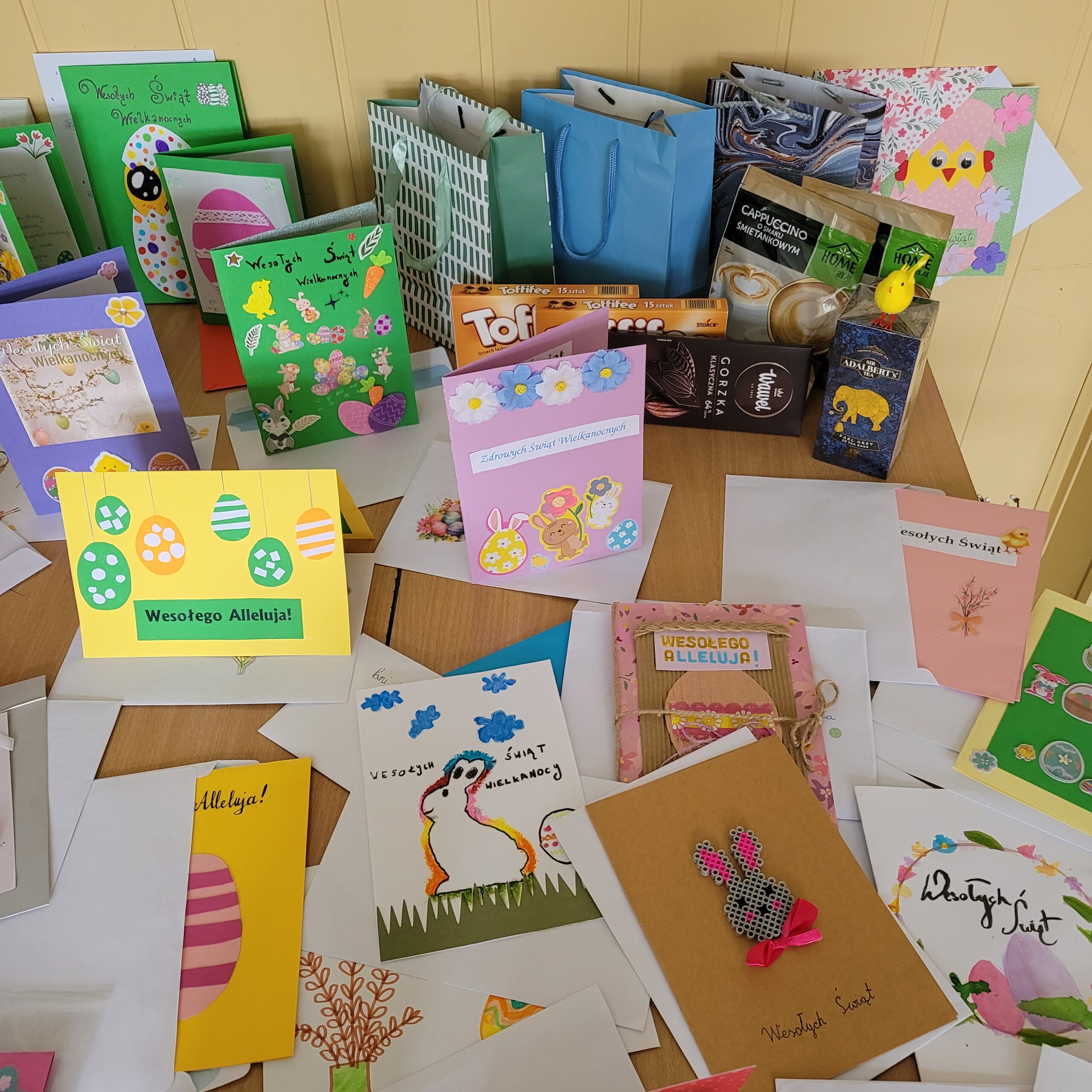 Oprócz przygotowanych kartek, Seniorzy otrzymali także przekazane przez Państwa świąteczne upominki. Mamy nadzieję, że te gesty sprawiły Seniorom radość i poczucie, że nie są sami w tym wyjątkowym czasie.