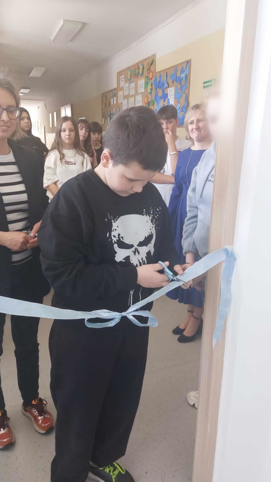 W dniu otwarcia towarzyszyła nam pani Aurelia Wieszczak z Rady Rodziców, która przecięła wstęgę razem z uczniami.