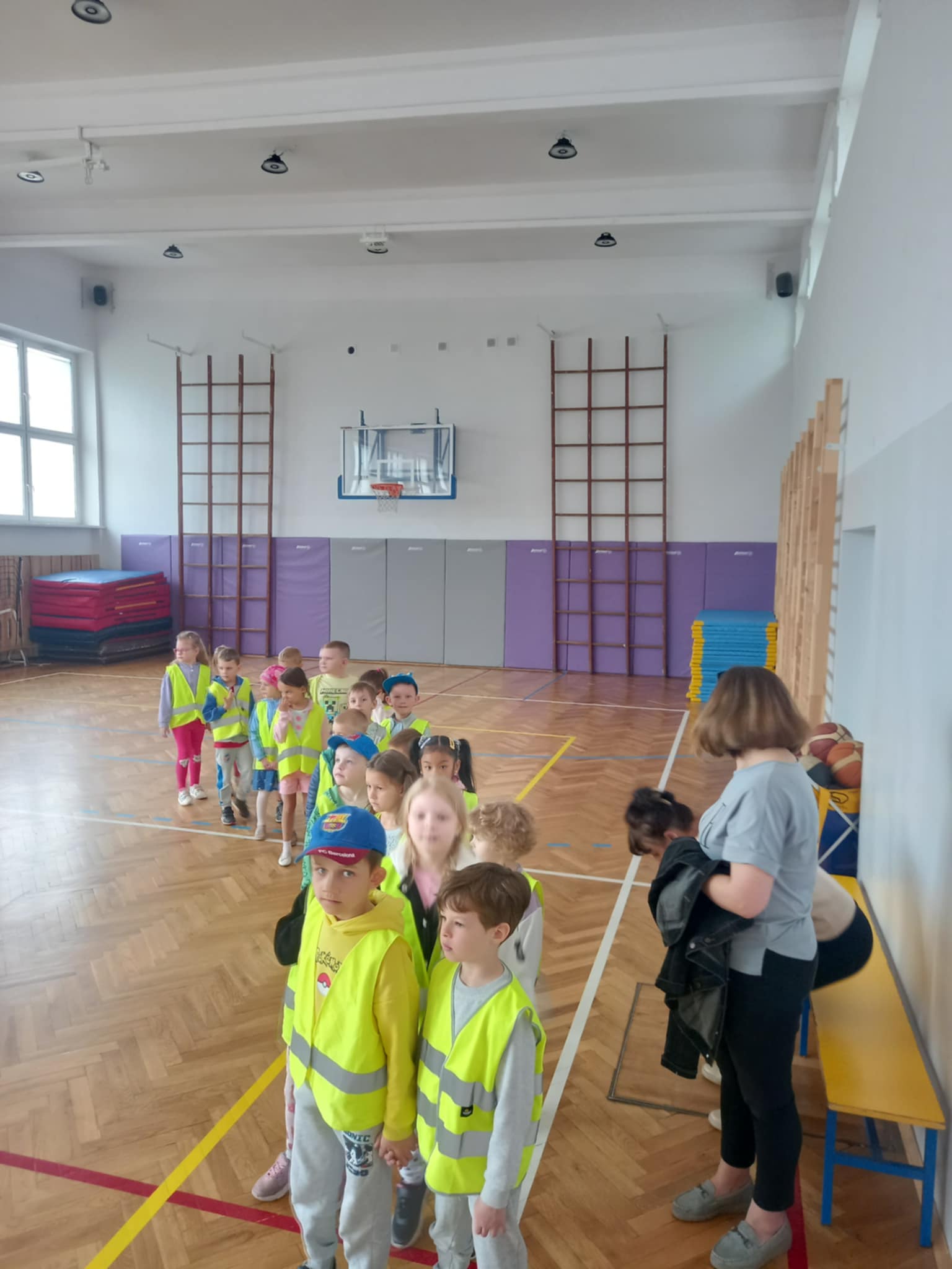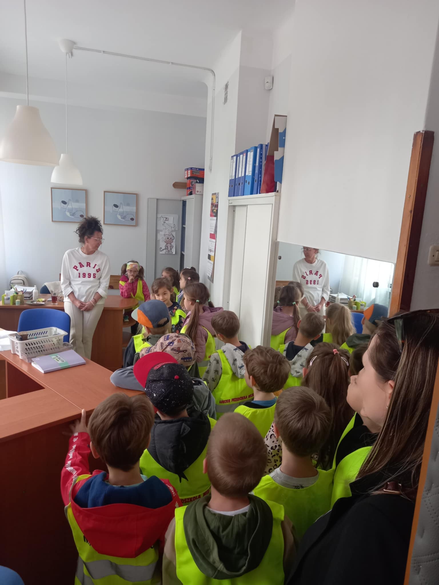 Pierwszym przystankiem były zajęcia z czytelnictwa w bibliotece szkolnej pt. W krainie bajek, które poprowadziła pani Agata Tomaszewska. Oczywiście wszyscy z zaciekawieniem słuchali utworów literackich i odgadywali tytuły losując zagadki. Drugim przystankiem były zajęcia otwarte z języka angielskiego. Przedszkolaki odnajdywały i odgadywały napisy angielskie, pod którymi skrywały się nazwy pomieszczeń w szkole. Później na sali gimnastycznej pani Magdalena Florczak i pani Aleksandra Ludwiczak poprowadziły zajęcia otwarte pt. Zajęcia sportowe na wesoło. Następnie przedszkolaki zwiedziły sekretariat szkoły a także odwiedziły referentki panią Karolinę i panią Klaudię, które opowiedziały o swojej pracy. Ostatnim przystankiem zwiedzania były klasy pierwsze: 1a i 1c. Jak widać na zdjęciach tam przedszkolaki odbyły pierwsze lekcje w ławkach i przy komputerach.