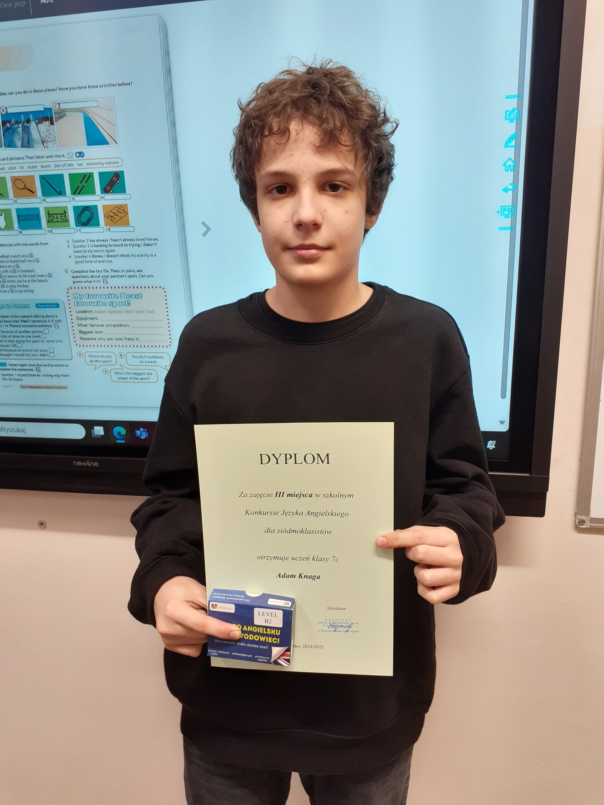 III miejsce – Adam Knaga z klasy 7c z wynikiem 86%