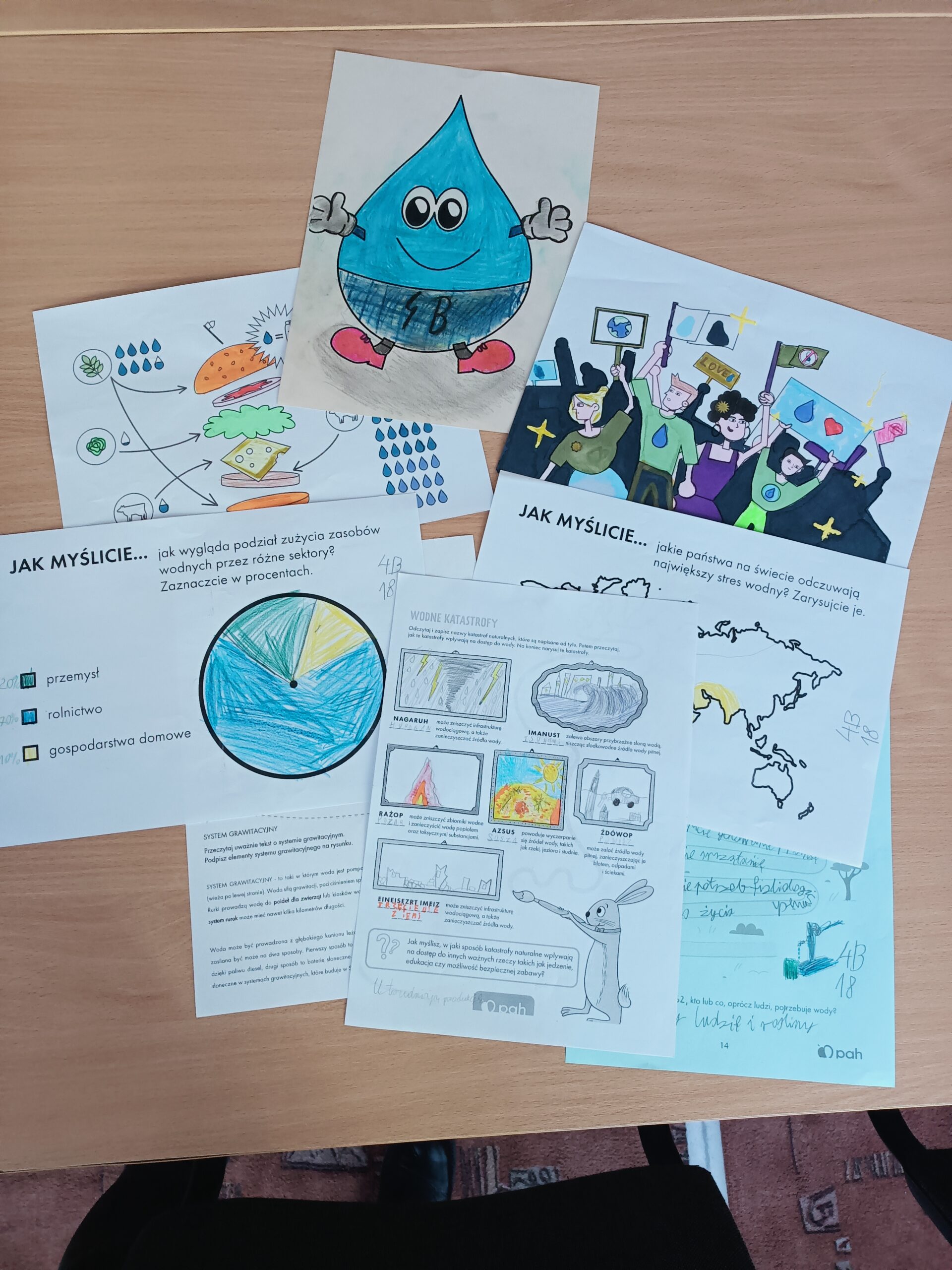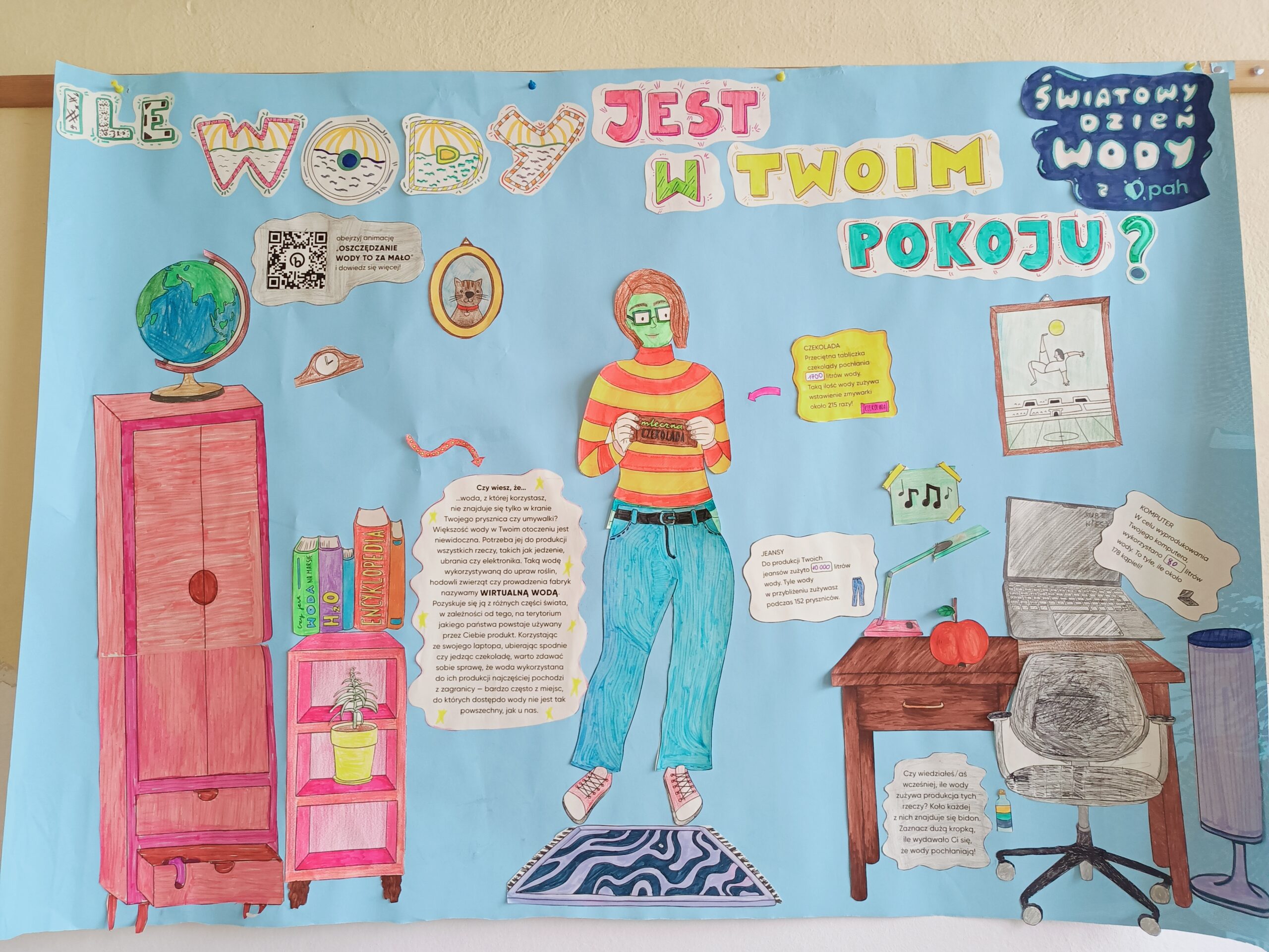 Na lekcjach edukacji ekologicznej, uczniowie klas 5 i 6 oprócz oglądania filmów edukacyjnych. Wspólnie przygotowywali plakaty, które dotyczyły różnych aspektów problemu braku dostępu do czystej wody. Plakaty poruszały pytania, takie jak: „Co dla ludzi oznacza brak dostępu do czystej wody?”, „Ile wody jest w Twoim pokoju?”. Oraz „Czy wiesz, ile wody jest w Twoim burgerze?”. Efektem końcowym było zawieszenie tych plakatów na korytarzach, gdzie stały się one świetnym punktem edukacyjnym dla całej społeczności szkolnej.