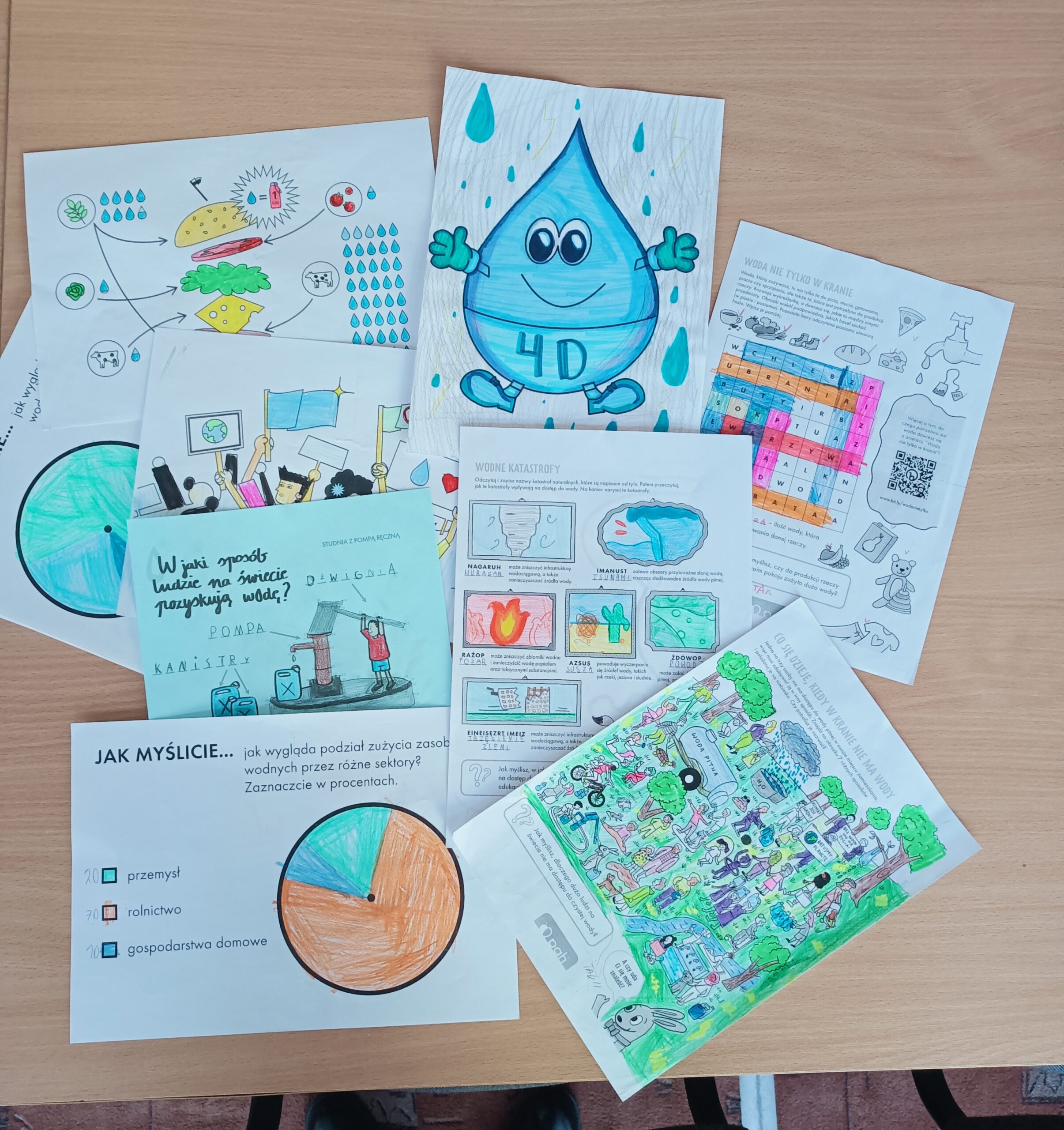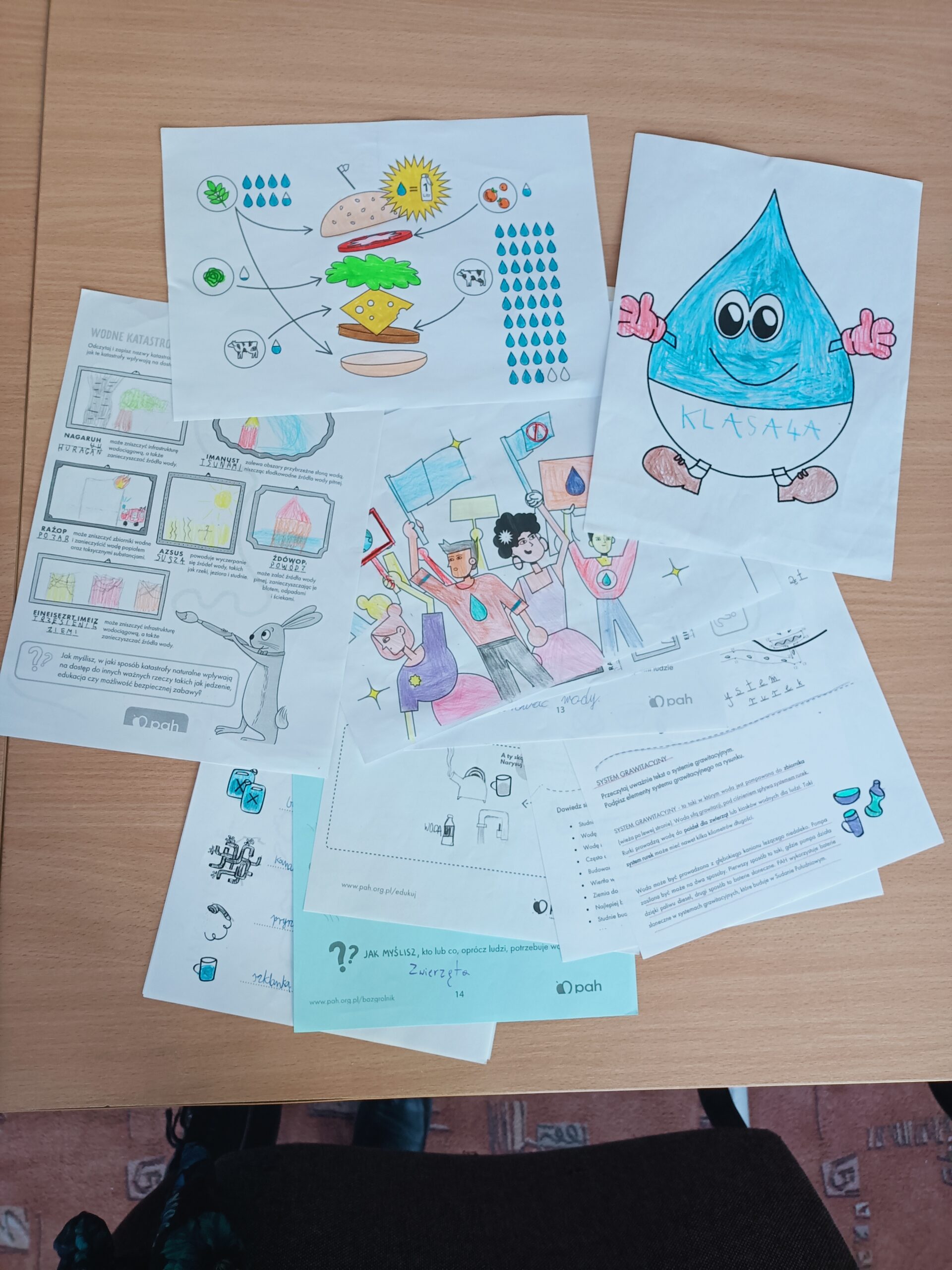 W klasach 4, podczas lekcji przyrody, uczniowie oglądali filmiki związane z wirtualną wodą. Omawiali zagrożenia wynikające z jej niewłaściwego użytkowania. Każdy uczeń stworzył książeczkę z kartami pracy, które przedstawiały najważniejsze zagrożenia związane z wodą. Zagrożenia takie jak jej zanieczyszczenie czy nadmierne zużycie. Tego typu działania miały na celu zwiększenie świadomości na temat wody jako zasobu, który należy chronić.