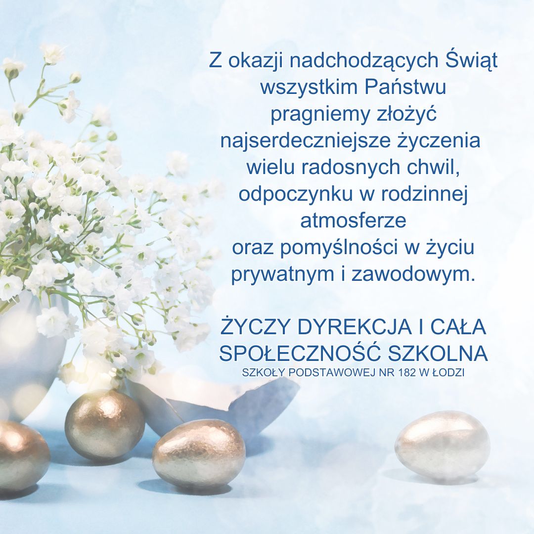 ŻYCZY DYREKCJA I CAŁA SPOŁECZNOŚĆ SZKOLNA SZKOŁY PODSTAWOWEJ NR 182 W ŁODZI