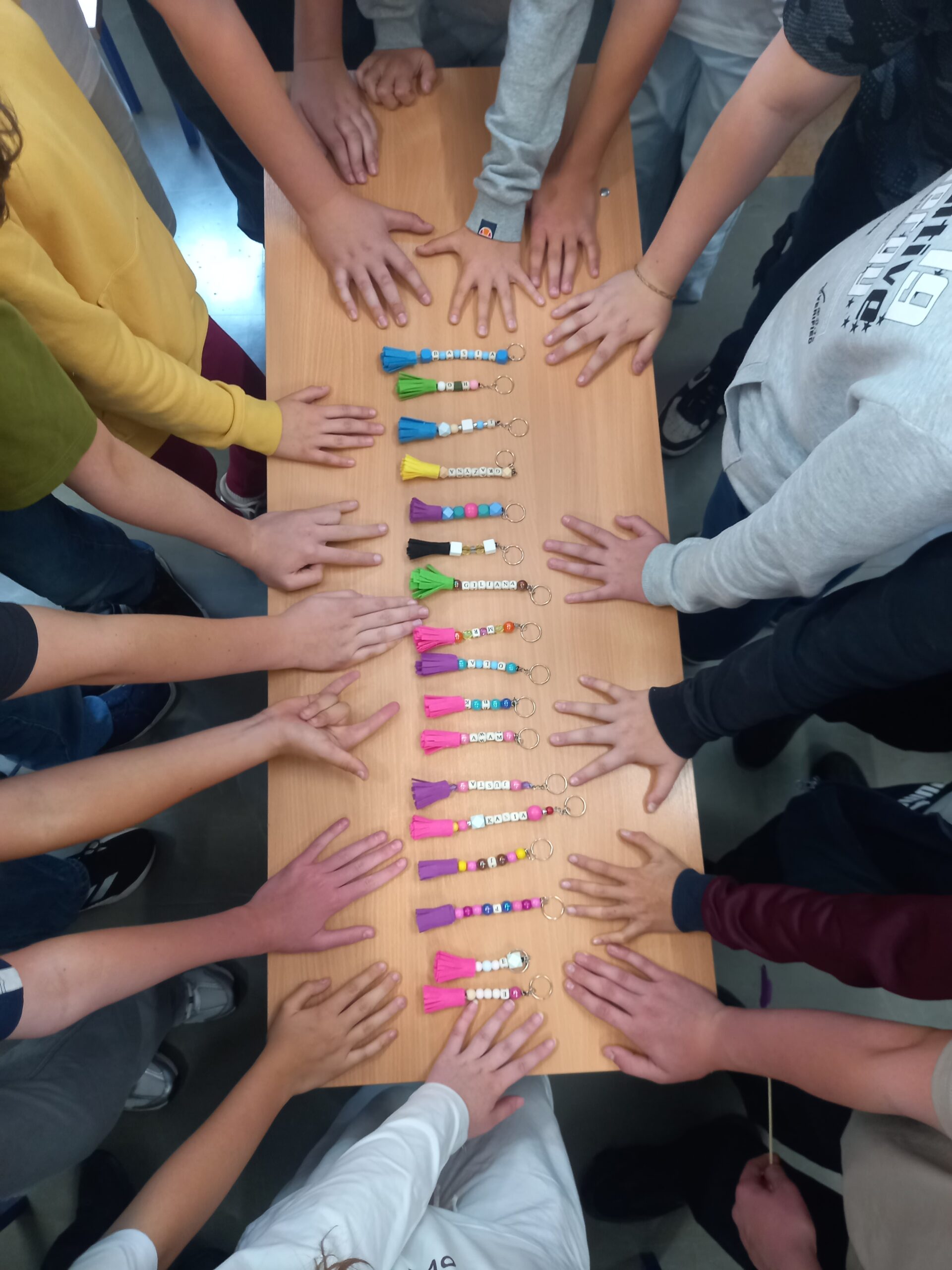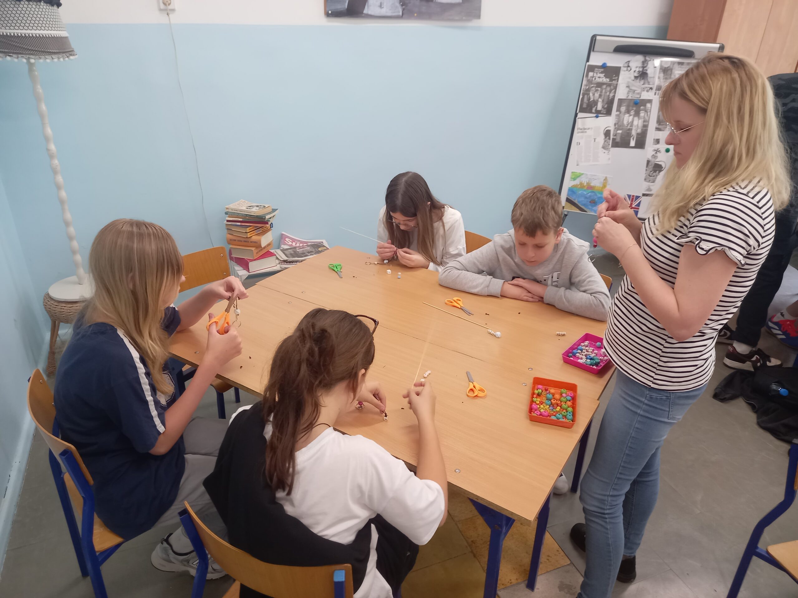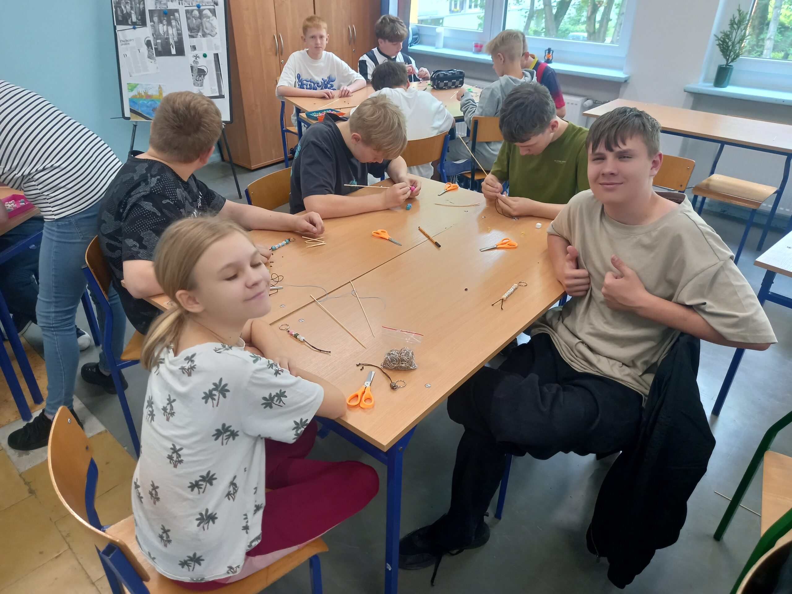 Kochanym Mamom uczniowie klasy 6d w czwartek 23 maja na warsztatach zorganizowanych przez Ogród Jordanowski wykonywali imienne breloki – upominki.