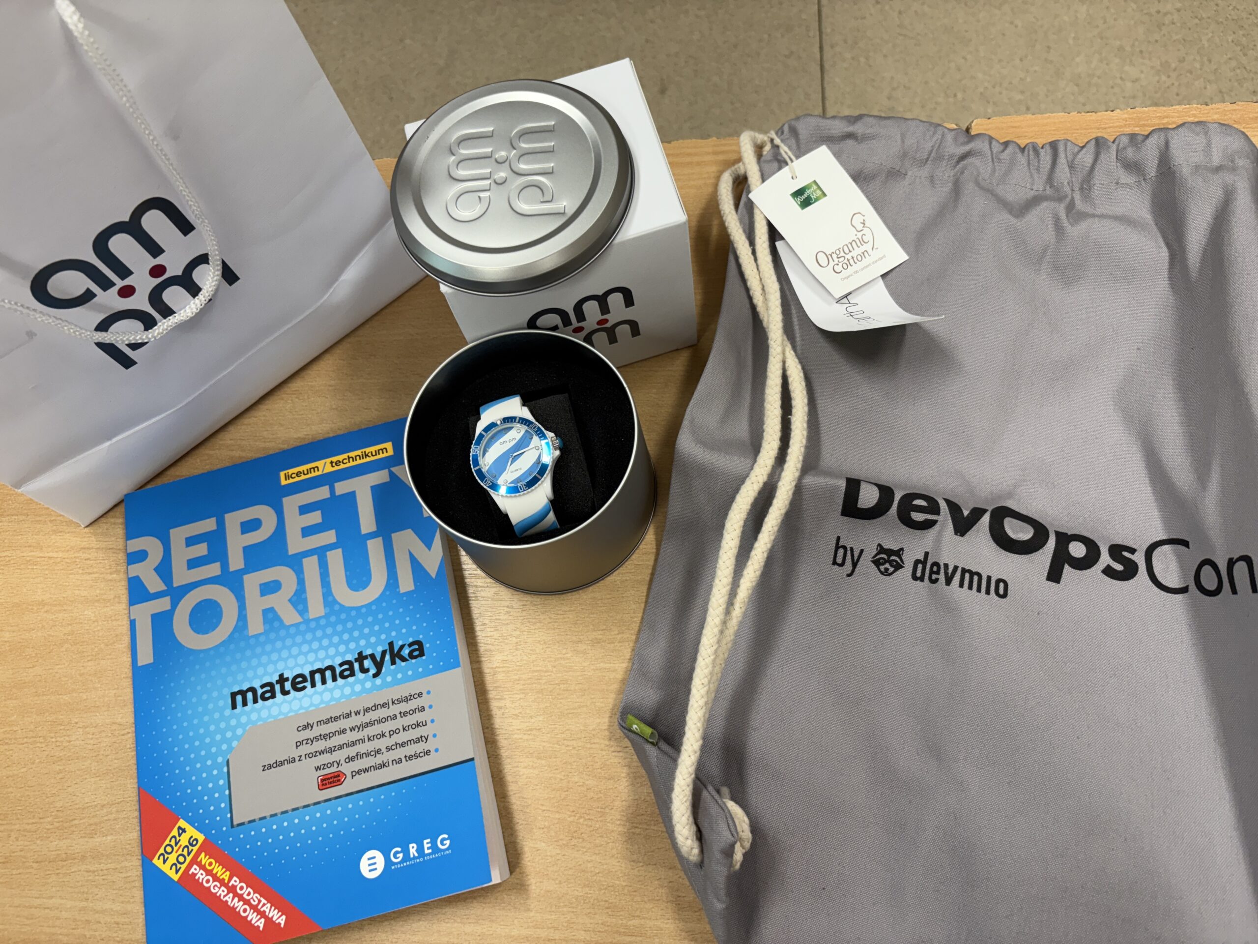 Zwycięzca otrzymał zegarek firmy Apart, matematyczne repetytorium i elegancki materiałowy plecak.