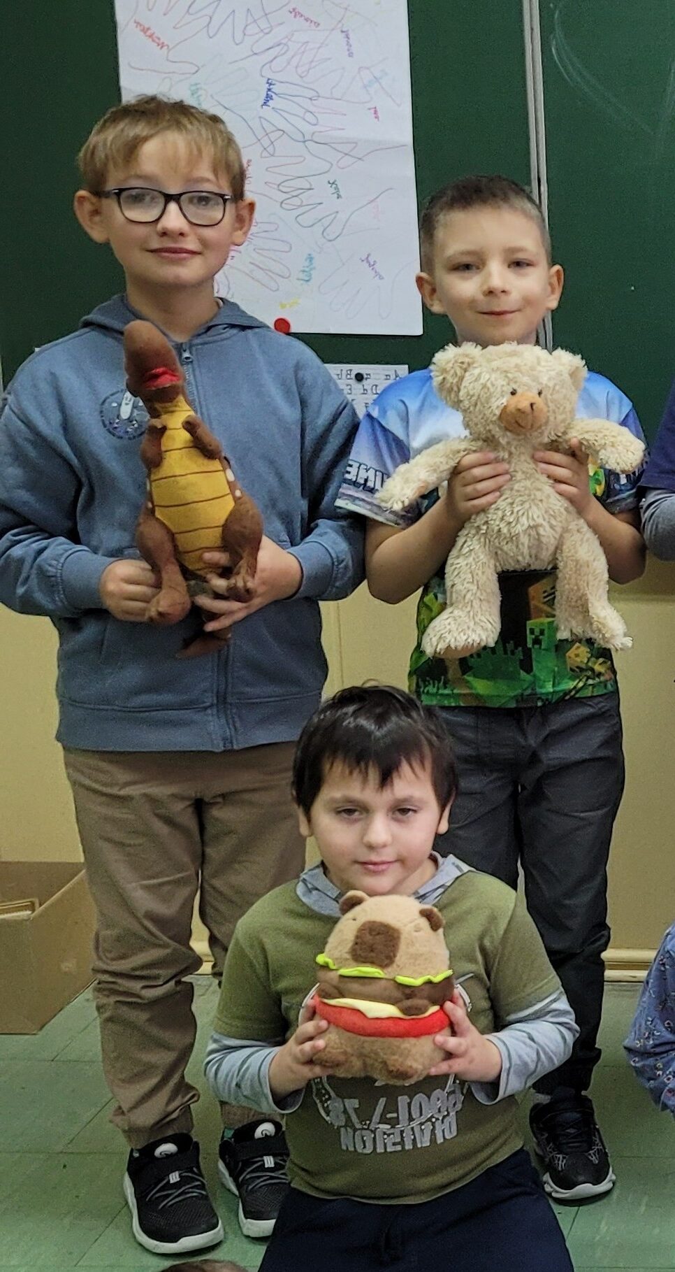 Na szkolnych korytarzach i w salach lekcyjnych pojawiły się ulubione maskotki naszych uczniów – małe i duże, nowe i bardzo wiekowe. Niektóre pluszaki towarzyszą dzieciom od najmłodszych lat, inne zostały niedawno przygarnięte, lecz już zajęły szczególne miejsce w ich sercach.