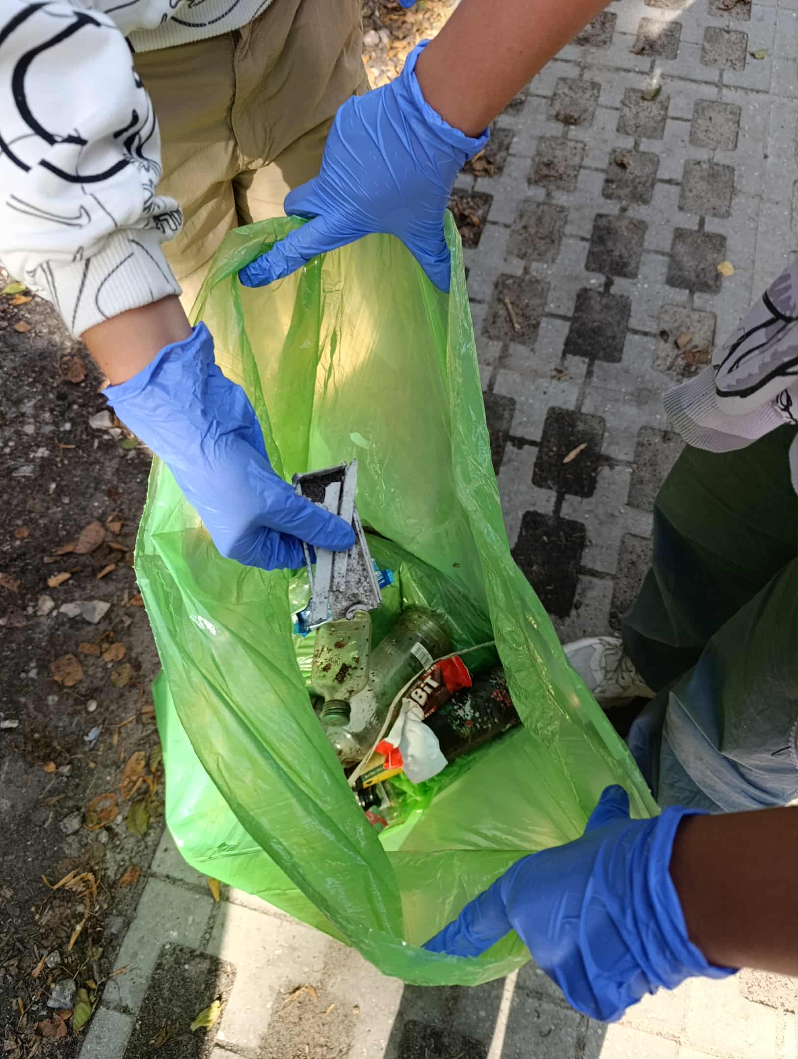 Uczennice z klasy 4d, działające w szkolnym Kole Ekologicznym, postanowiły wziąć sprawy w swoje ręce i zadbać o czystość terenu wokół budynku B. Zajęły się niełatwym, ale bardzo ważnym tematem – problemem śmieci gromadzących się wzdłuż ogrodzenia szkoły. Od dawna zalegały tam butelki, puszki, papierki, a nawet… psie odchody.