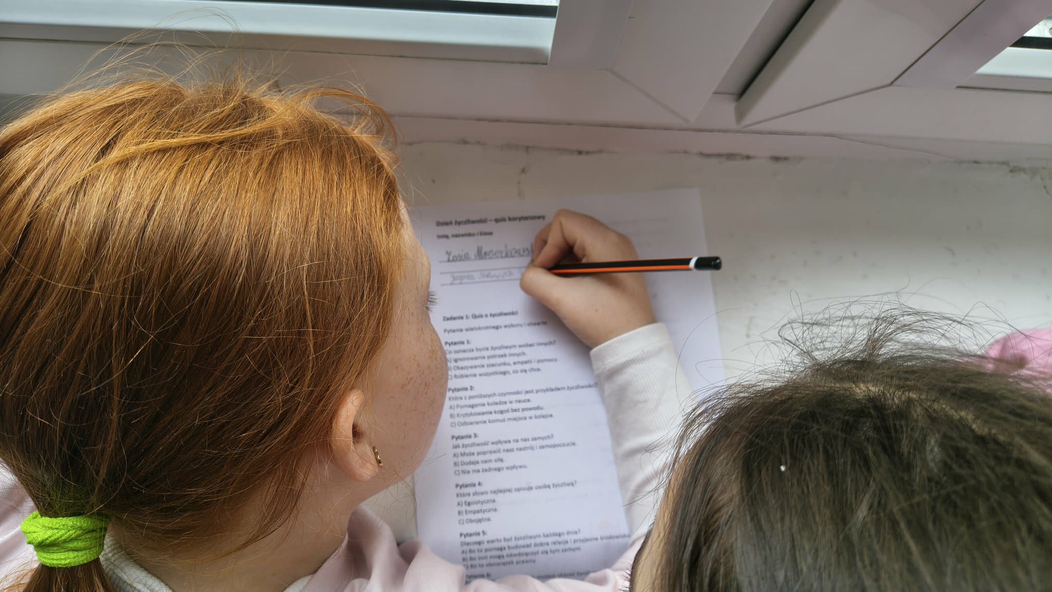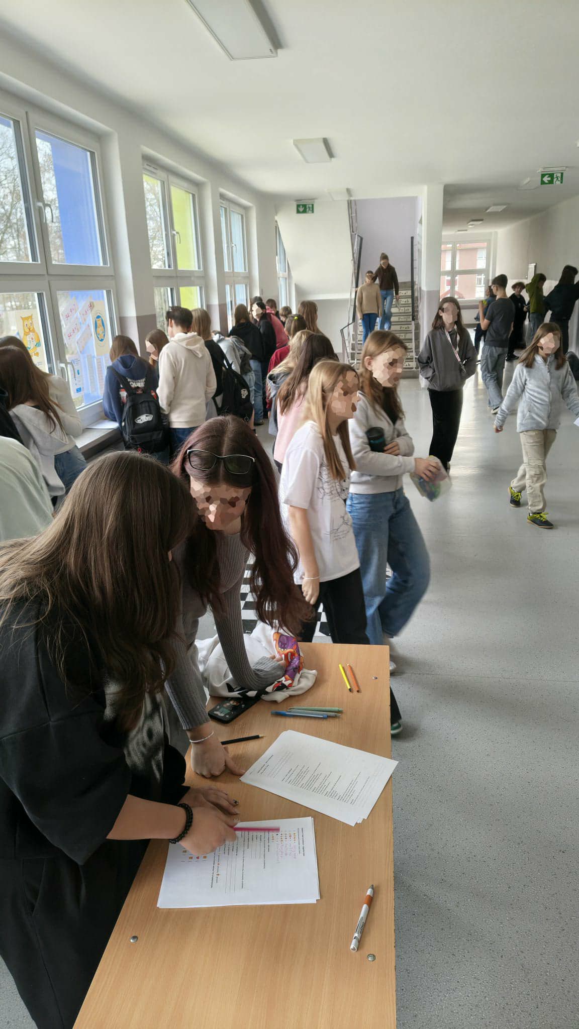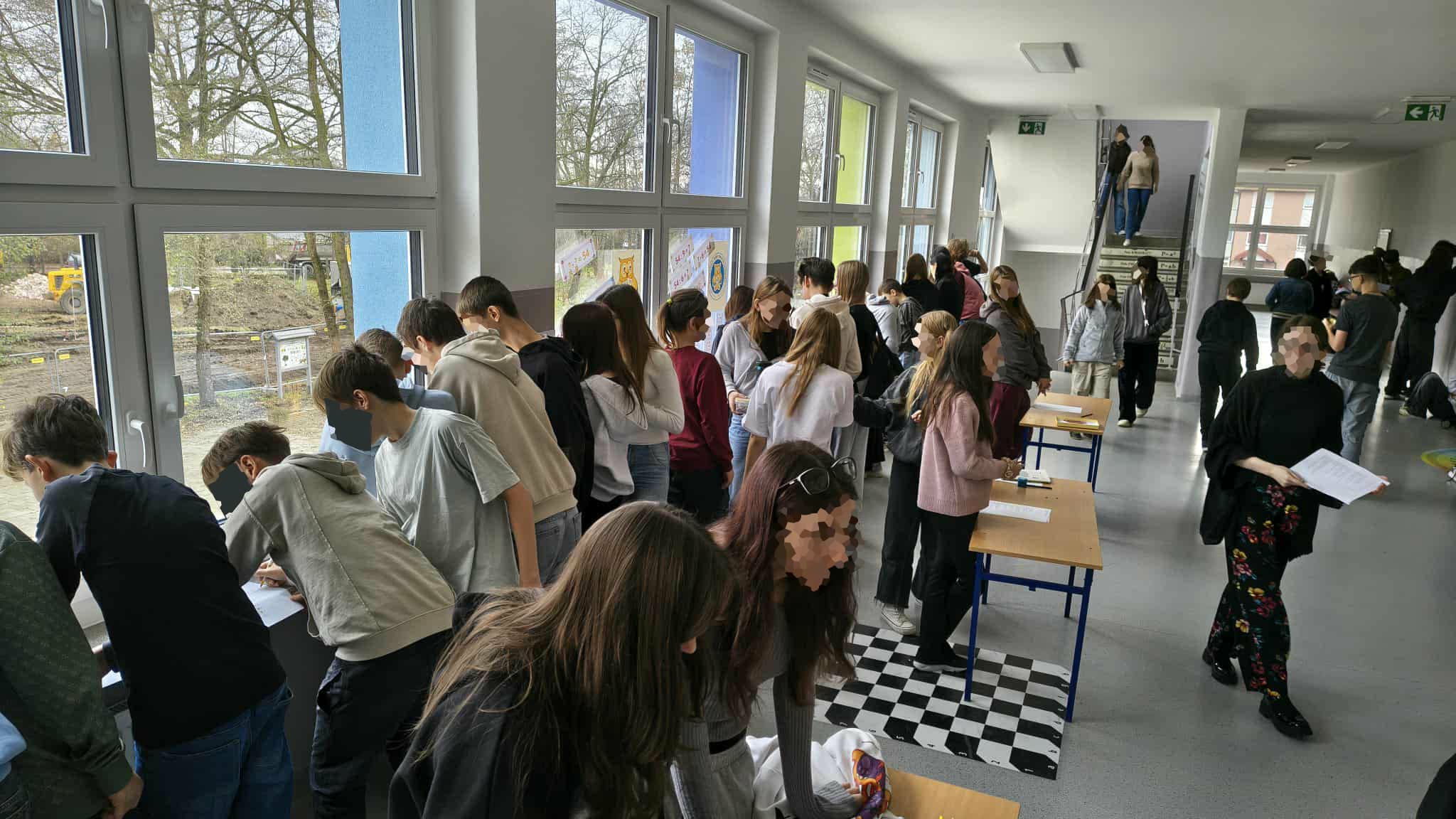 Uczniowie ruszyli do udziału w korytarzowym quizie o życzliwości, który okazał się wielka atrakcją. Dzieci podchodziły do niego tak tłumnie, że momentami można było pomylić szkolny korytarz z koncertem ulubionej gwiazdy.