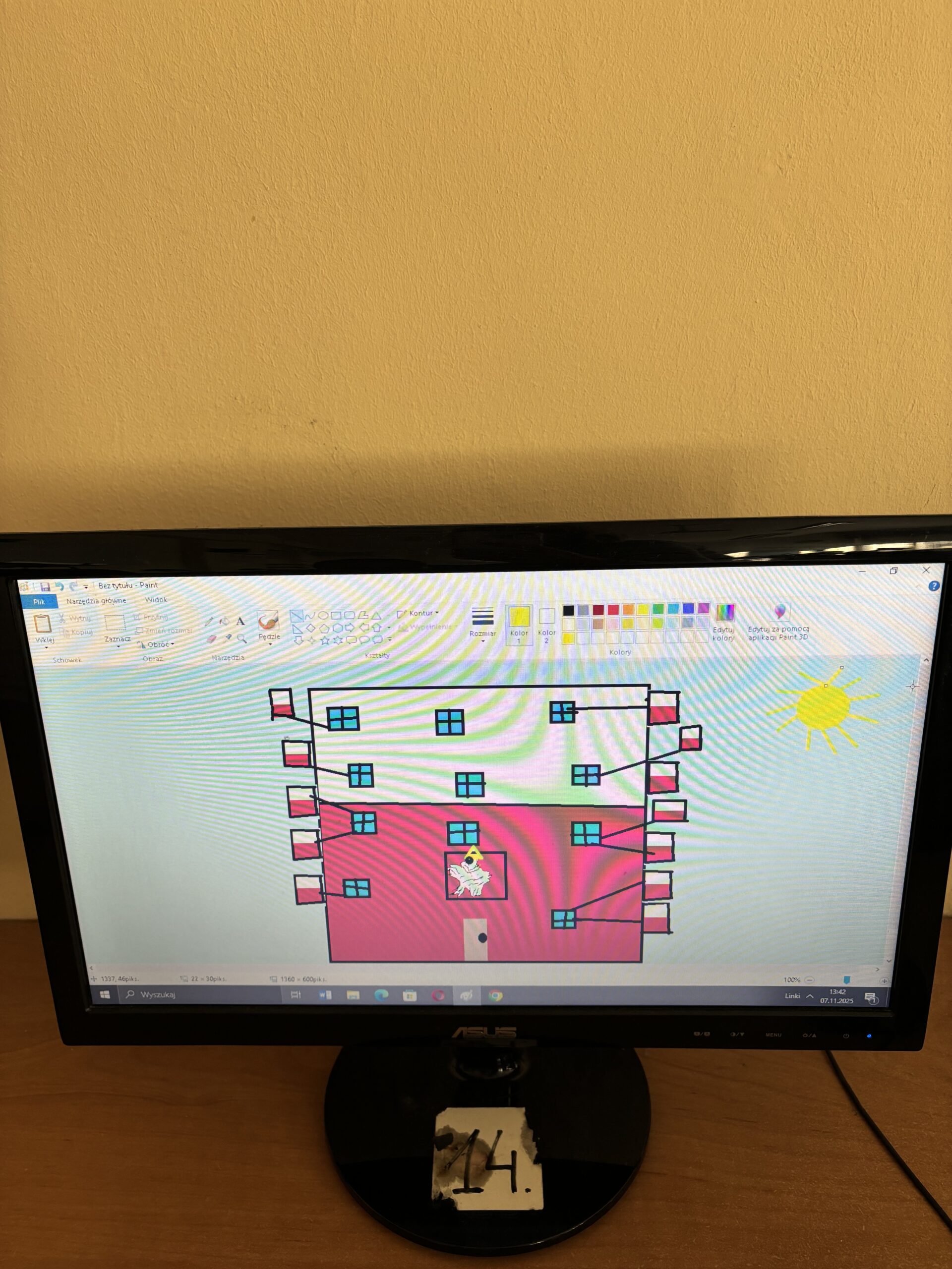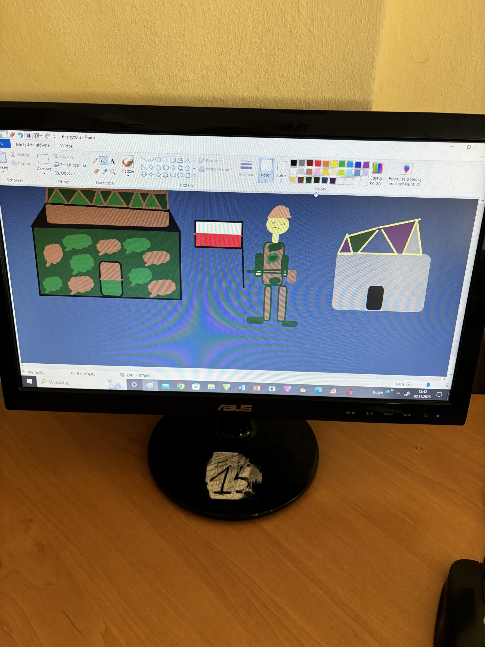 W części praktycznej uczniowie samodzielnie tworzyli własne rysunki. Wykorzystywali różne narzędzia programu, takie jak pędzel, wypełnienie kolorem, kształty geometryczne i narzędzie do pisania.