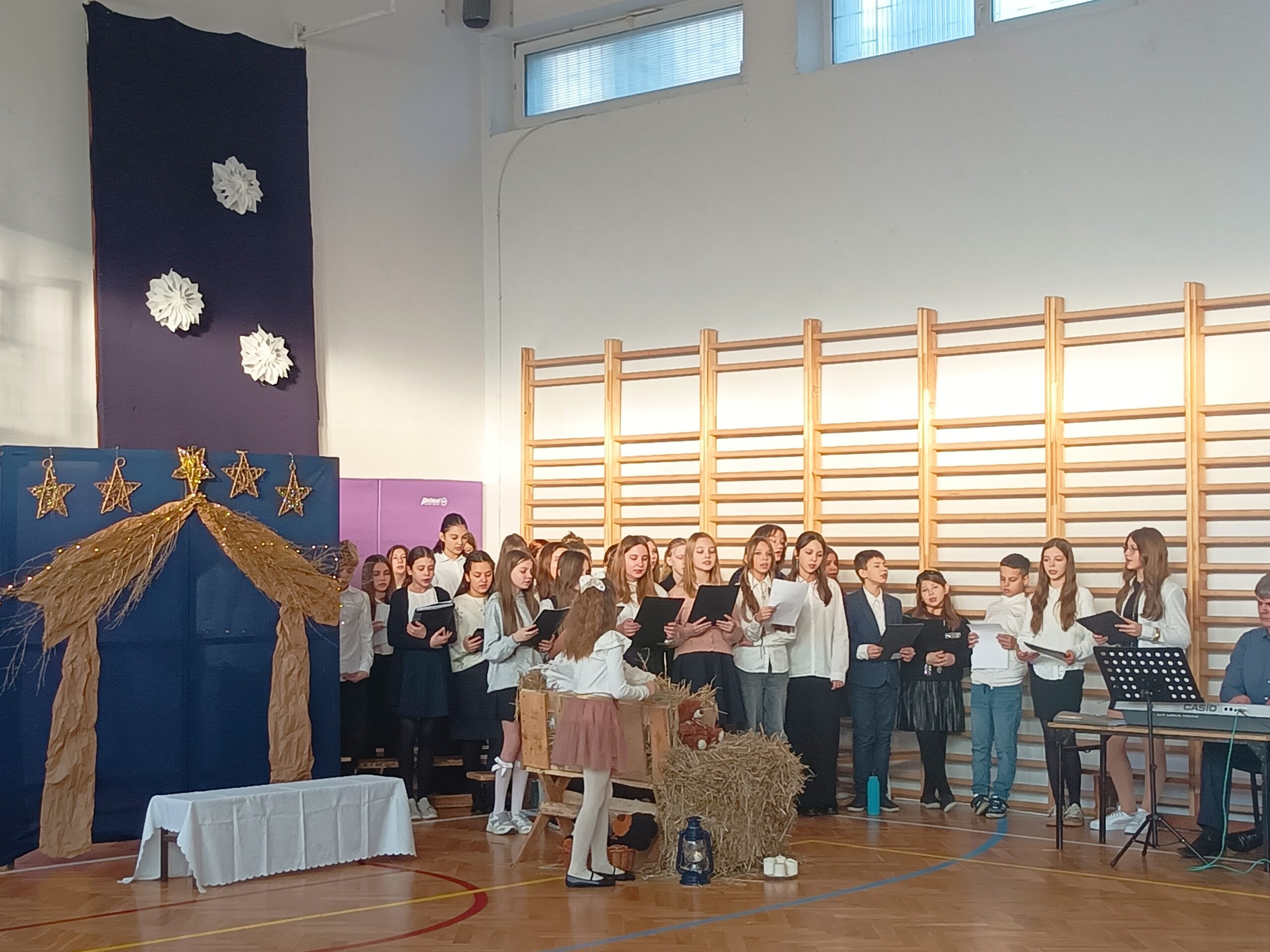 Już od pierwszych chwil widzowie przenieśli się w świat betlejemskiej nocy. Piękna sceneria zachwycała blaskiem, symboliką oraz niezwykłą dbałością o każdy szczegół. Śpiew szkolnego chóru niósł się po sali niczym echo radosnej nowiny.