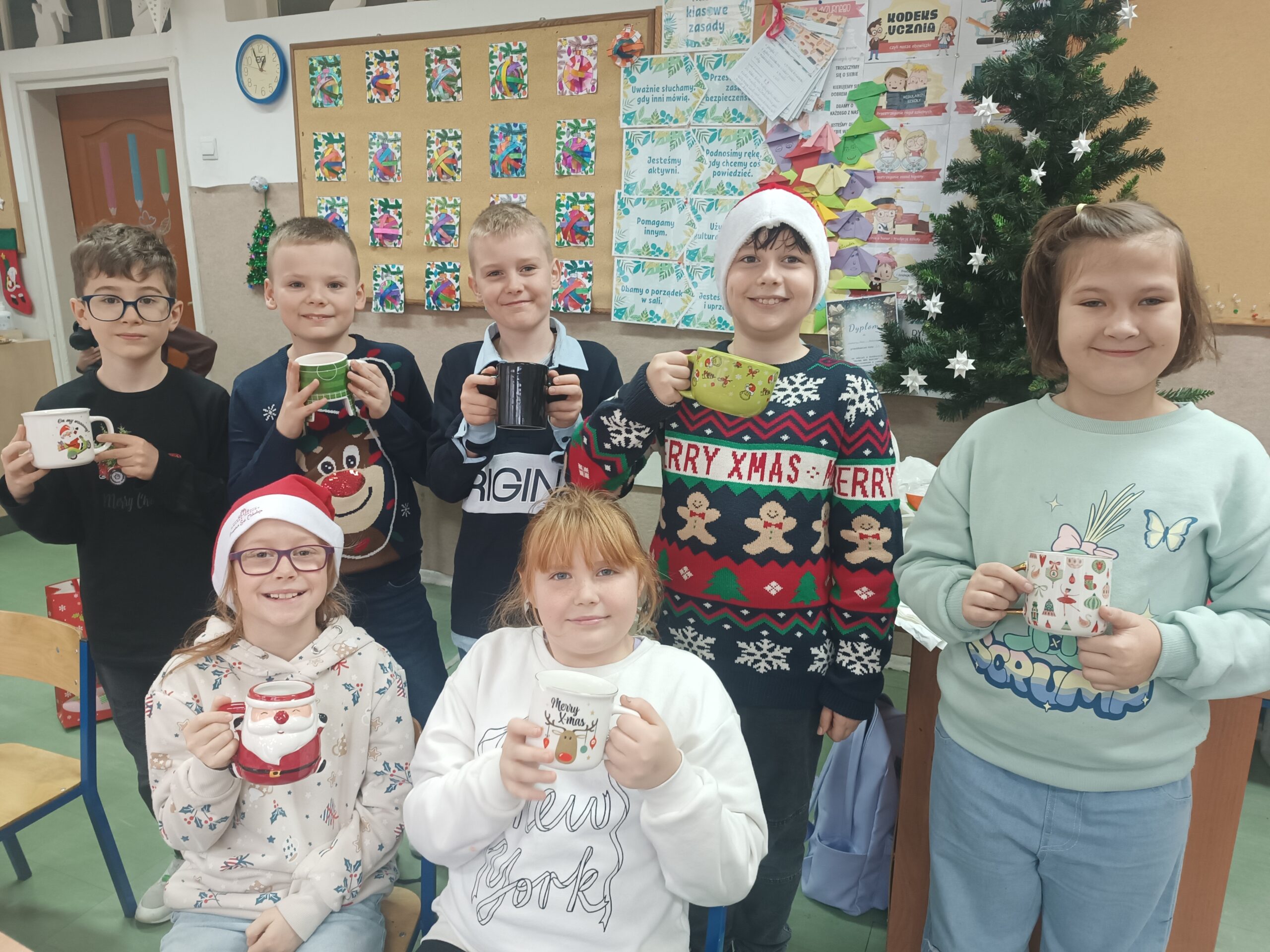 Po posiłku cała klasa chętnie włączyła się we wspólne śpiewanie świątecznych piosenek, co wprowadziło wszystkich w prawdziwie zimowy nastrój.