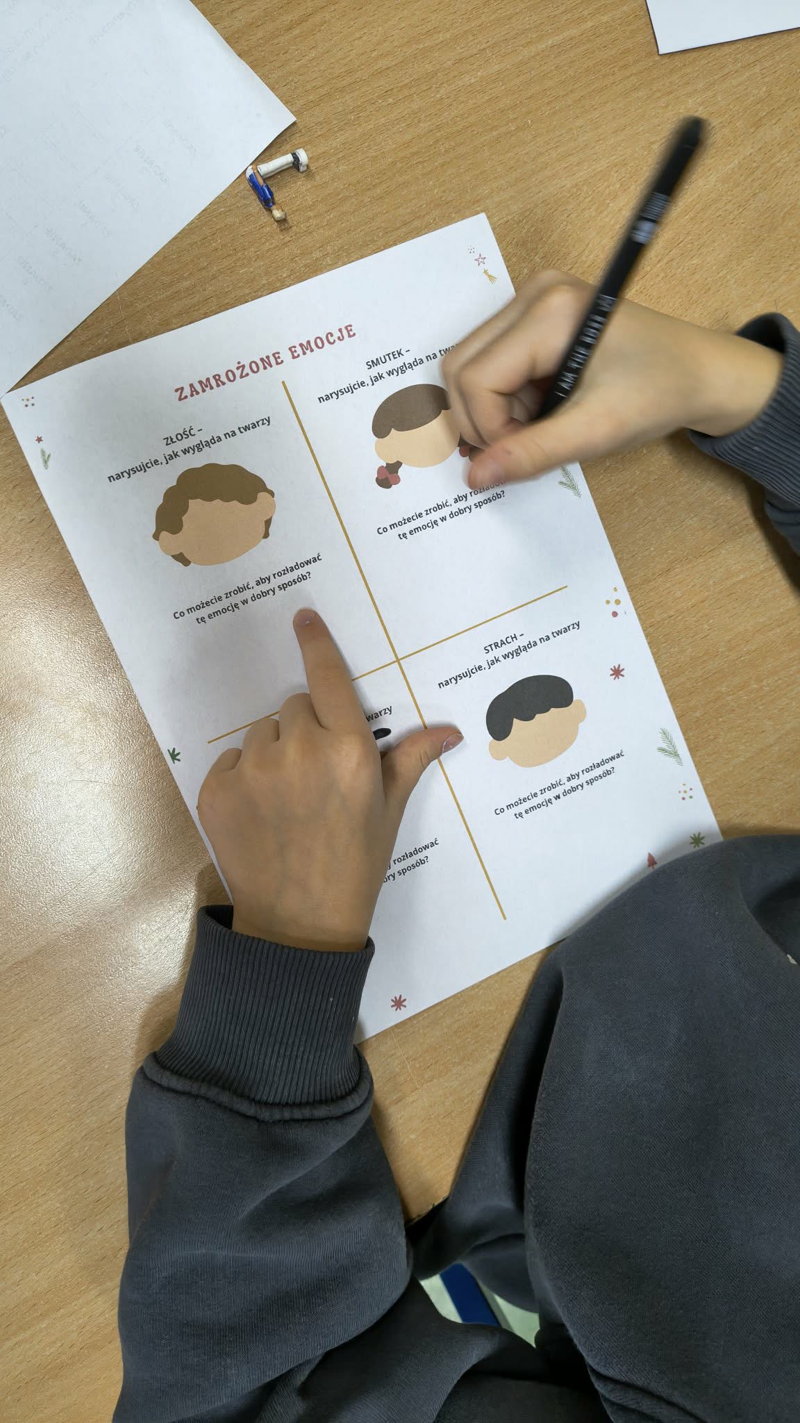 W klasie 3e panie pedagog przeprowadziły warsztat w formie edukacyjnego escape roomu pt. „Na ratunek świątecznym relacjom”. Zajęcia miały charakter fabularnej gry zagadkowej, której celem było wzmacnianie relacji w grupie oraz rozwijanie kompetencji emocjonalno-społecznych uczniów.