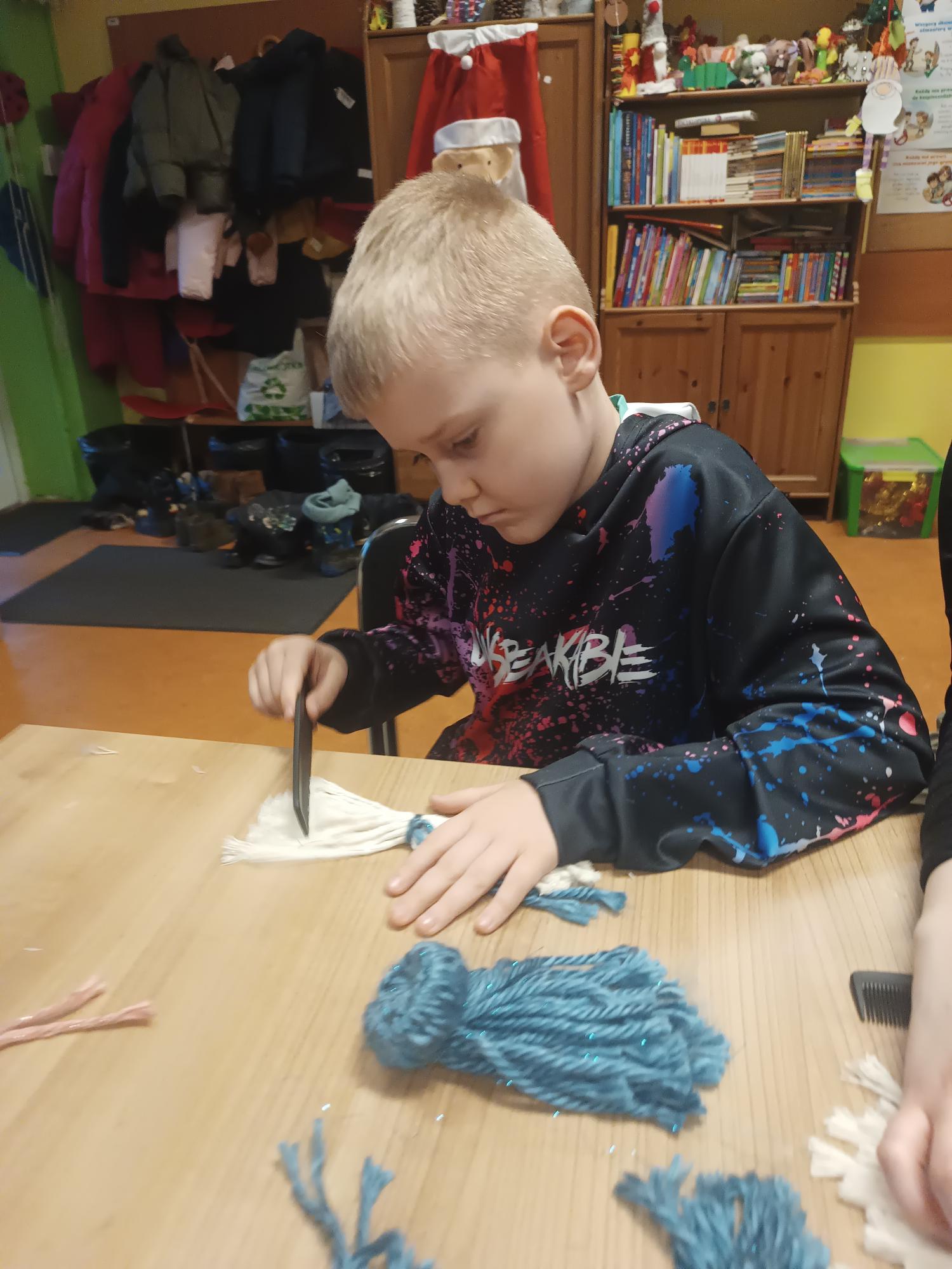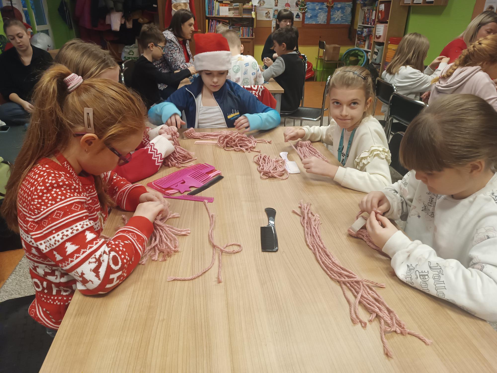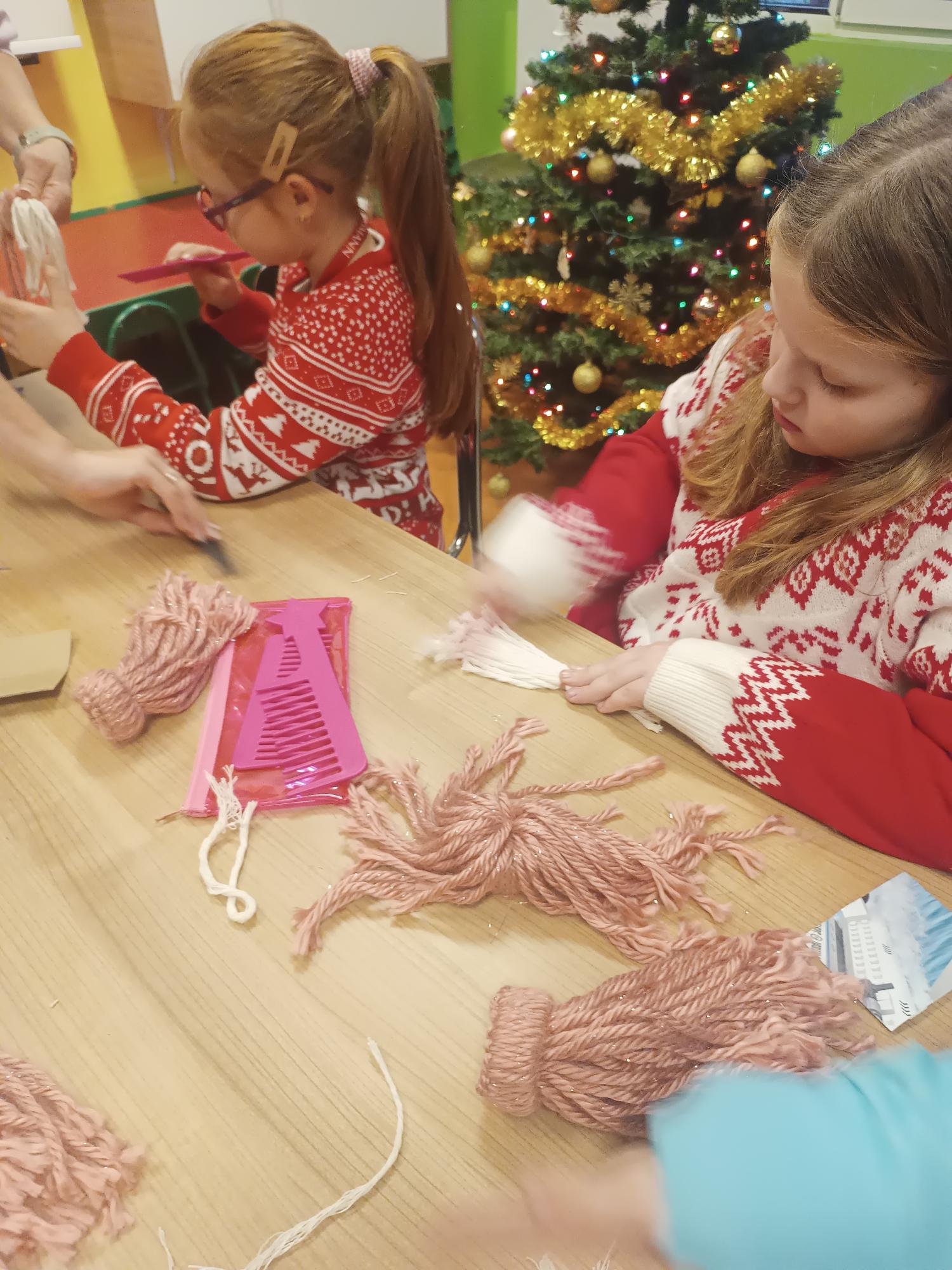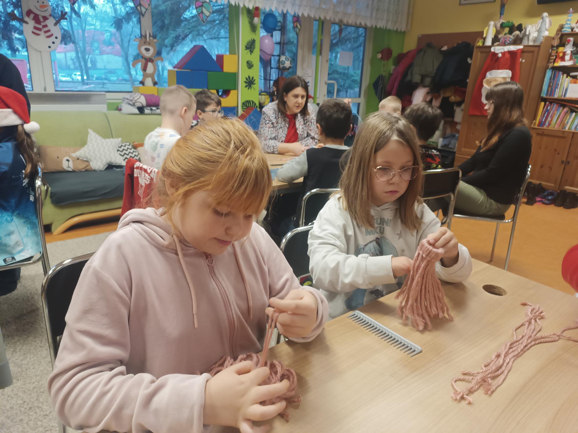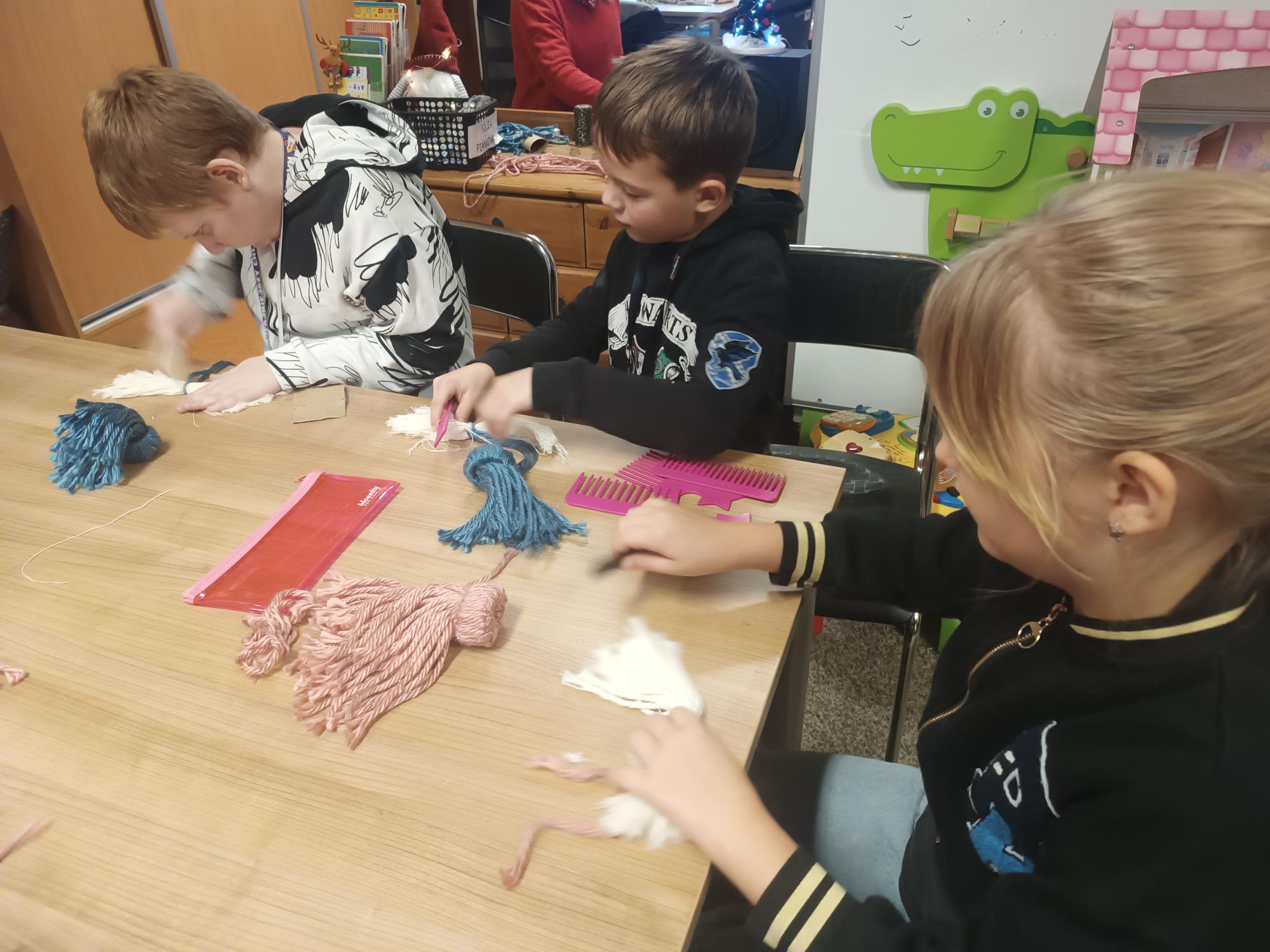 Klasa 3a na świątecznych warsztatach w Jordanku. 9 grudnia nasi uczniowie tworzyli urocze krasnale z włóczki podczas warsztatów technicznych.