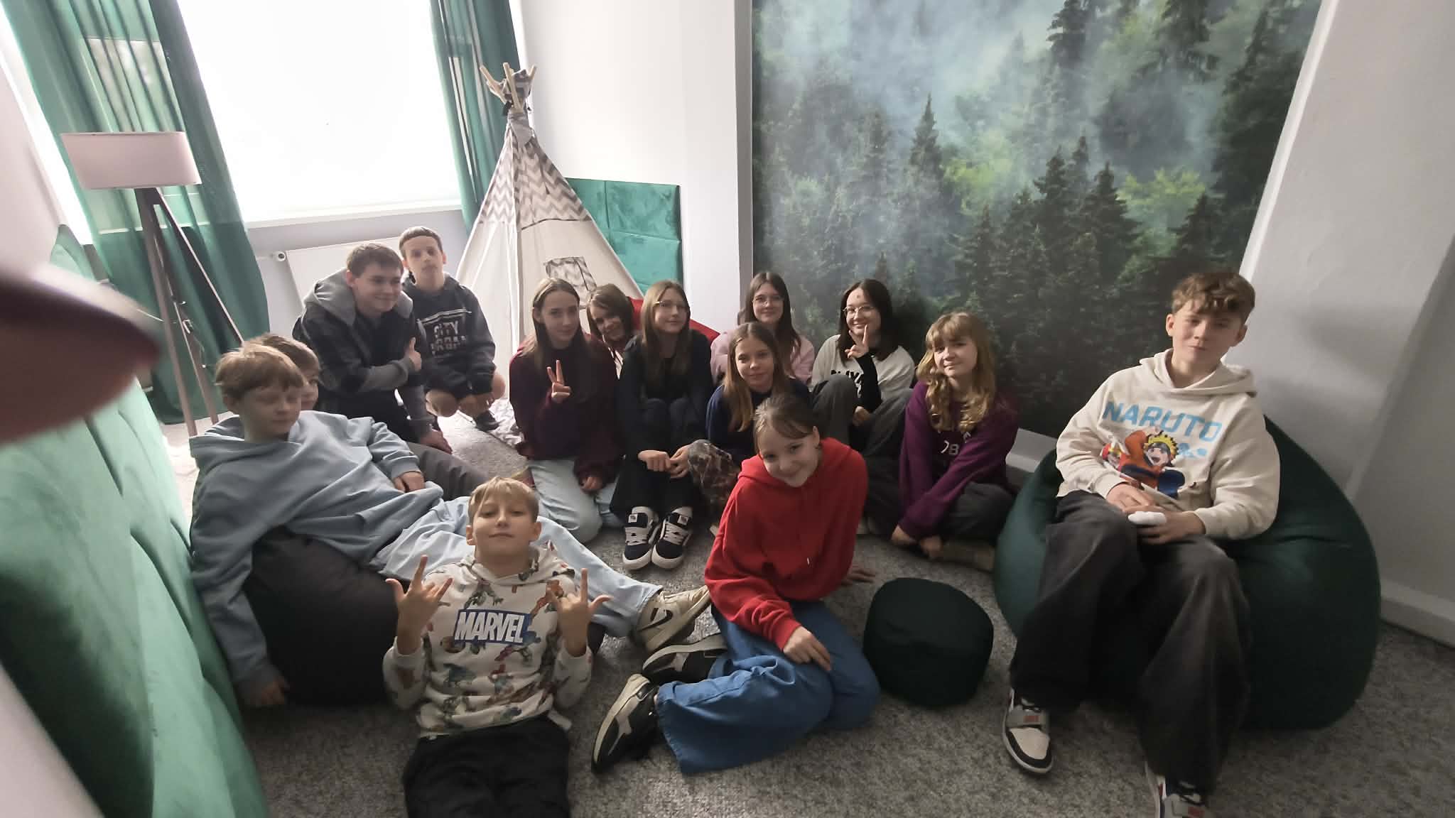 Pokój Wyciszeń to miejsce stworzone z myślą o uczniach. Sprzyja odpoczynkowi, wyciszeniu, regulacji emocji i odzyskaniu energii w ciągu dnia szkolnego. Każdy może tu na chwilę się zatrzymać, uporządkować myśli, zmniejszyć stres i zadbać o swoje samopoczucie. Wierzymy, że to miejsce stanie się ważnym punktem w szkole. Będzie przestrzenią, do której uczniowie chętnie będą wracać, aby znaleźć spokój i chwilę wytchnienia. 💙