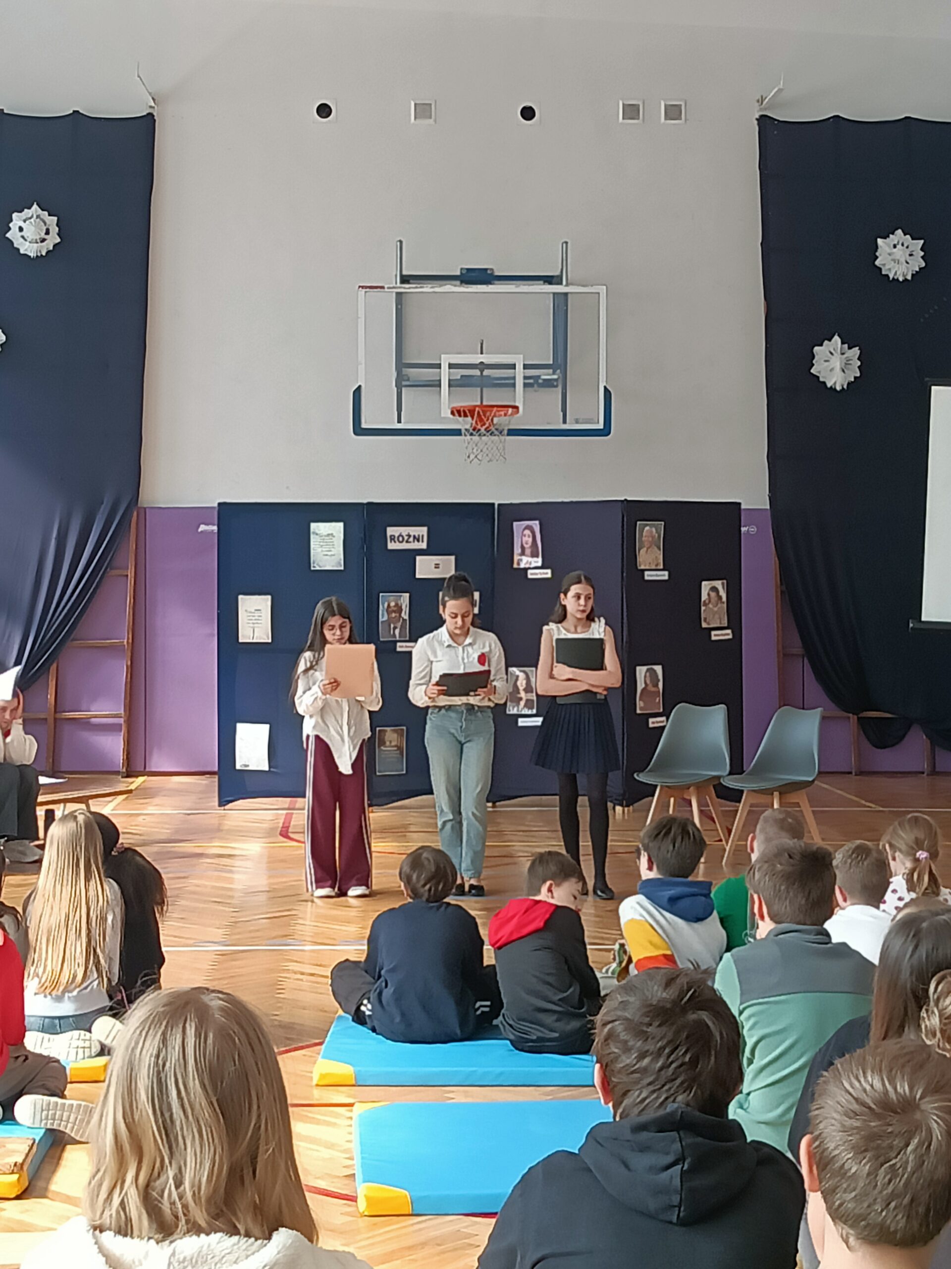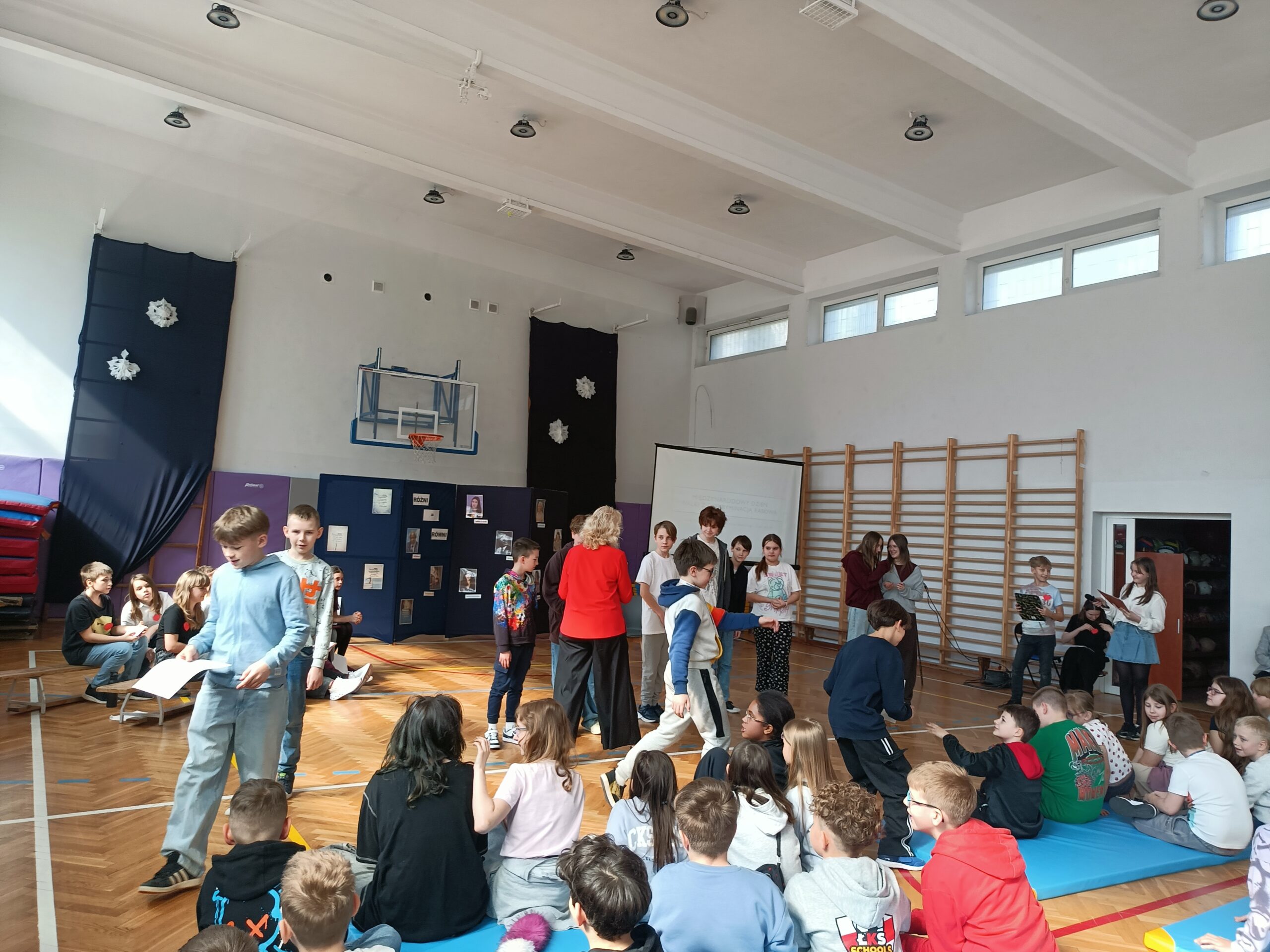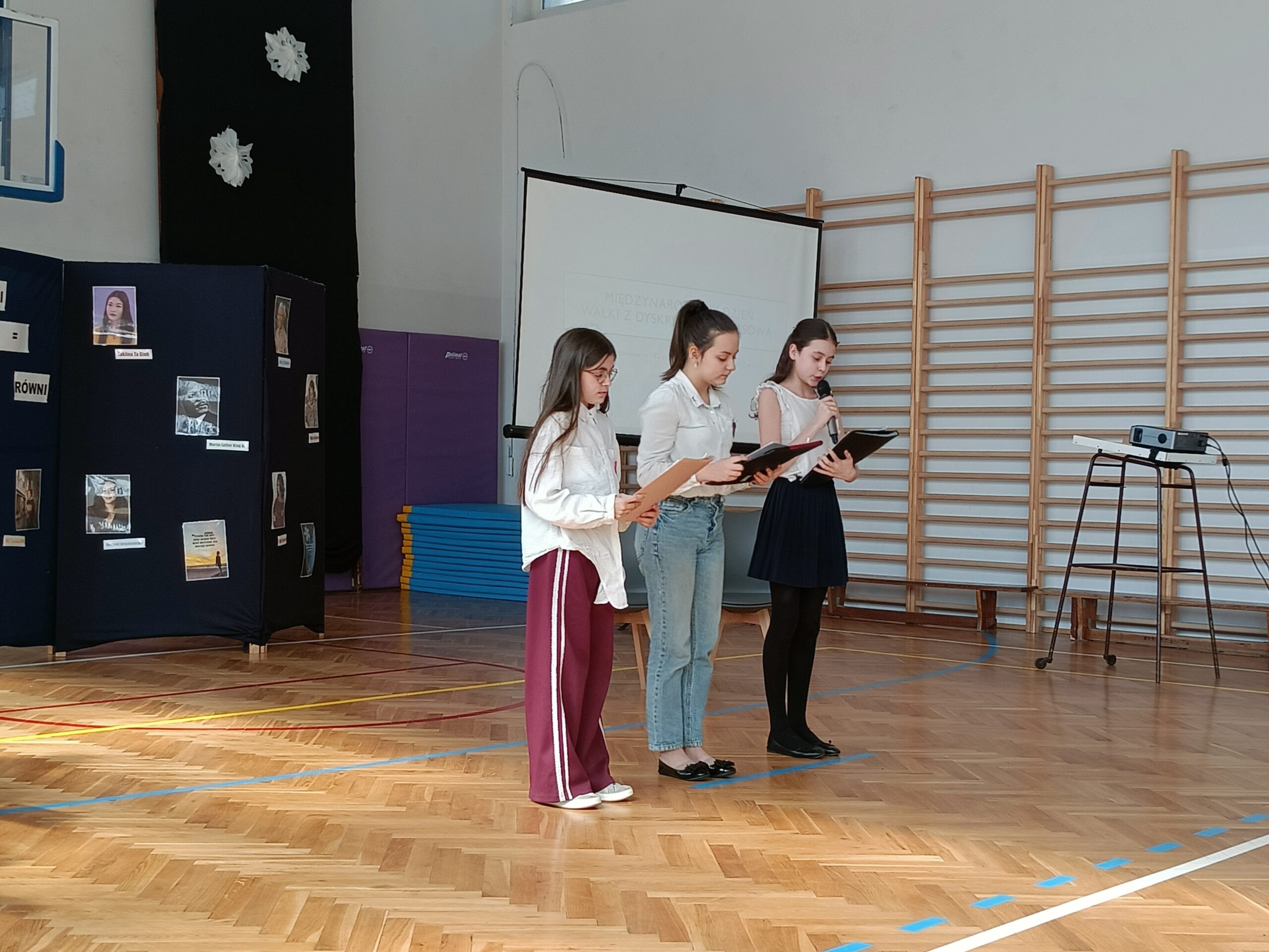 Uczniowie w ciekawy i angażujący sposób przybliżyli temat tolerancji oraz szacunku wobec drugiego człowieka. Krótka historia i scenka pokazały, jak wielką wartość mają nawet najprostsze gesty życzliwości. Całość uzupełniły poruszające cytaty znanych osób oraz interaktywny quiz, który zachęcił wszystkich do aktywnego udziału.