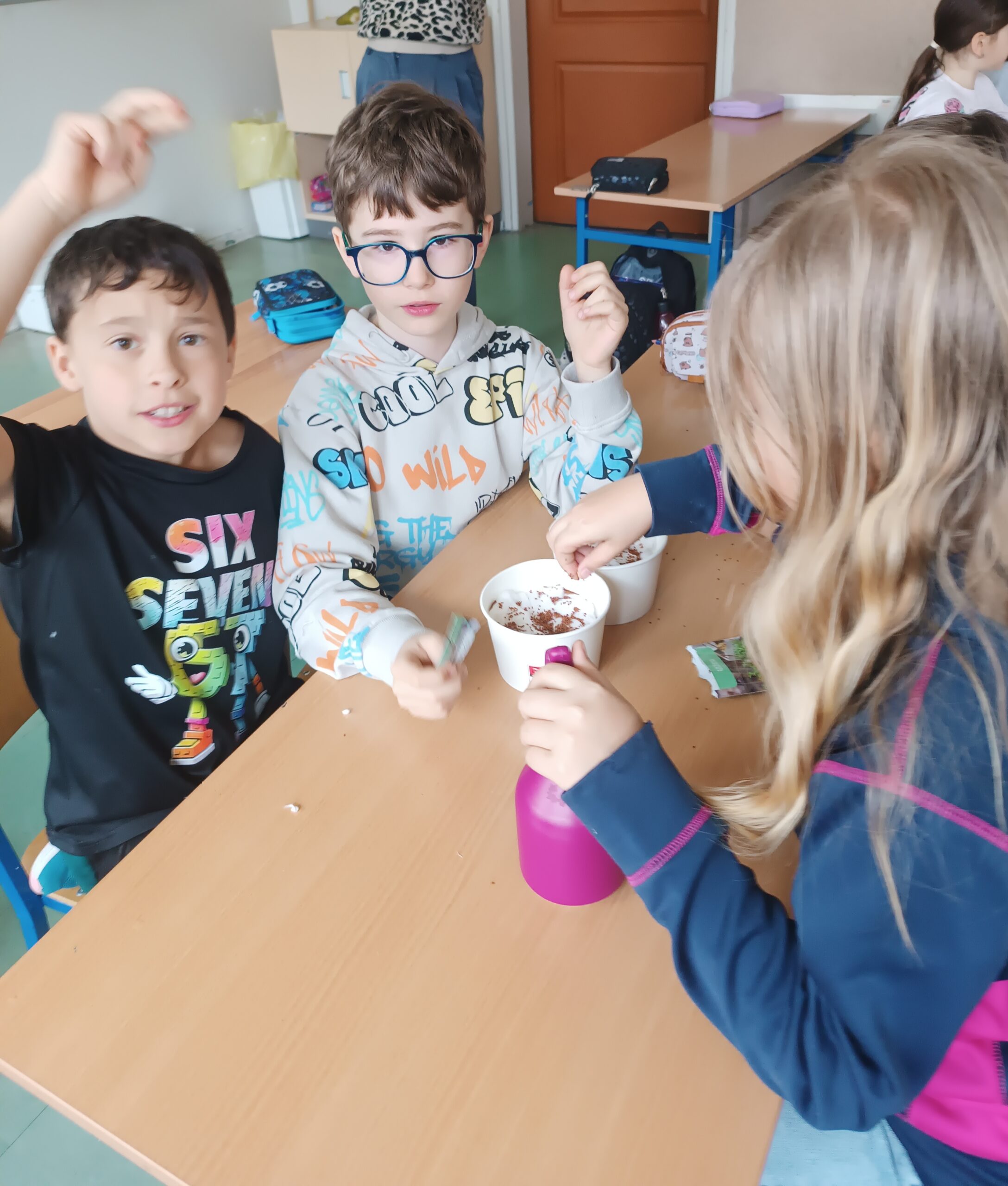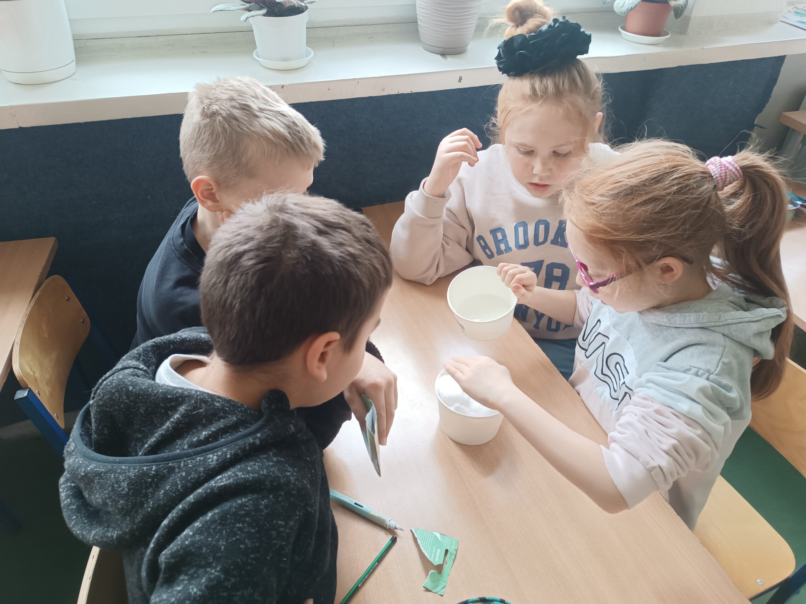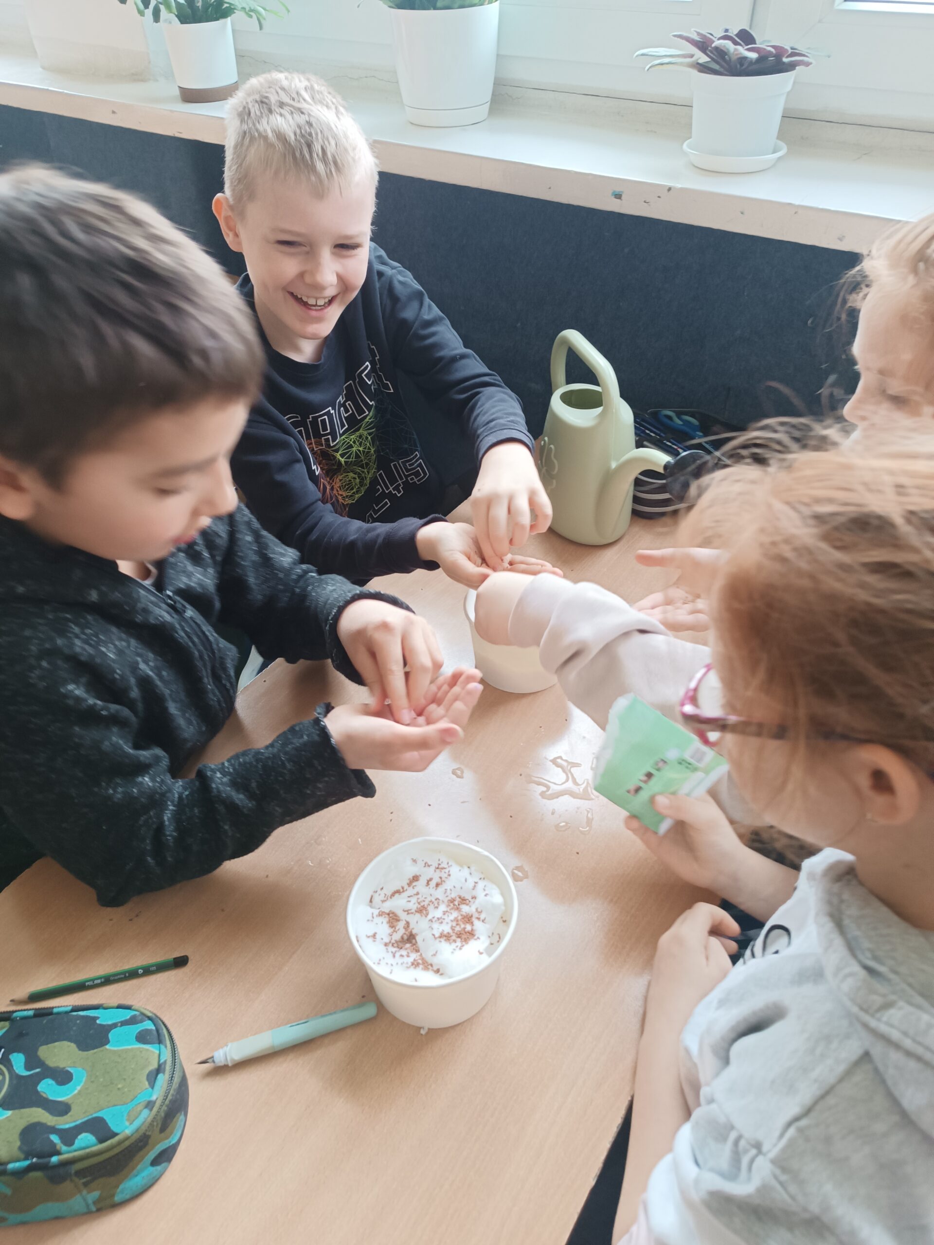 20 marca, w przededniu kalendarzowej wiosny, uczniowie klasy 3a wzięli udział w wiosennych warsztatach. W ramach edukacji przyrodniczej dzieci pracowały w 4-osobowych grupach, wysiewając rzeżuchę.