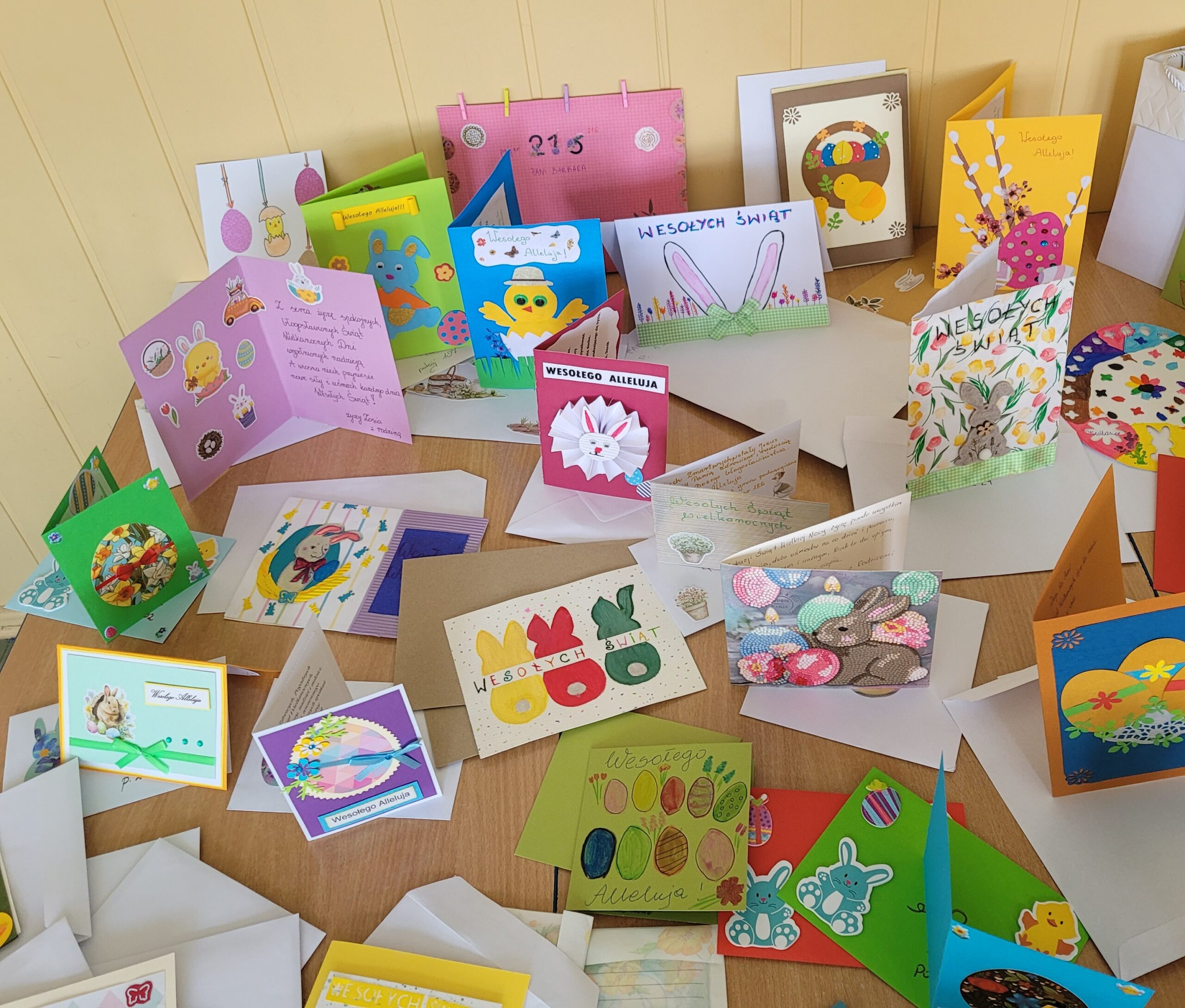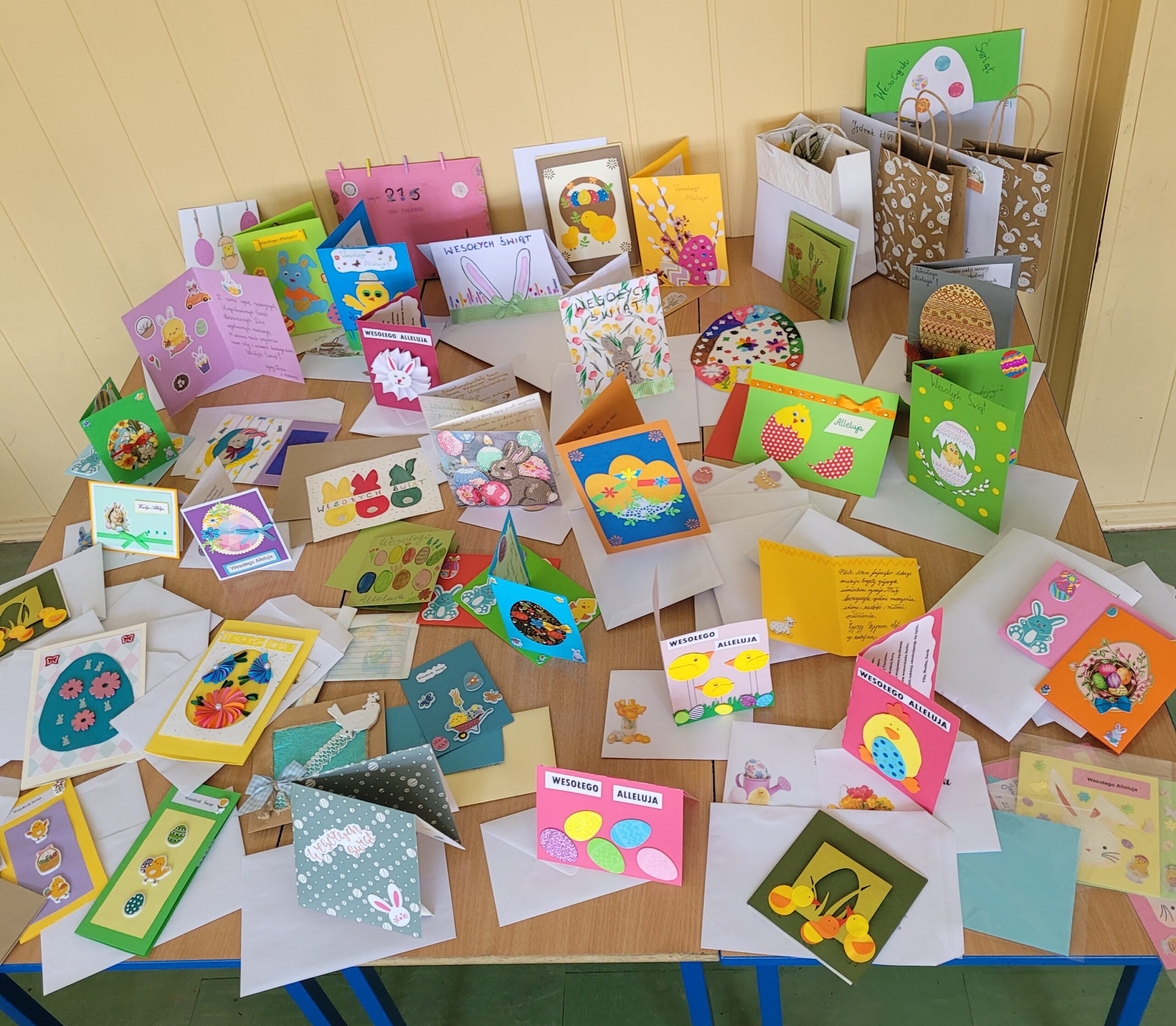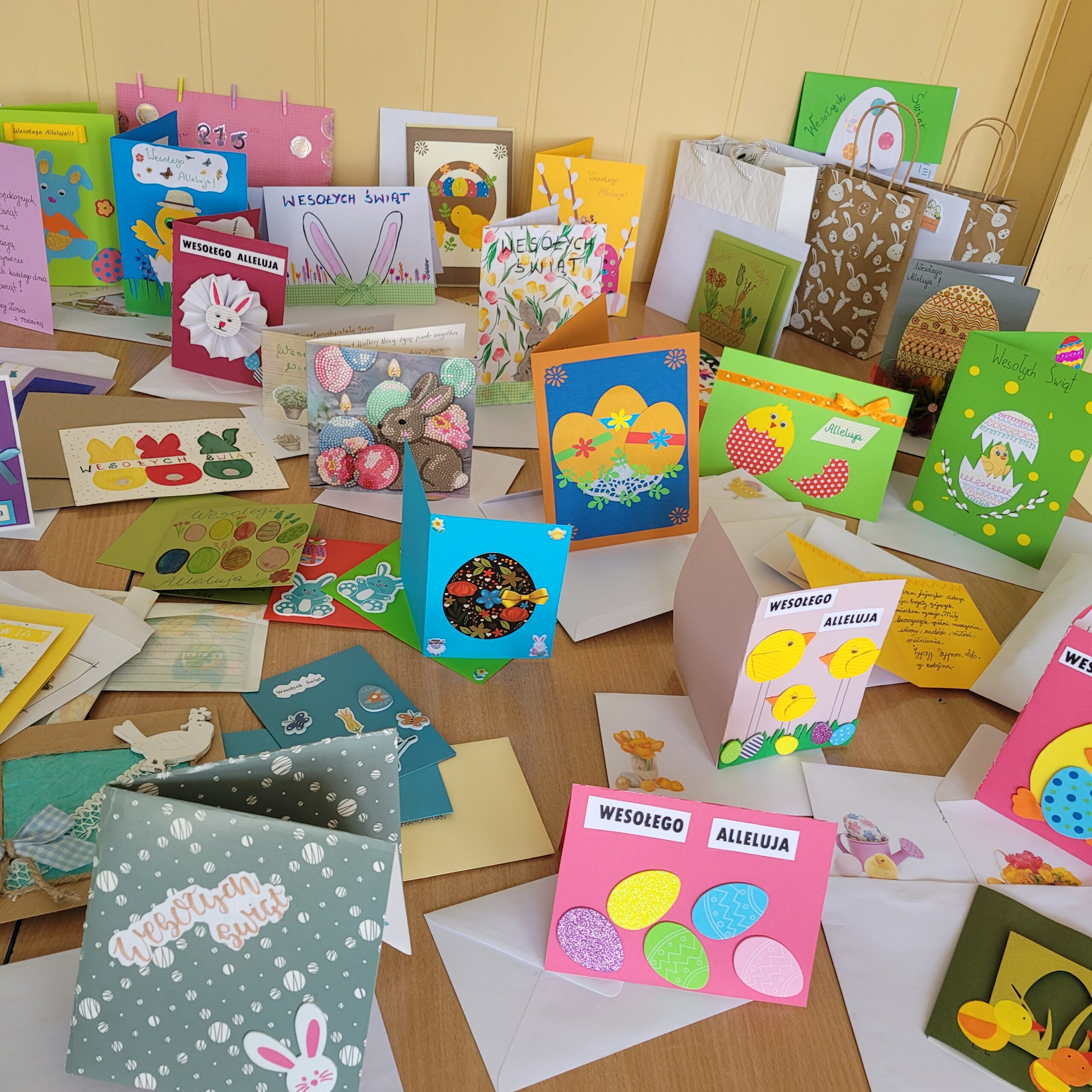 Szanowni Państwo, Pracownicy Szkoły, Rodzice, Drodzy Uczniowie, z przyjemnością podsumowujemy kolejną odsłonę akcji „Podaruj świąteczne życzenia” – Wielkanoc, tym razem związaną ze Świętami Wielkanocnymi. Dzięki Państwa zaangażowaniu ponownie udało się przygotować pełne wiosennego klimatu kartki, które trafiły do Mieszkańców Domu Pomocy Społecznej przy ul. Rojnej 15.